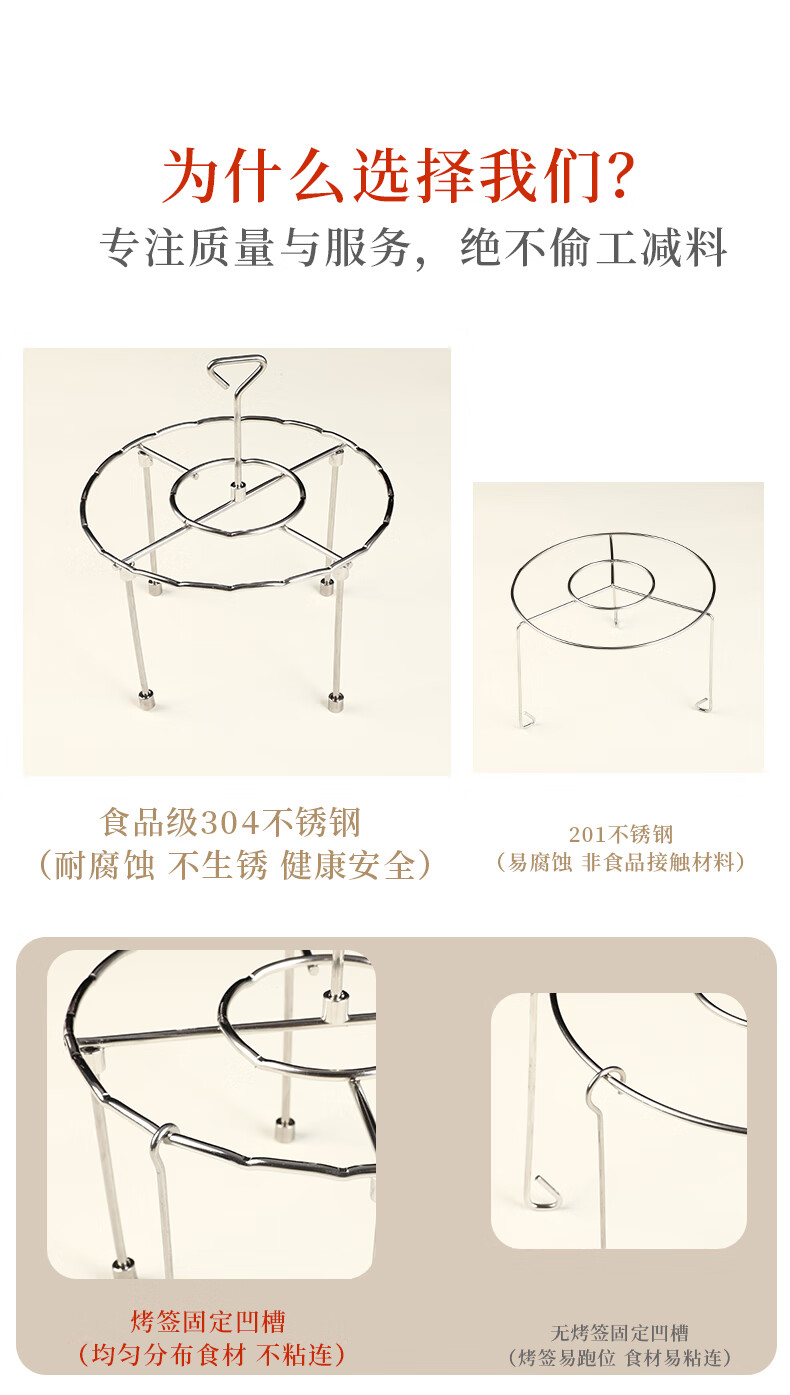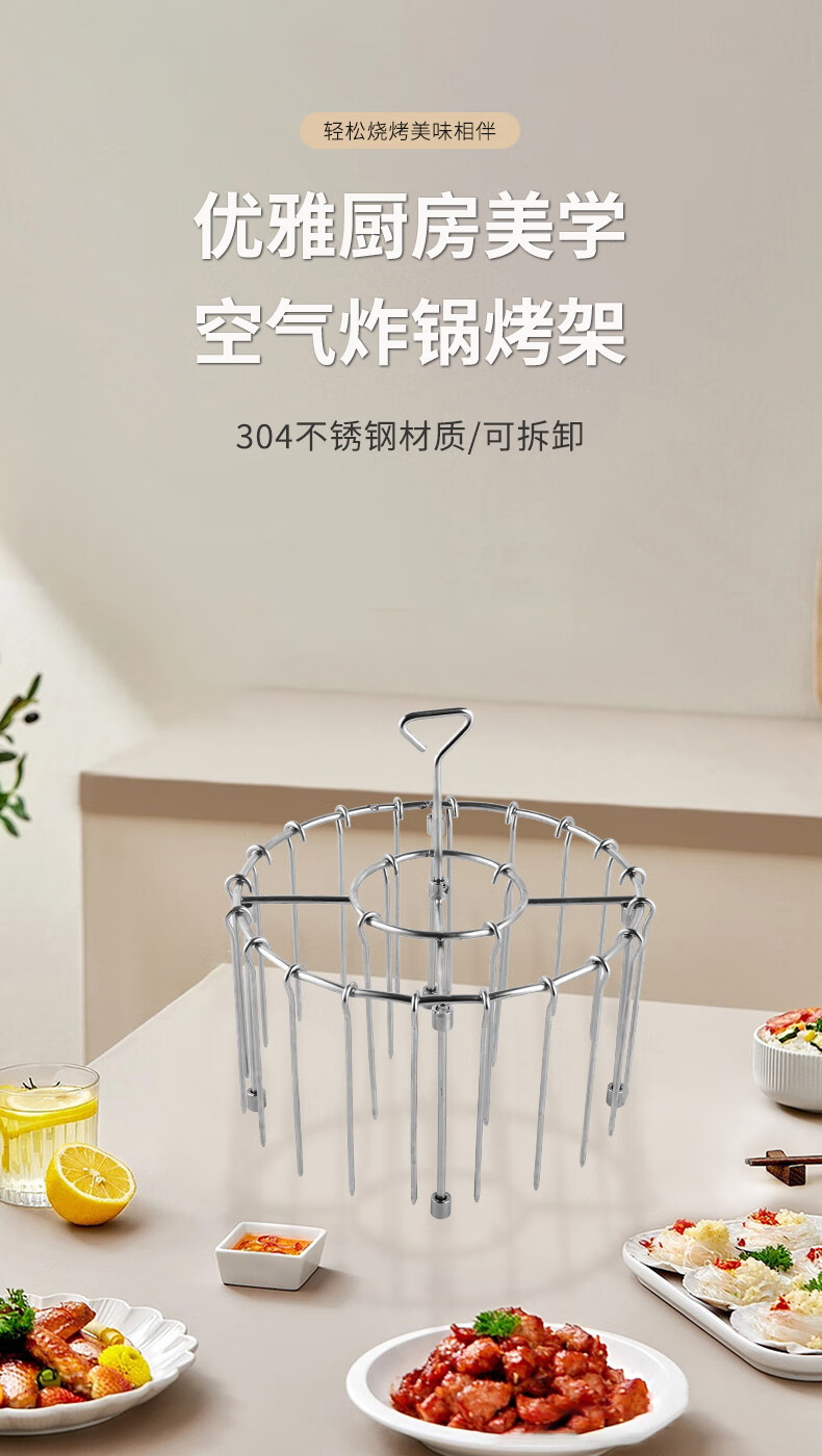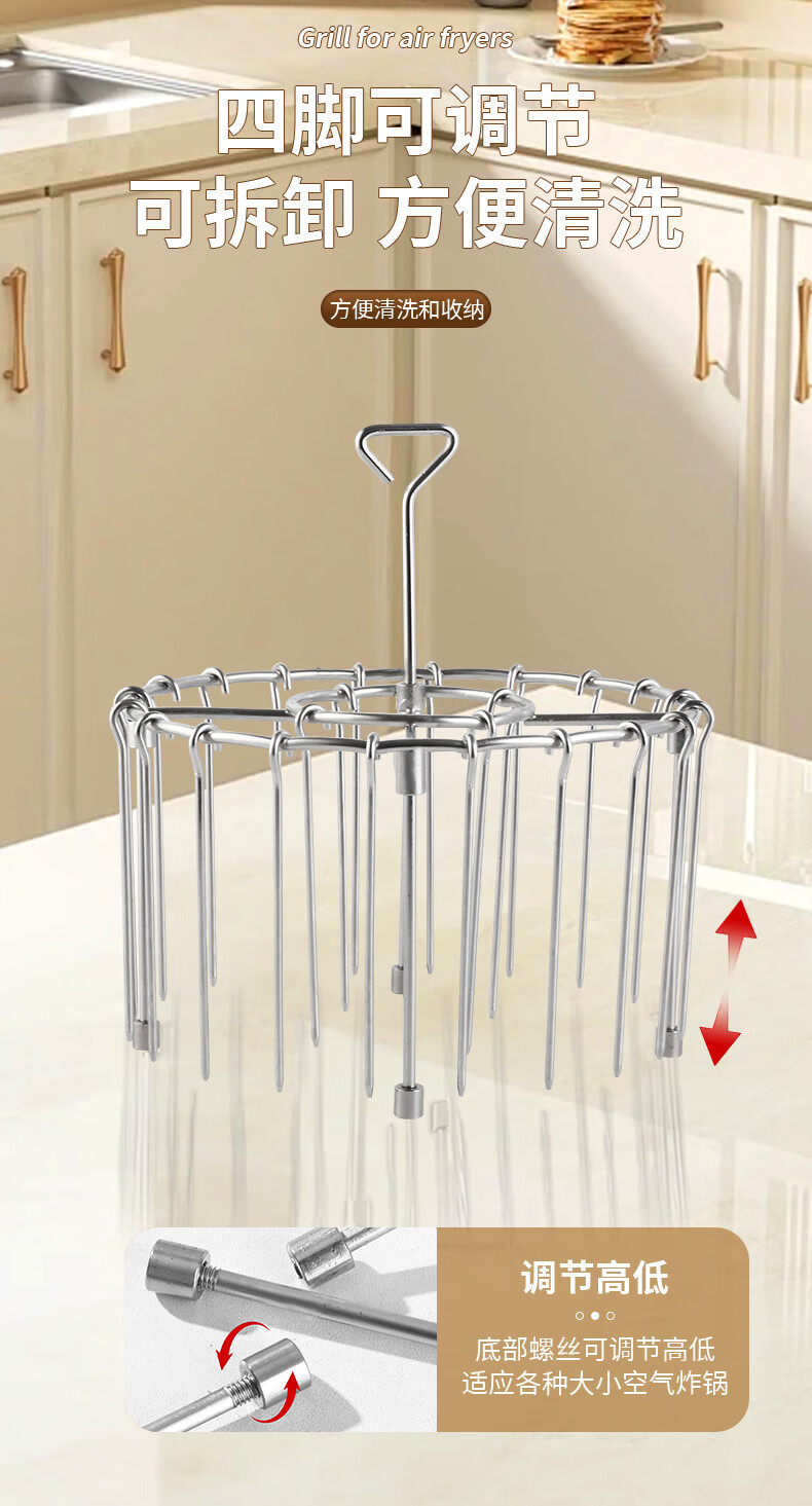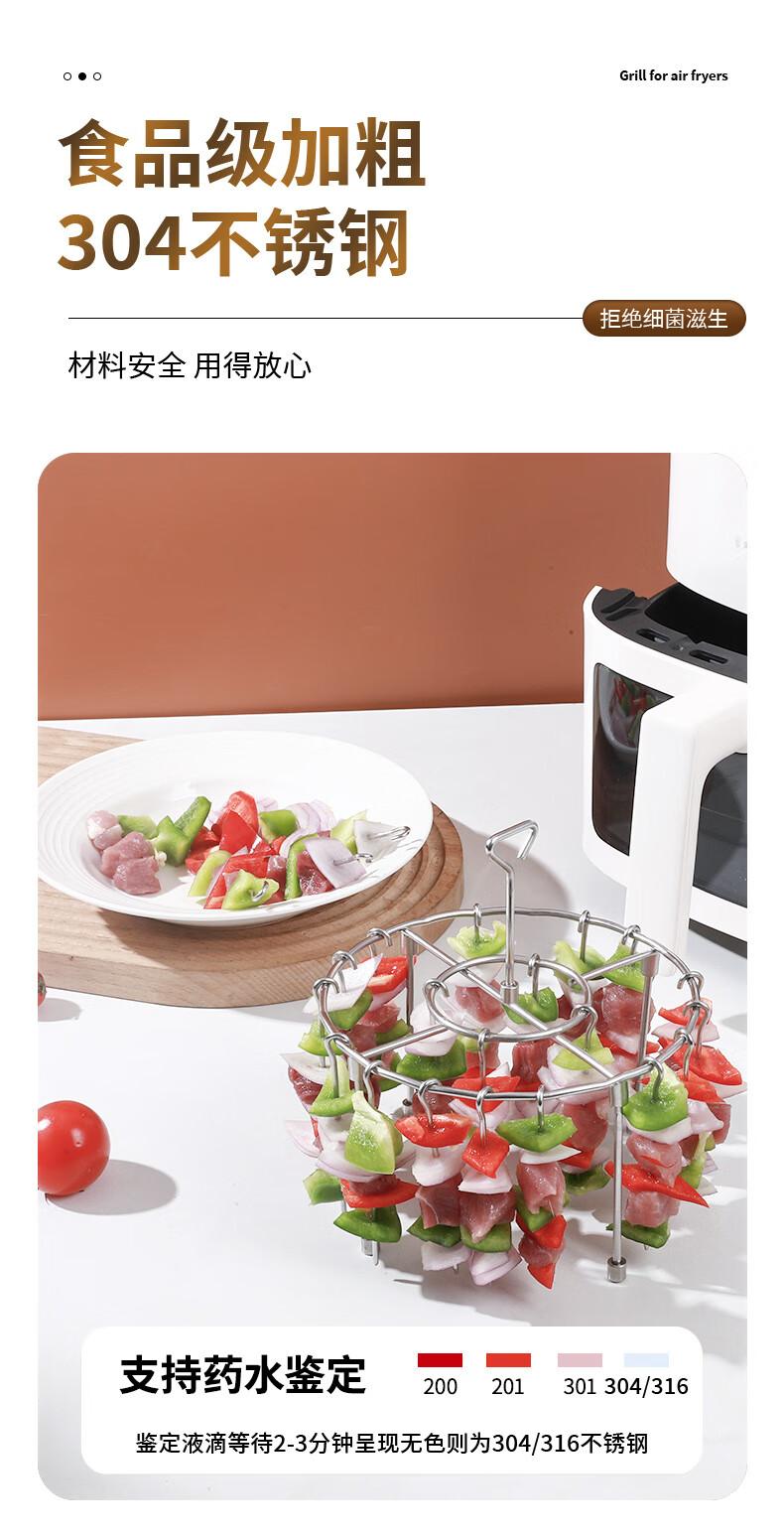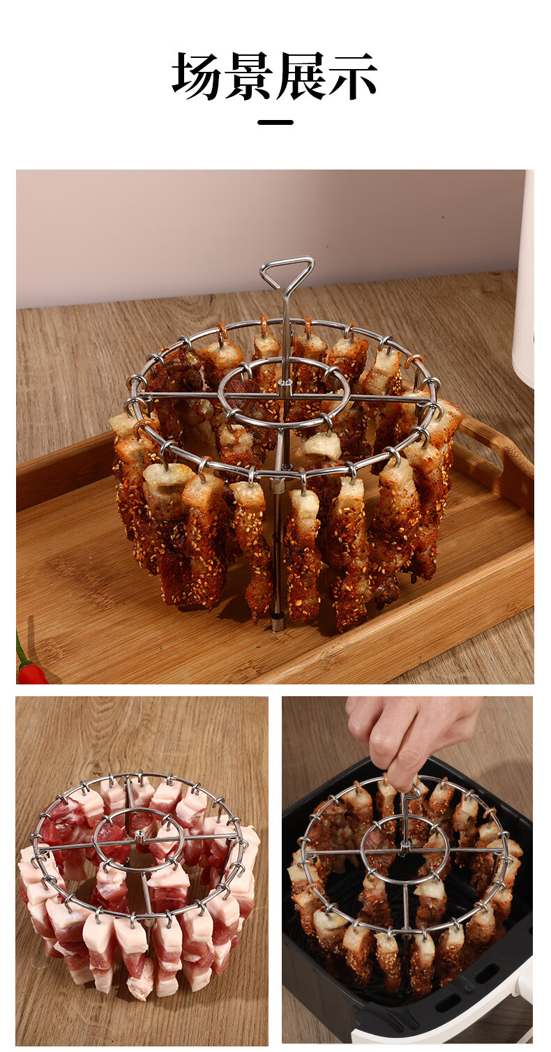 Fat Donglai's same air fryer special skewers vertical grill food grade 304 stainless steel hanging grill four-legged version with fixed slot grill + 24 signs 304 stainless steel fake one compensation