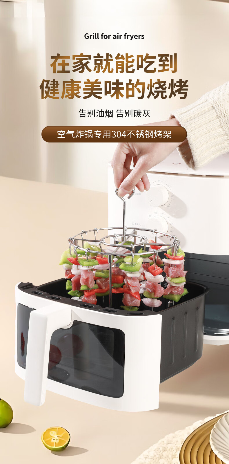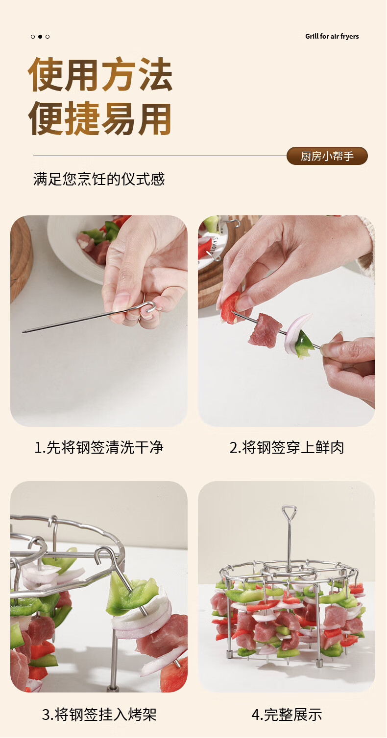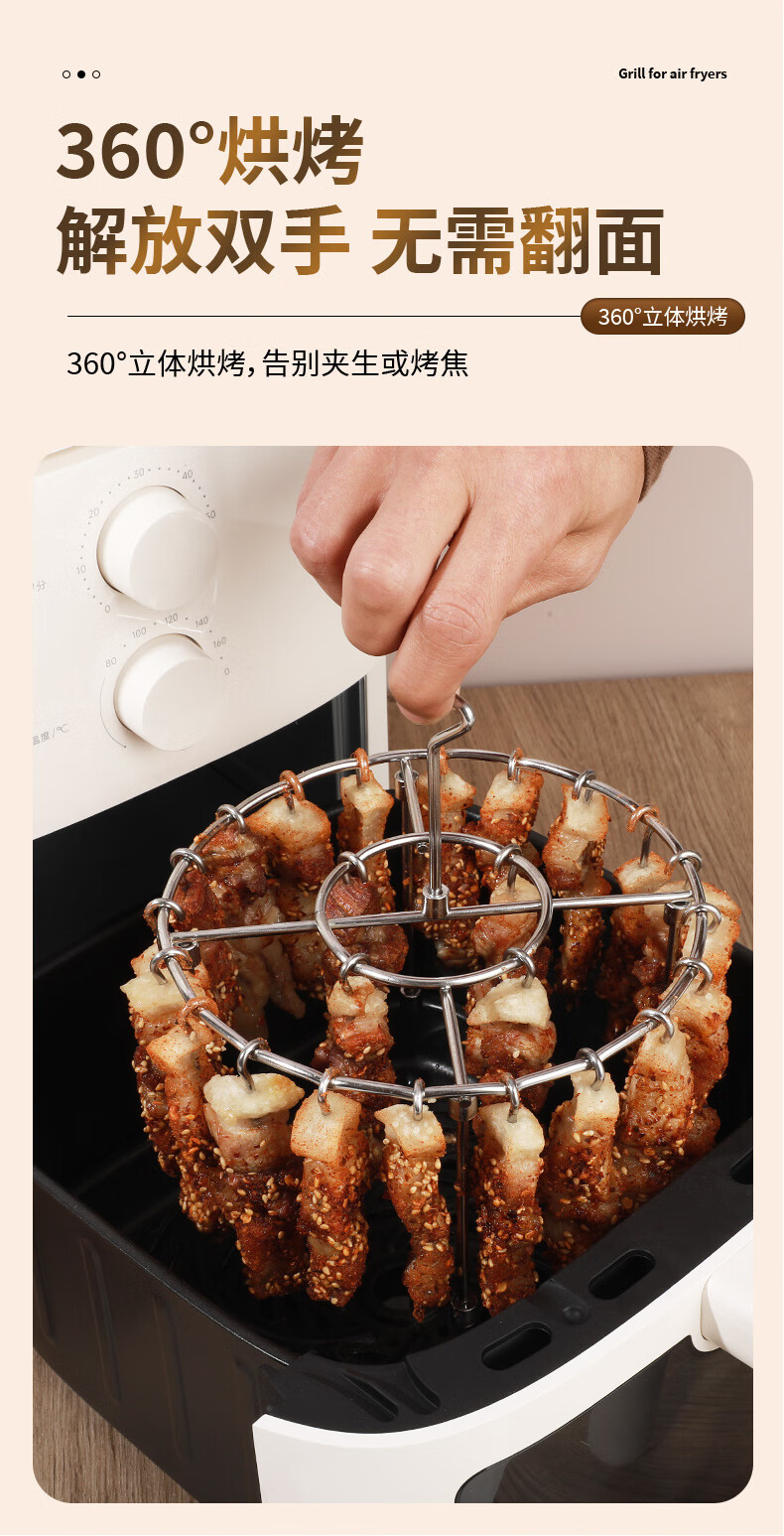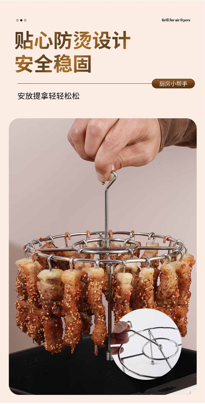 Fat Donglai's same air fryer special skewers vertical grill food grade 304 stainless steel hanging grill four-legged version with fixed slot grill + 24 signs 304 stainless steel fake one compensation