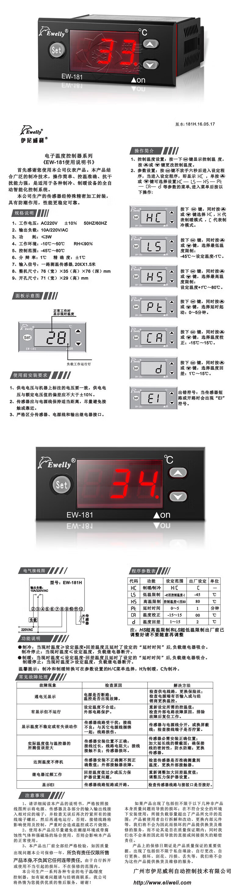 Ewelly refrigeration and heating thermostat temperature controller digital display temperature controller thermostat with new glue probe