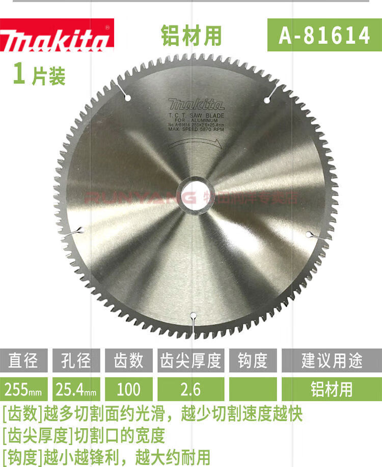 Wen Yijia cutting aluminum alloy saw blade 10-inch aluminum saw blade aluminum alloy cutting blade saw aluminum machine saw blade 255mm A-81614 aluminum 255*25 points 4*100T