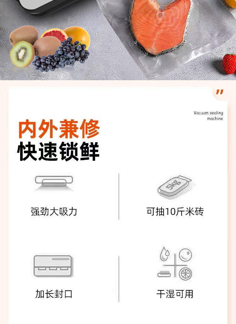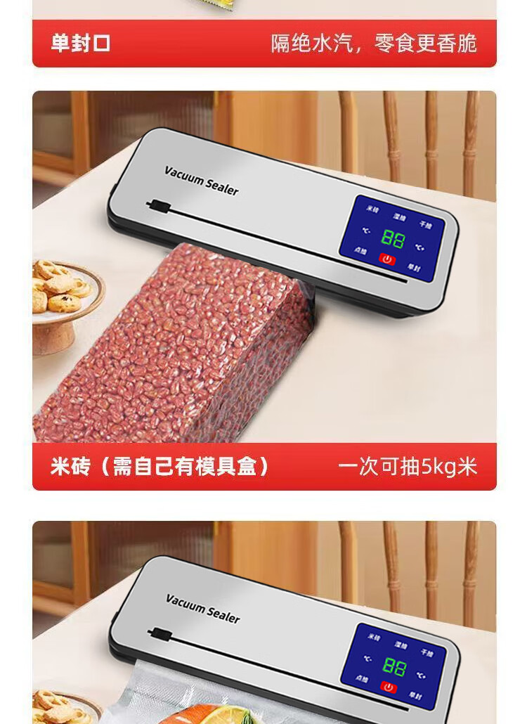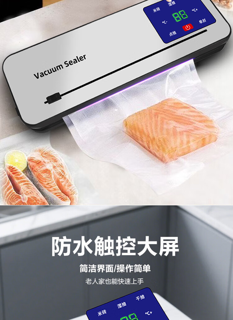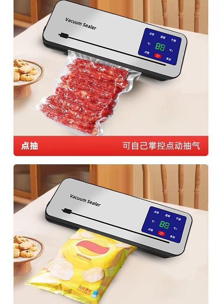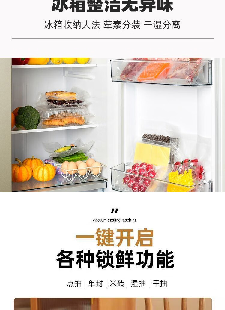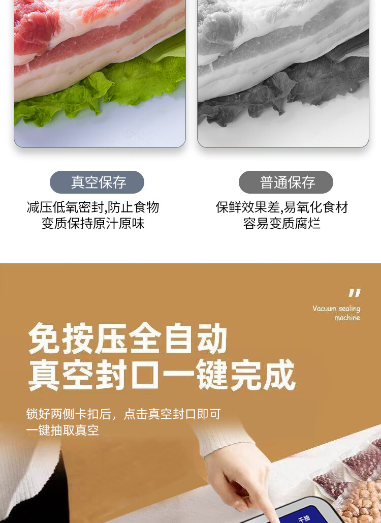 Vacuum sealing machine household fully automatic vacuum sealing machine wet and dry sealing vacuum plastic sealing food preservation Model B cutter 6-button vacuum machine-10 bags