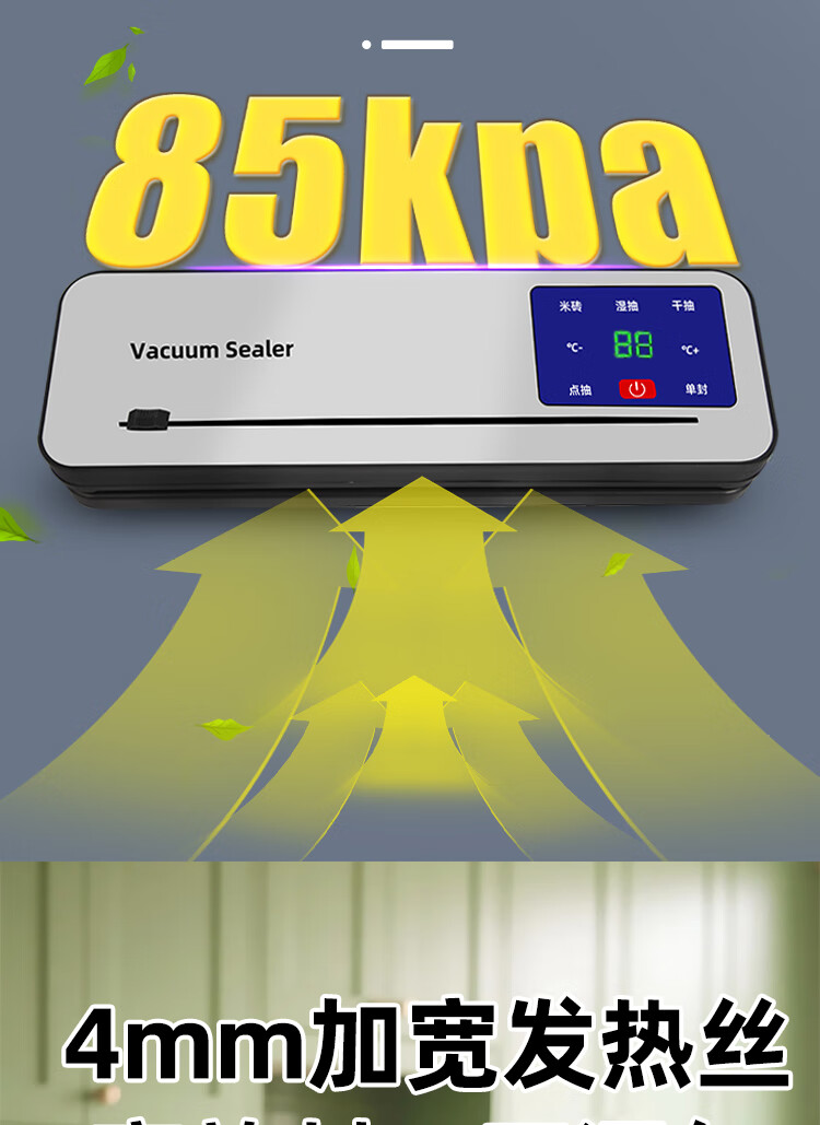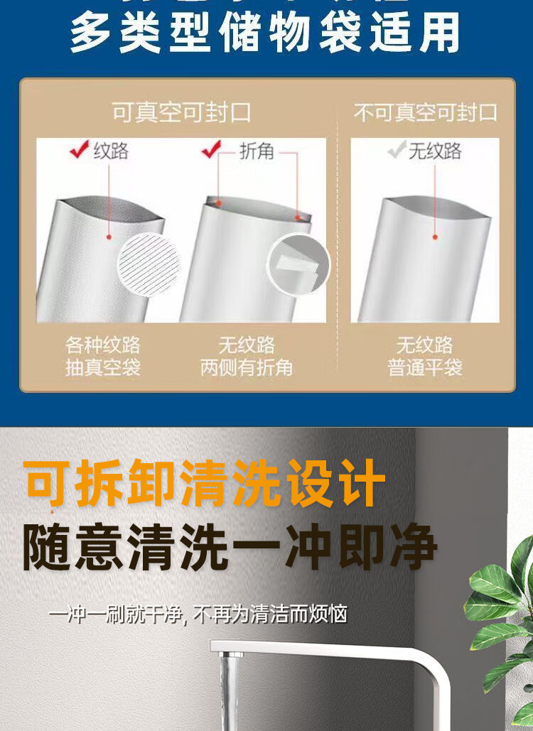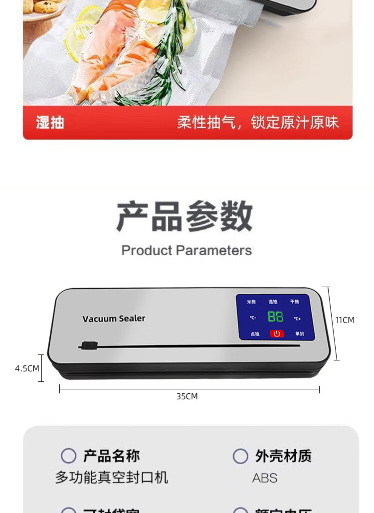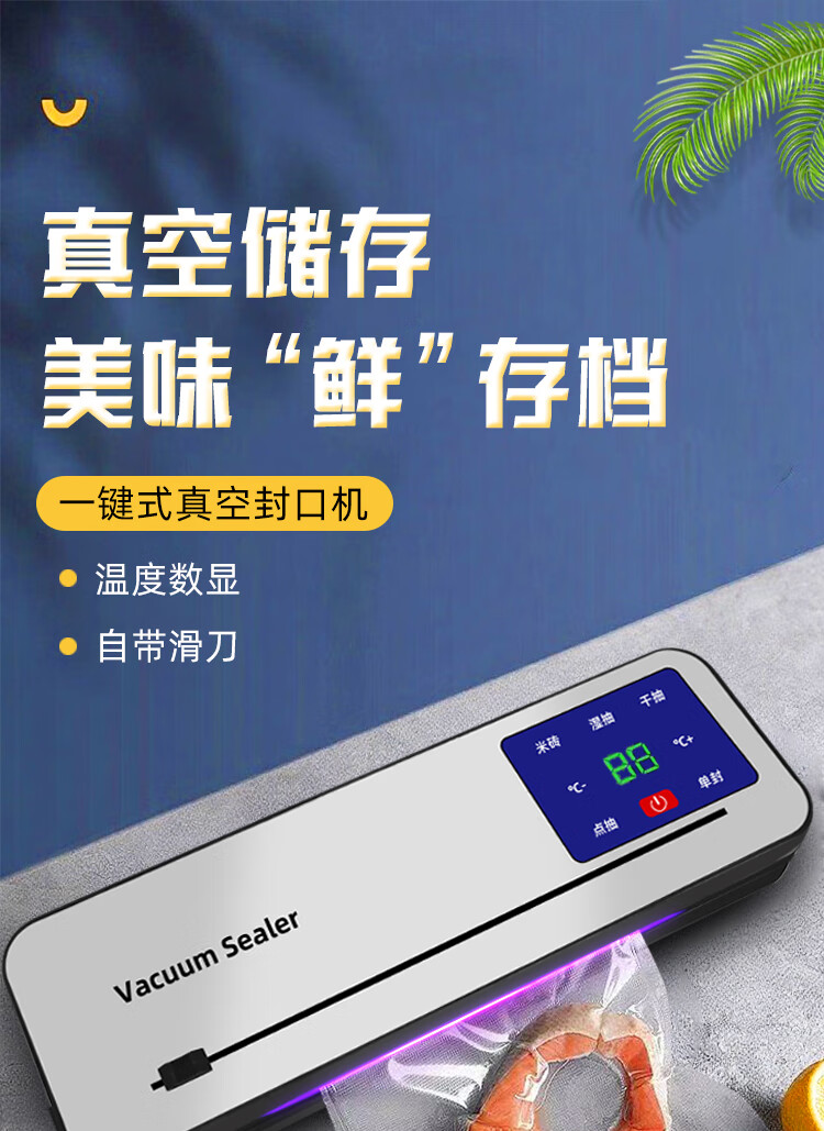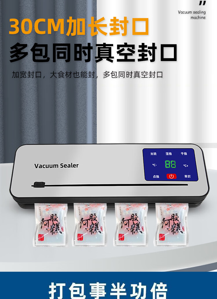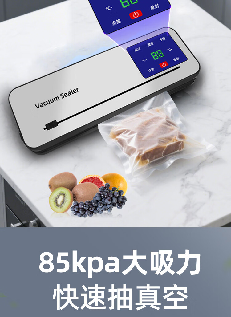 Vacuum sealing machine household fully automatic vacuum sealing machine wet and dry sealing vacuum plastic sealing food preservation Model B cutter 6-button vacuum machine-10 bags