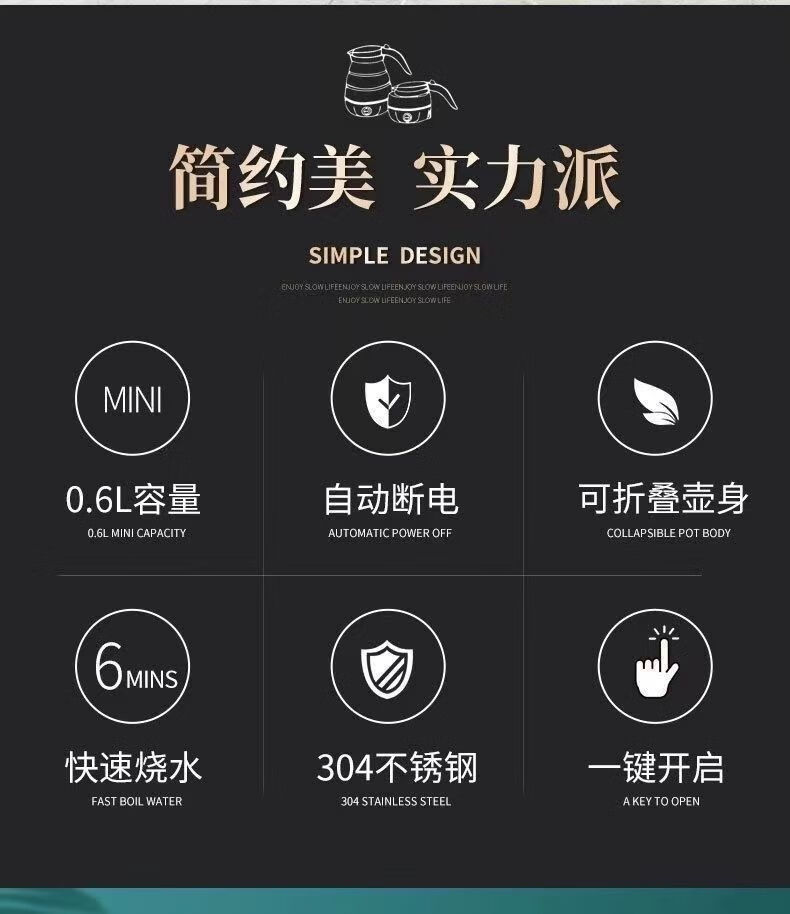 110v electric kettle folding silicone folding kettle compression kettle portable middle-aged and elderly fully automatic cut-off 1ml 52ml
