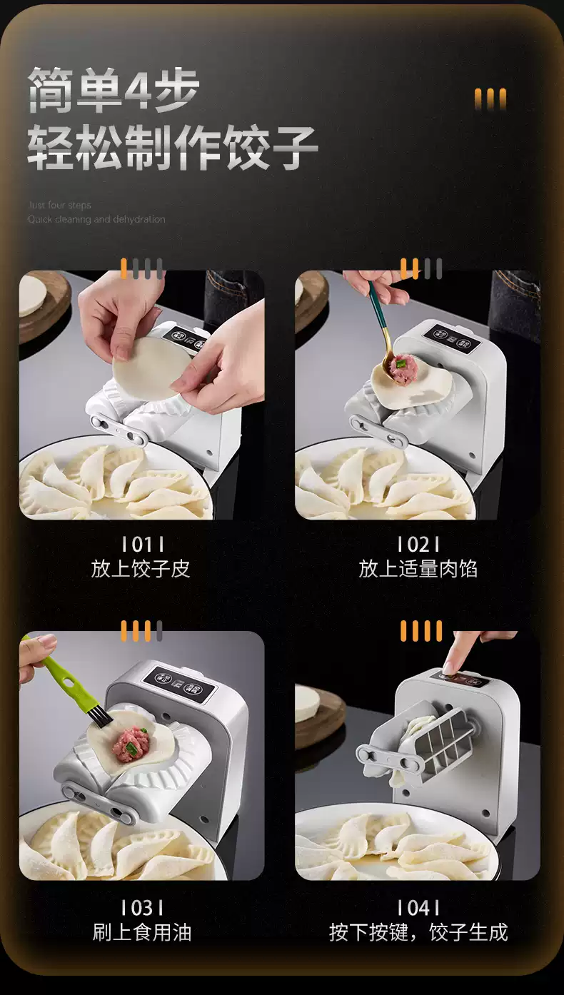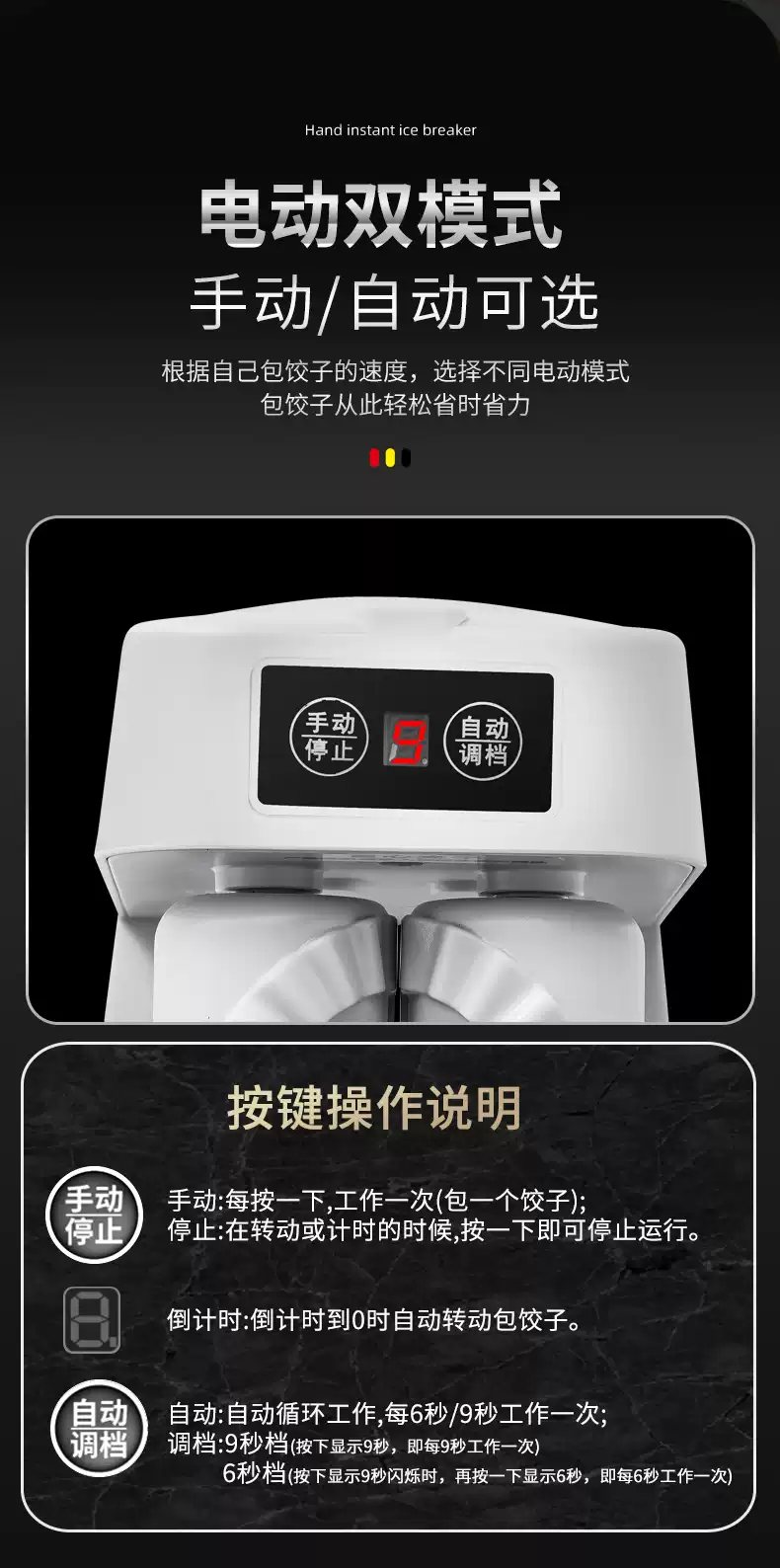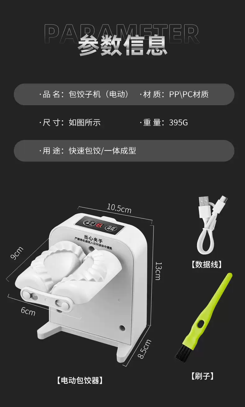The shopkeeper's fully automatic dumpling making machine is a household food-grade electric dumpling making machine. It is a small pressure-making dumpling-making machine. The electric dumpling making machine can wrap about 1,500 dumplings when fully charged.