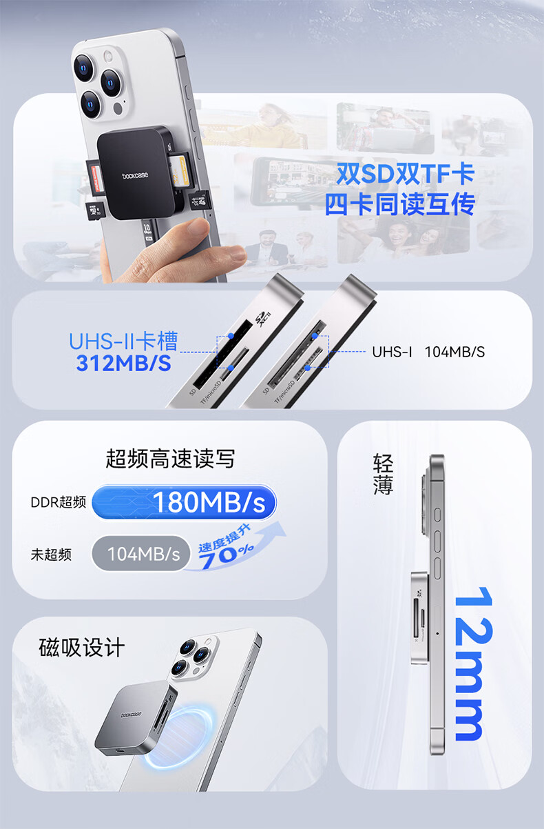 DOCKCASE magnetic high-speed card reader SD card TF card memory card flash card box type version - four-in-one magnetic high-speed card reader.