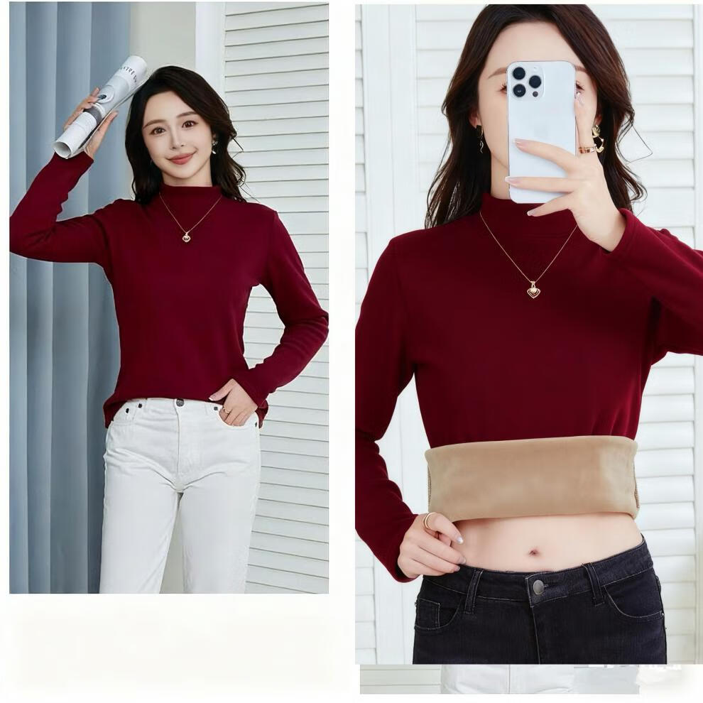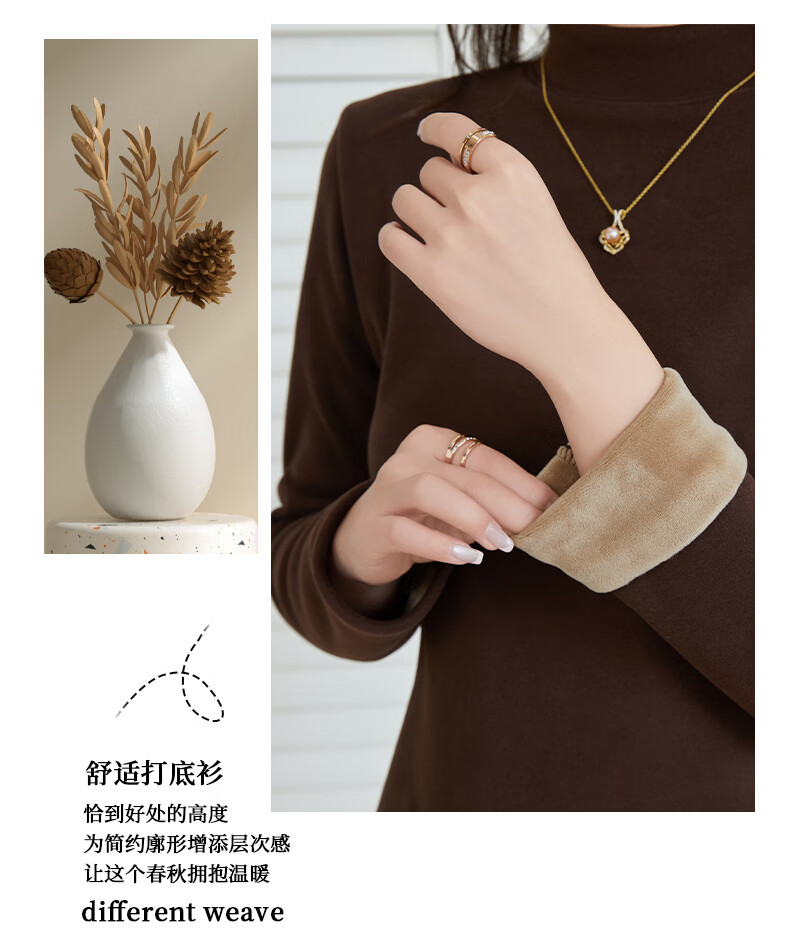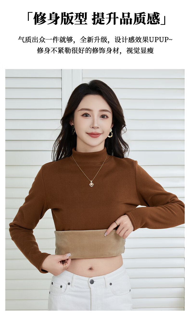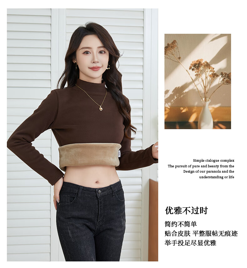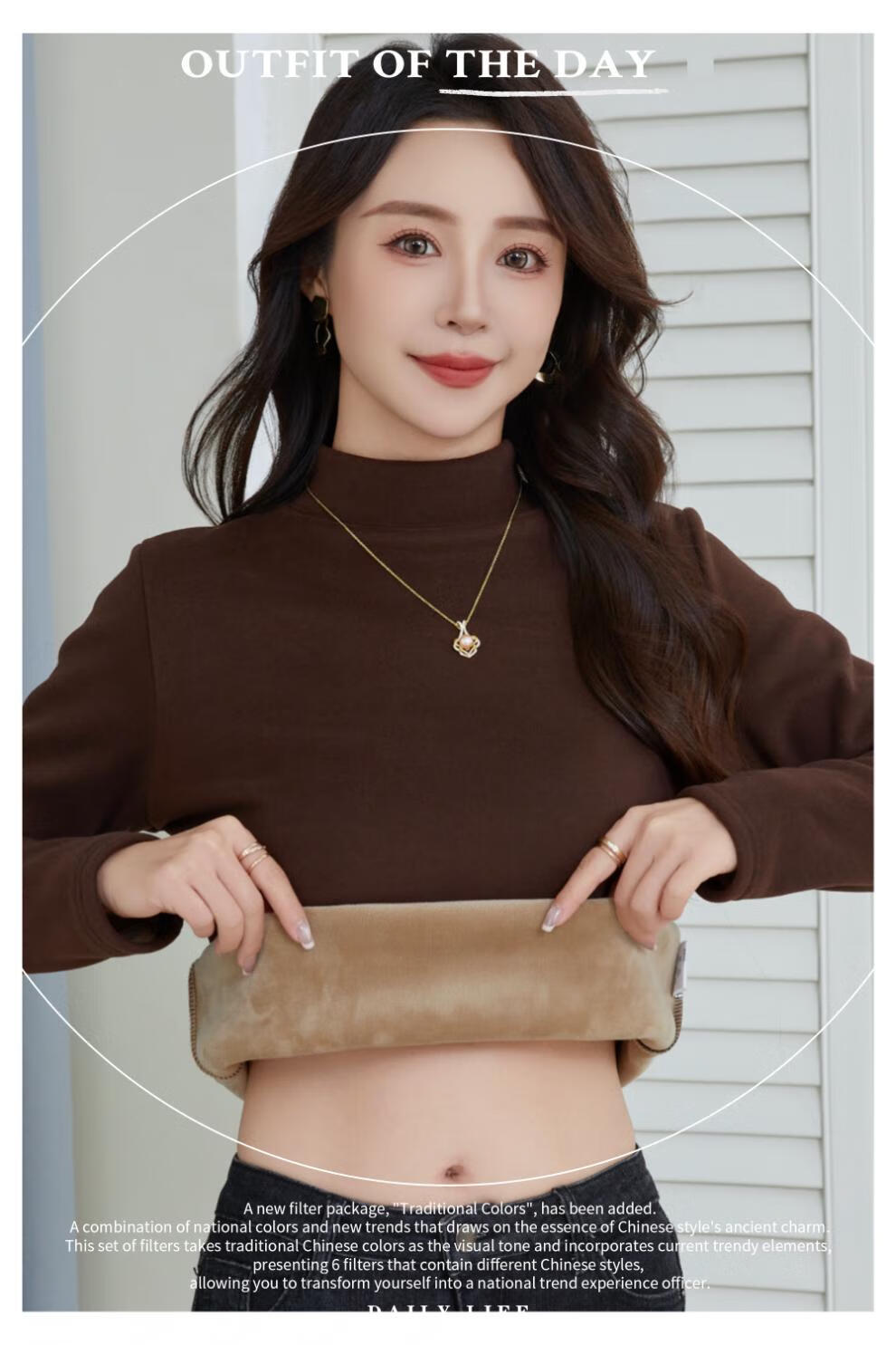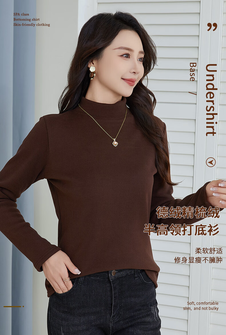 Woodpecker (TUCANO) velvet bottoming shirt for women, half turtleneck, thickened lining, combed velvet winter stand-up collar, slim slimming warm top for women, brown L, velvet style, 100-110 pounds to wear