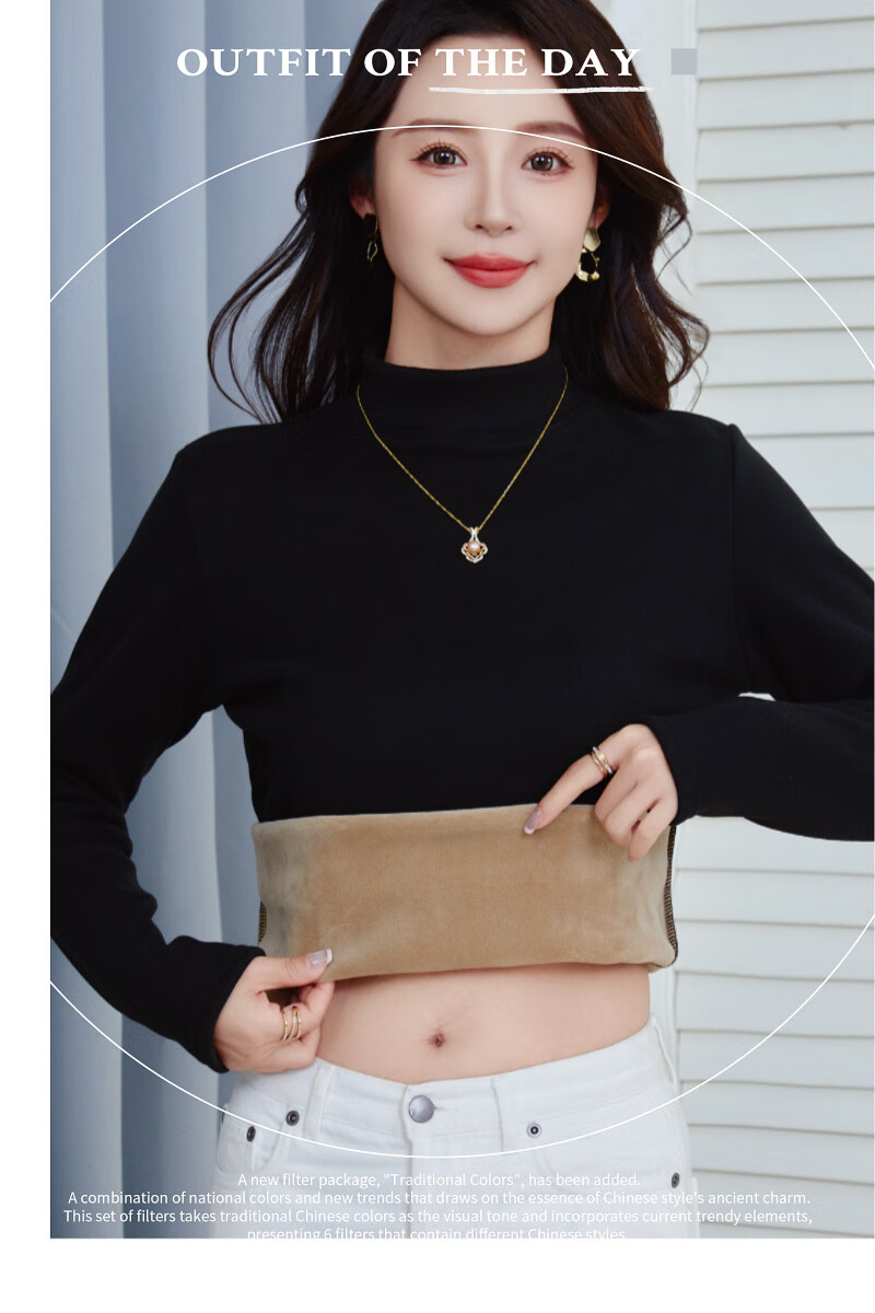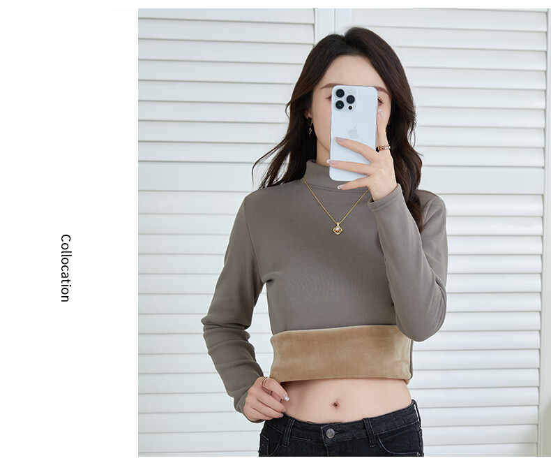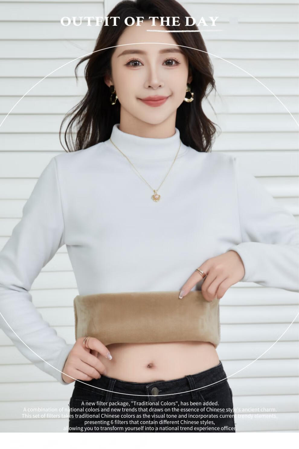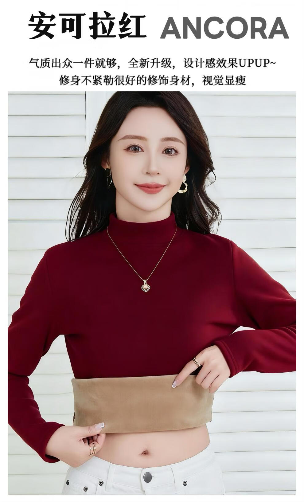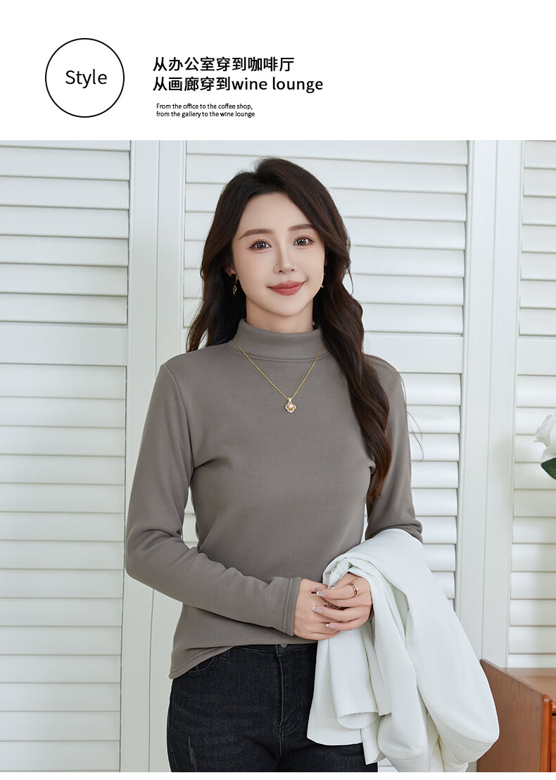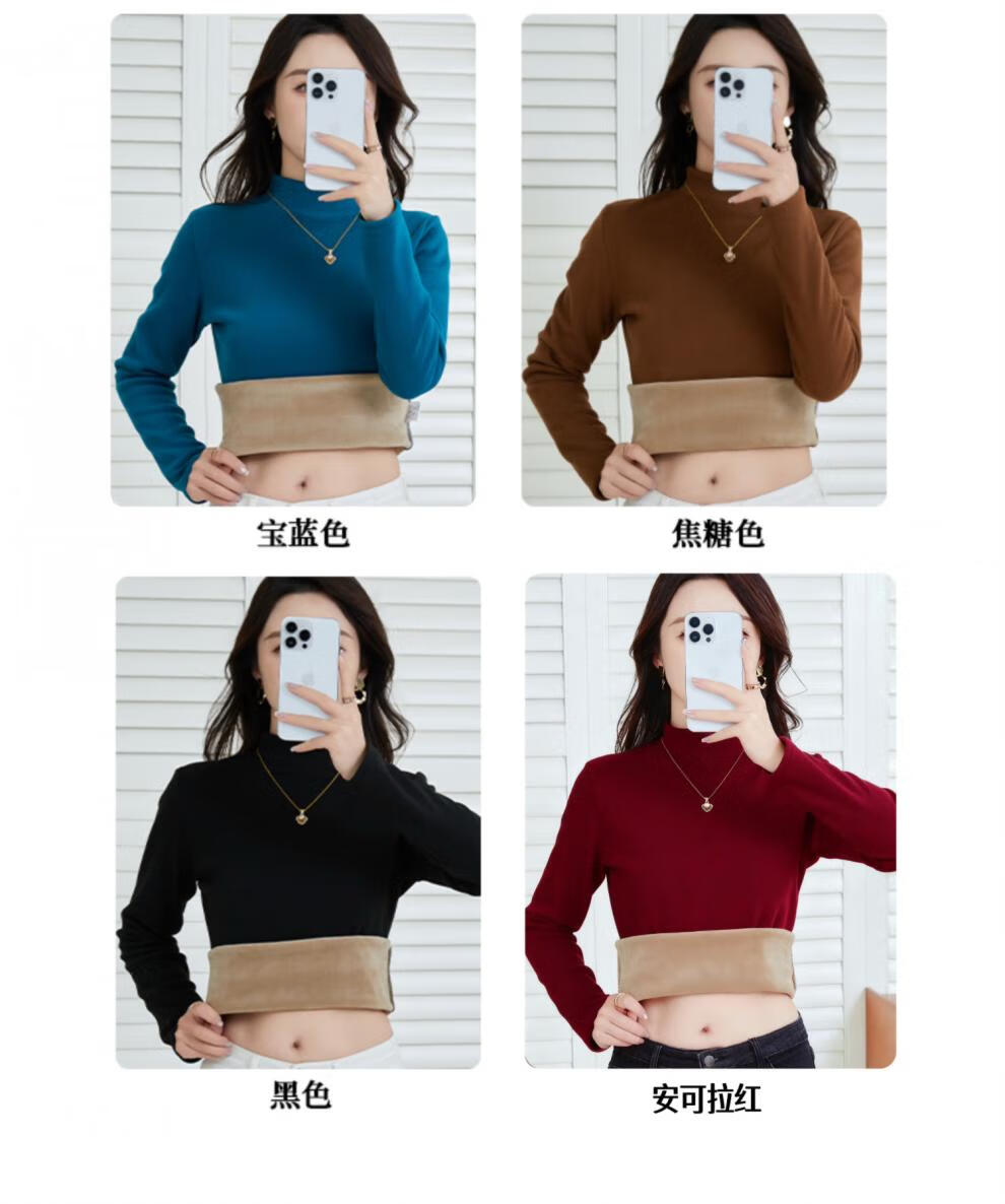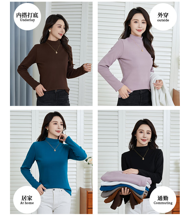 Woodpecker (TUCANO) velvet bottoming shirt for women, half turtleneck, thickened lining, combed velvet winter stand-up collar, slim slimming warm top for women, brown L, velvet style, 100-110 pounds to wear