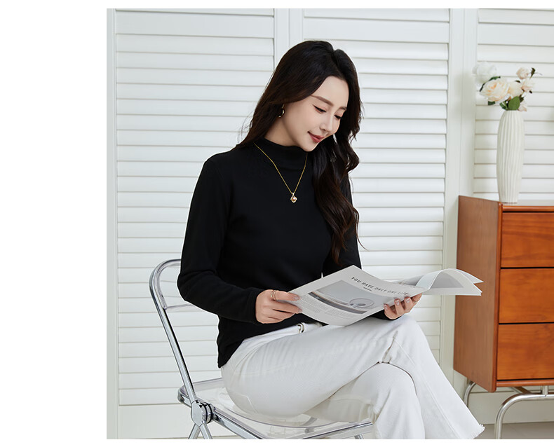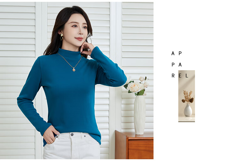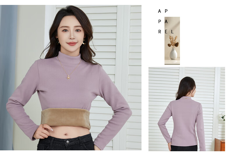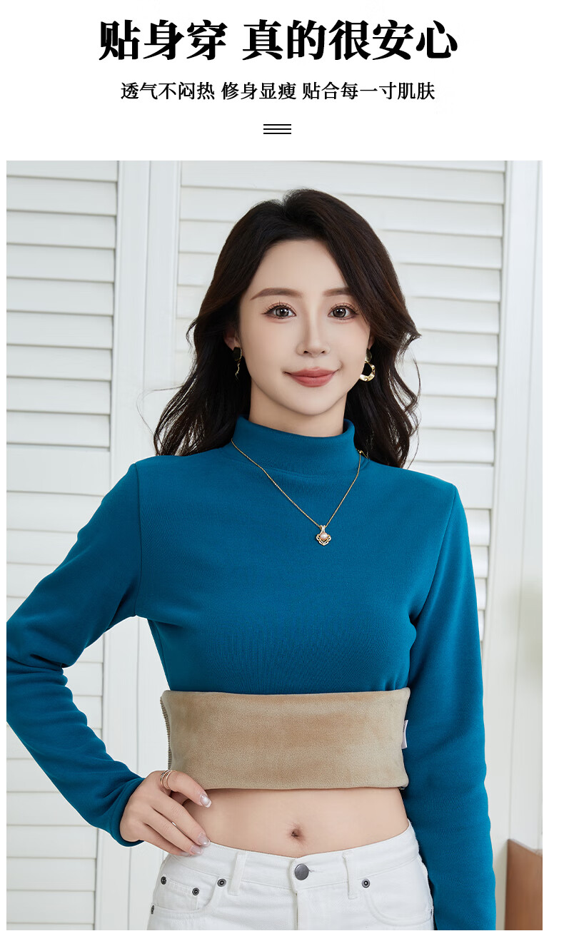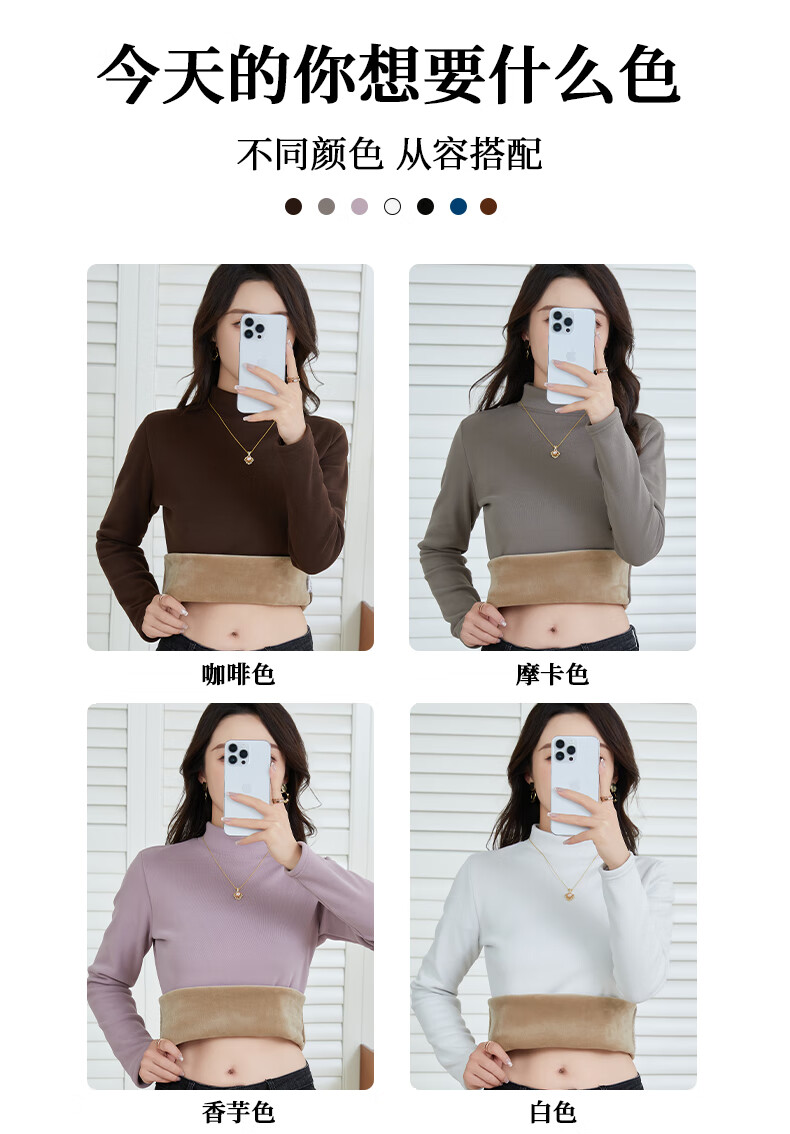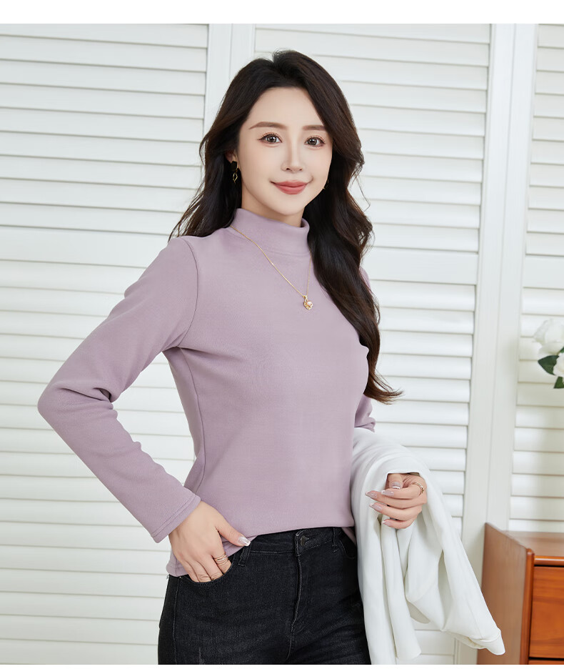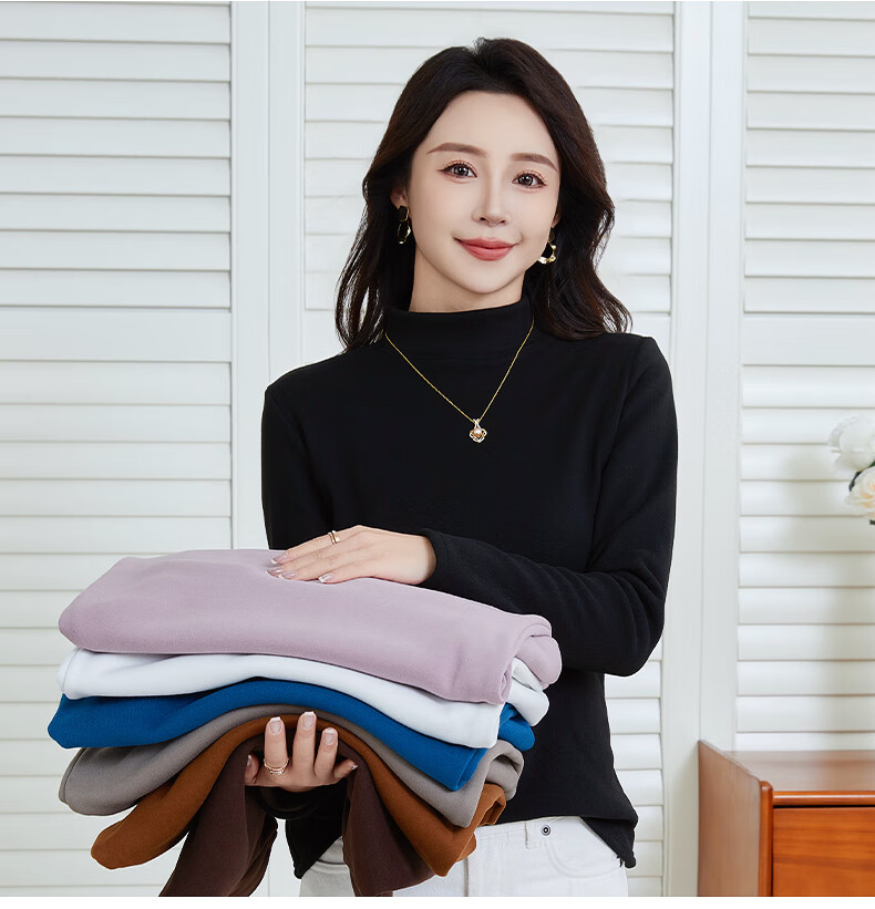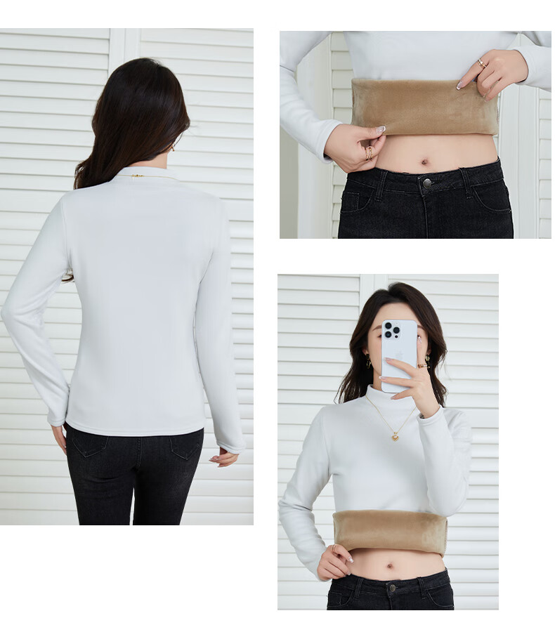 Woodpecker (TUCANO) velvet bottoming shirt for women, half turtleneck, thickened lining, combed velvet winter stand-up collar, slim slimming warm top for women, brown L, velvet style, 100-110 pounds to wear
