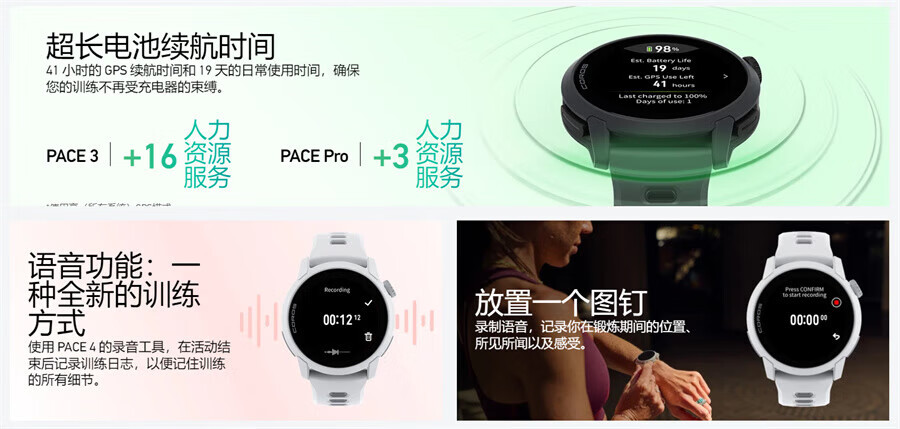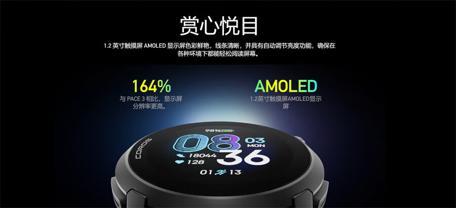 COROS PACE 4 lightweight GPS sports watch is lightweight and comfortable with 19-day battery life, sleep tracking, touch screen accuracy, running, cycling and mountaineering physical training black