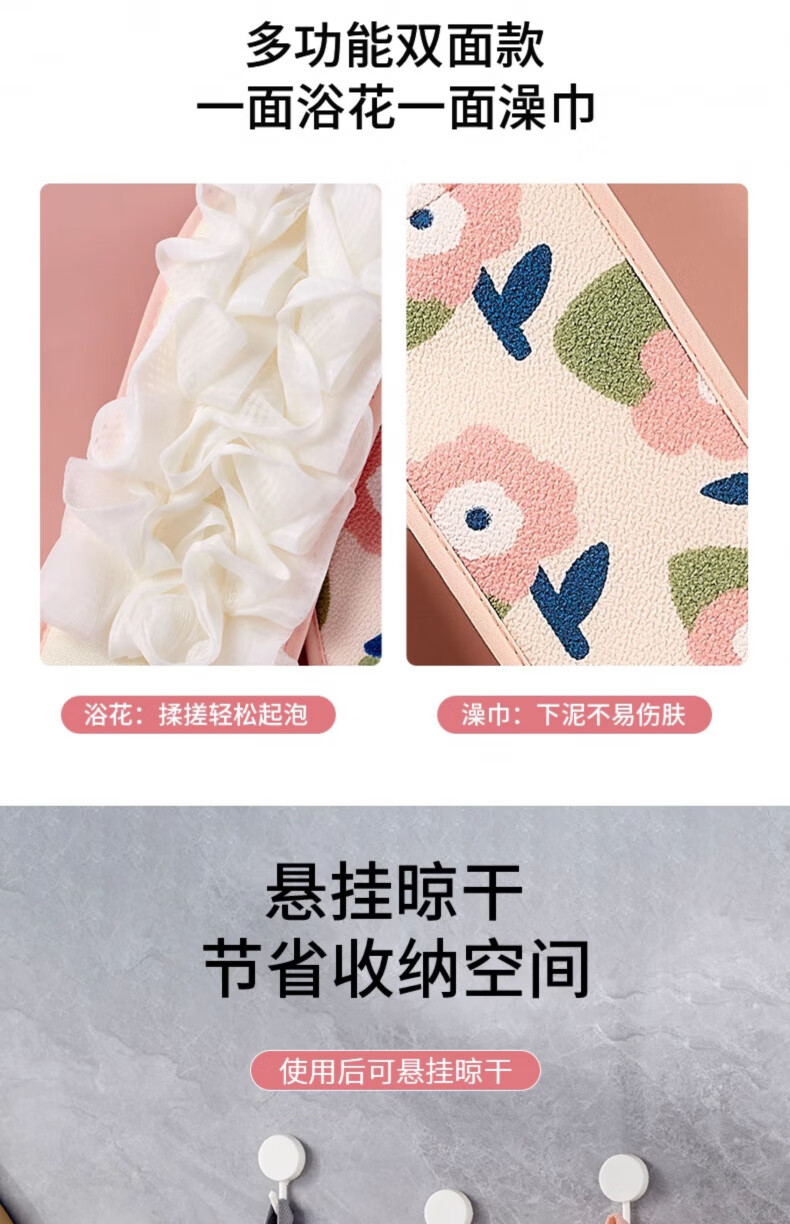 KDISV German bath towel for women, special powerful mud rub bath and back rub artifact long brush to rub the back without asking for help. Pink + yellow. One side rubs the bath and the other side bath flower. Brand new upgrade - powerful mud - widened, widened and thickened.