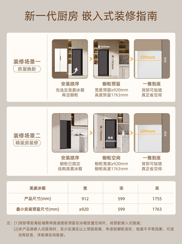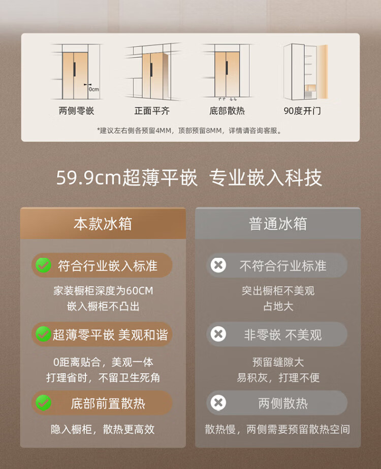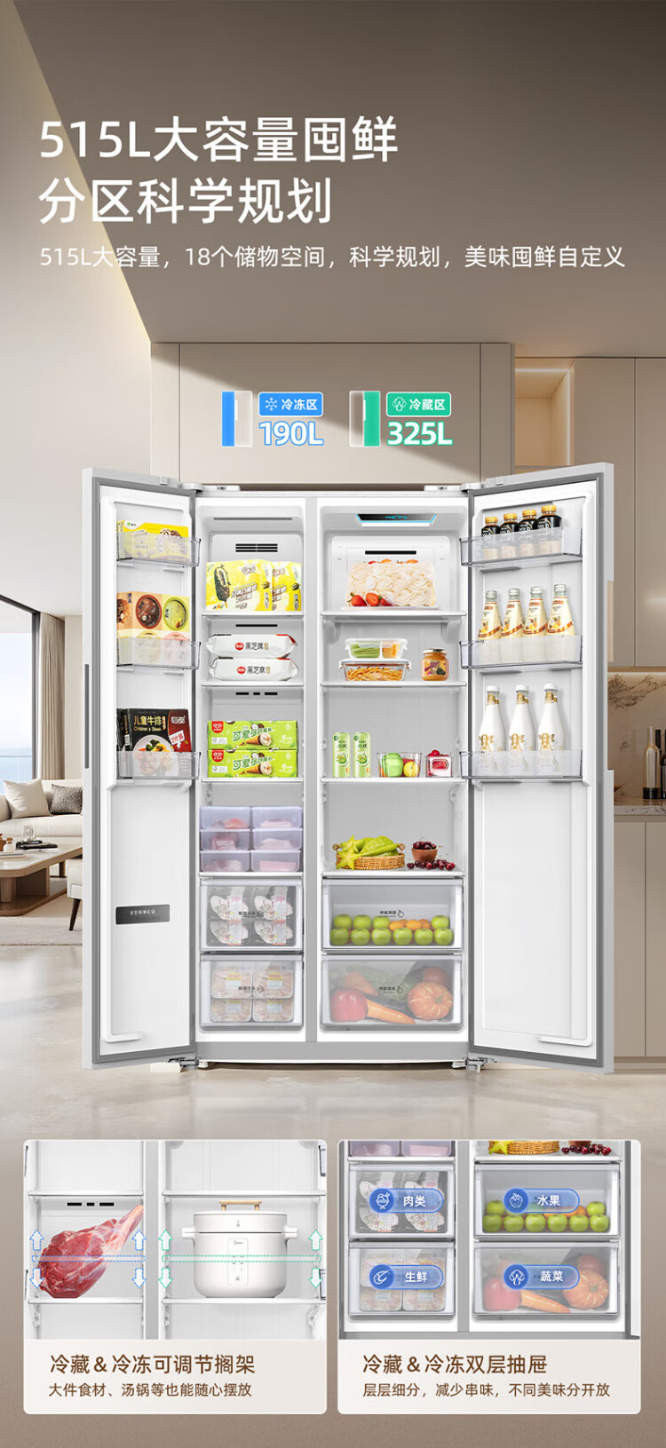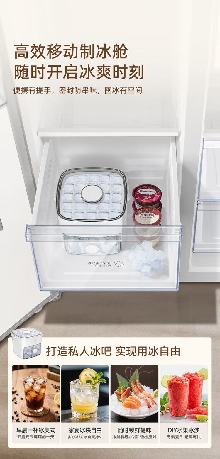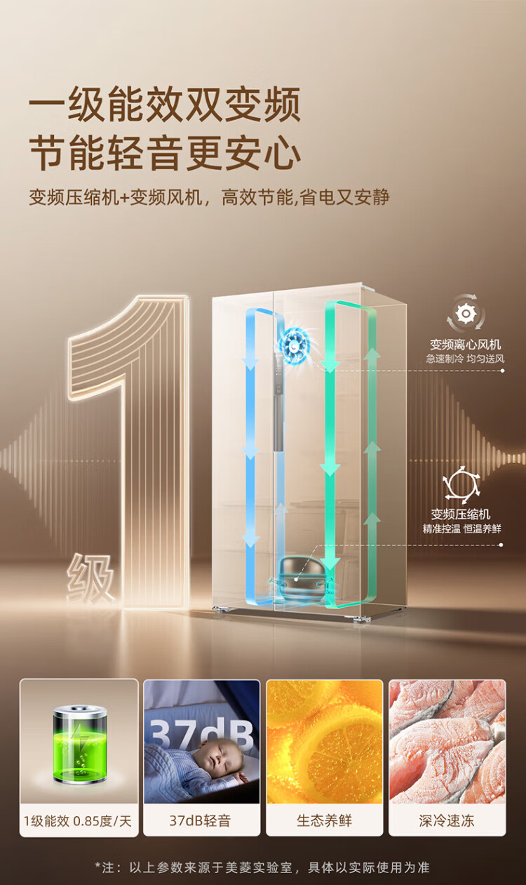 MeiLing Xiaoquexing 515L side-by-side door refrigerator, active sterilization and odor-free, ultra-thin zero-flat built-in large capacity, first-class energy efficiency, air-cooled, frost-free BCD-515WKPCZX National subsidy Xiaoquexing 515WKPCZX