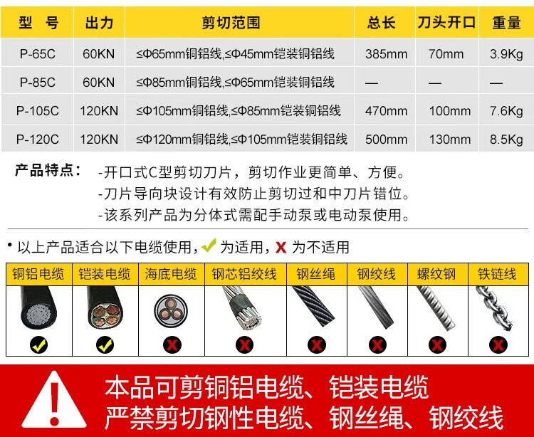 Lanpody open-type electric hydraulic cable cutter split cable cutter P65C105C120C quick disconnection cable cutter P-65C single piece