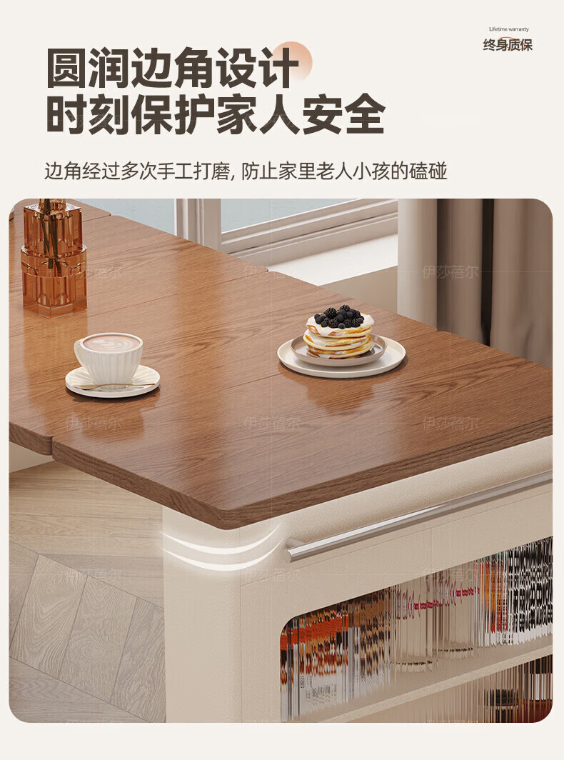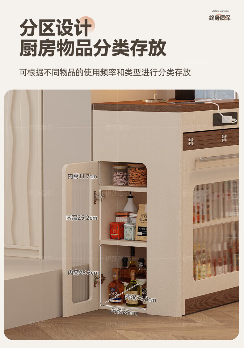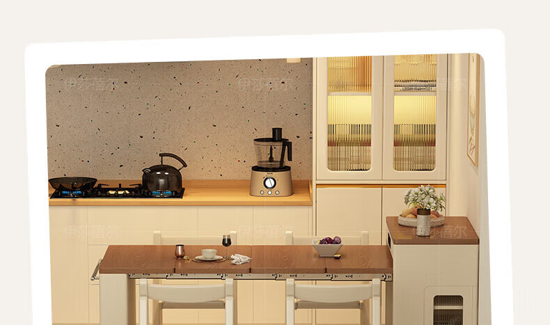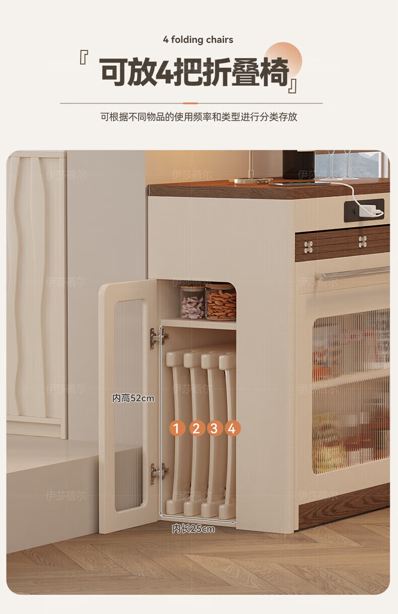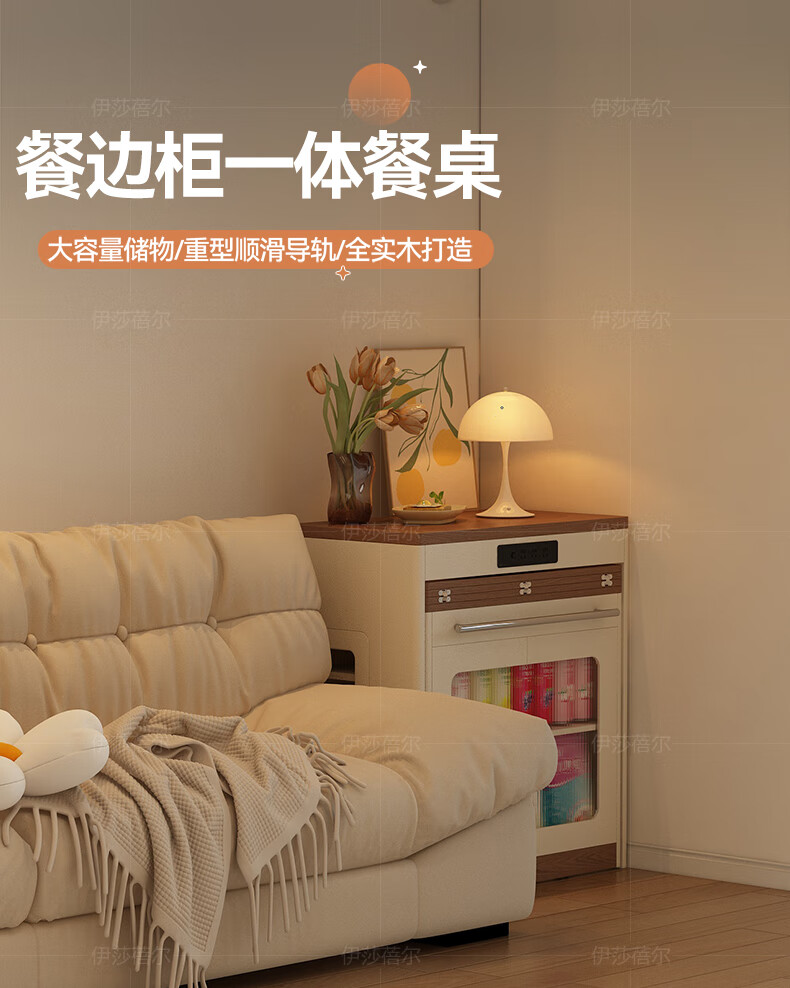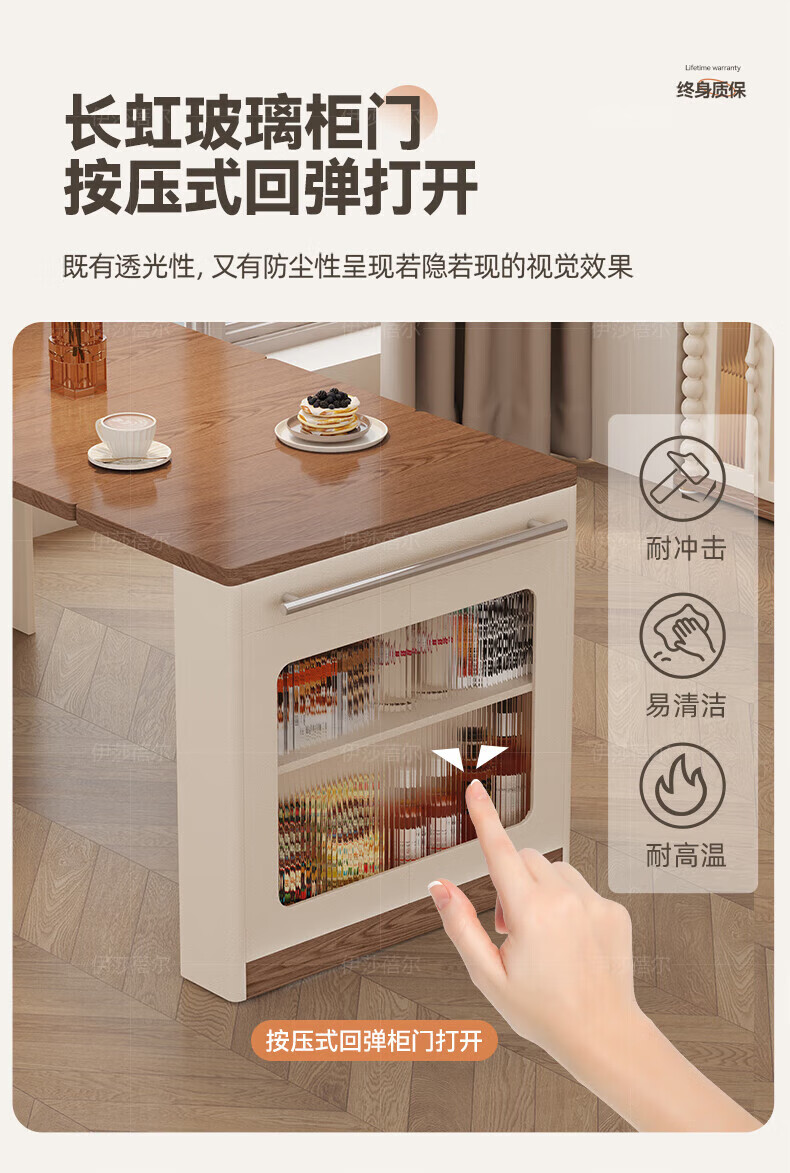 Isabel sideboard integrated dining table living room sofa cabinet next to wall tea cabinet small apartment space-saving storage cabinet single table with bull safety socket push-type rebound glass door