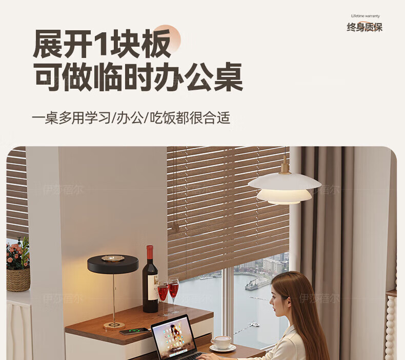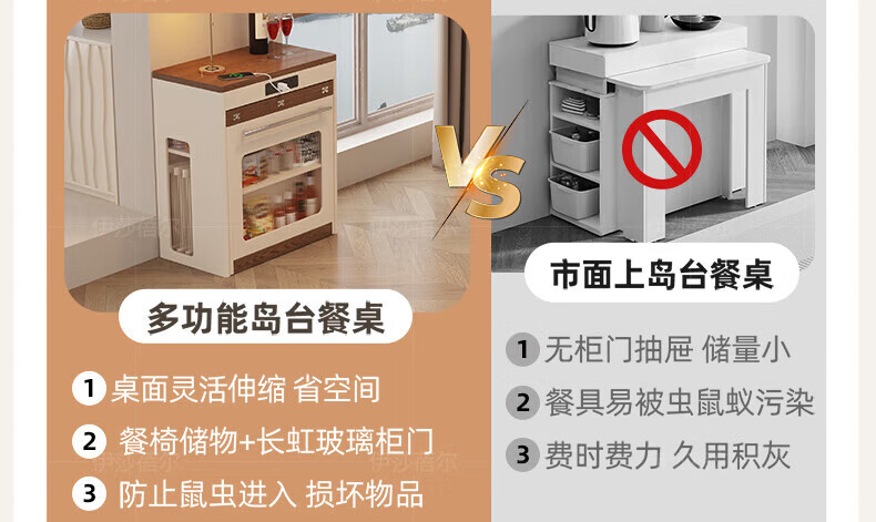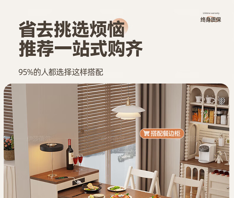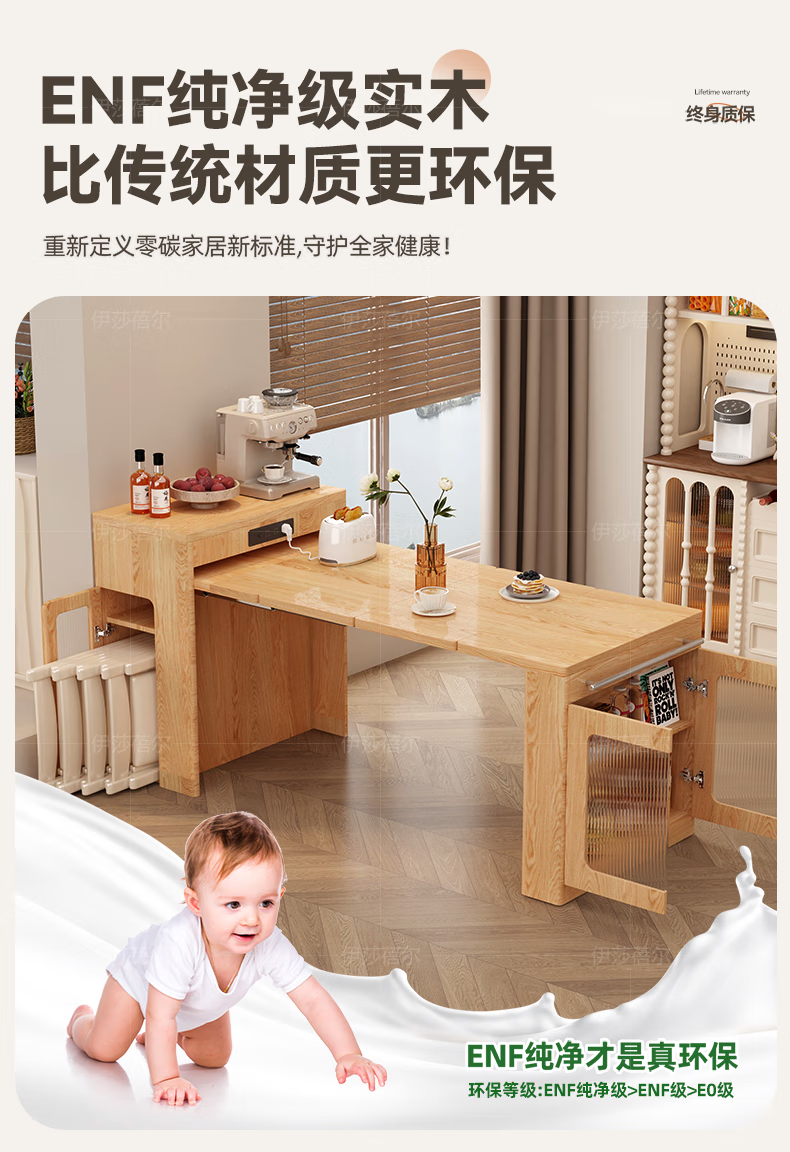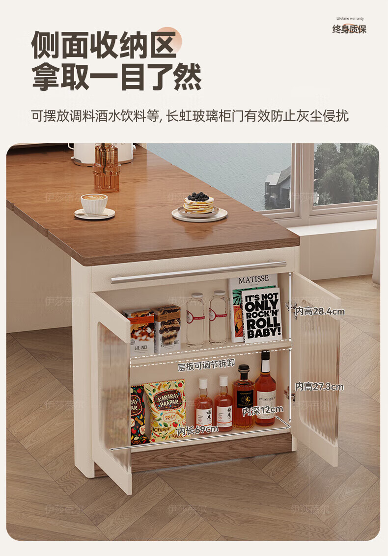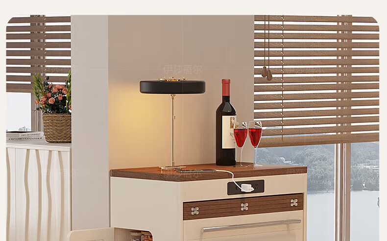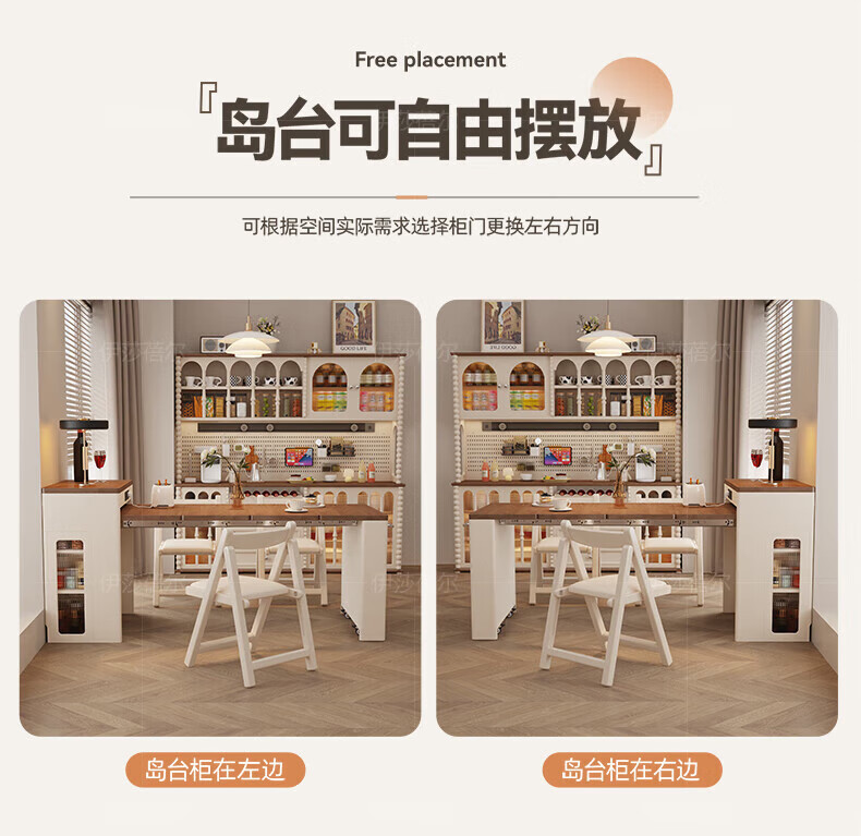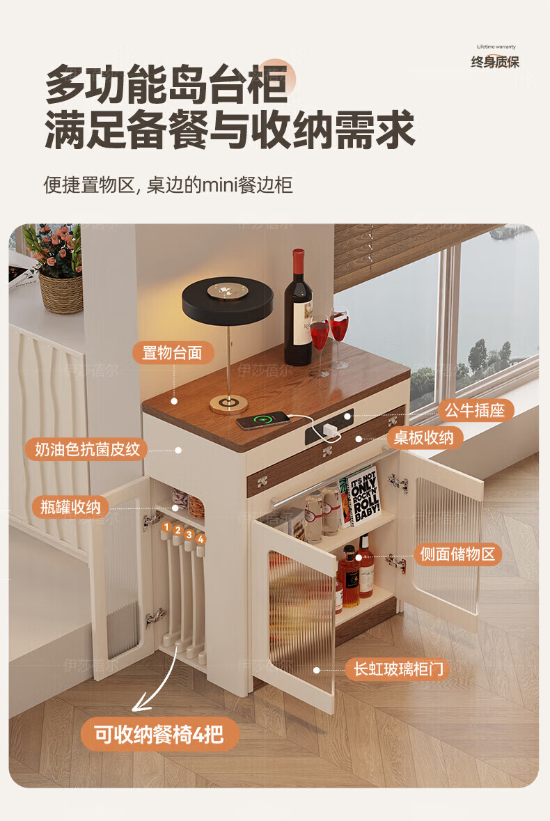 Isabel sideboard integrated dining table living room sofa cabinet next to wall tea cabinet small apartment space-saving storage cabinet single table with bull safety socket push-type rebound glass door