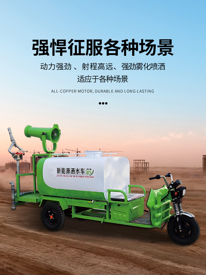 Bolijie electric three-wheeled sprinkler truck for construction sites, small mobile multi-functional new energy environmentally friendly high-pressure dust removal fog cannon truck, multi-functional sprinkler truck customization (deposit)