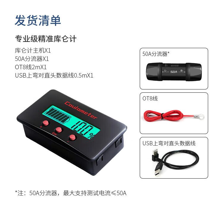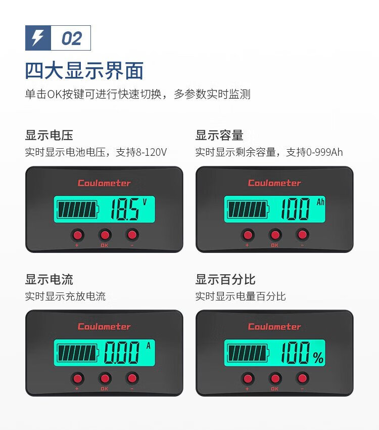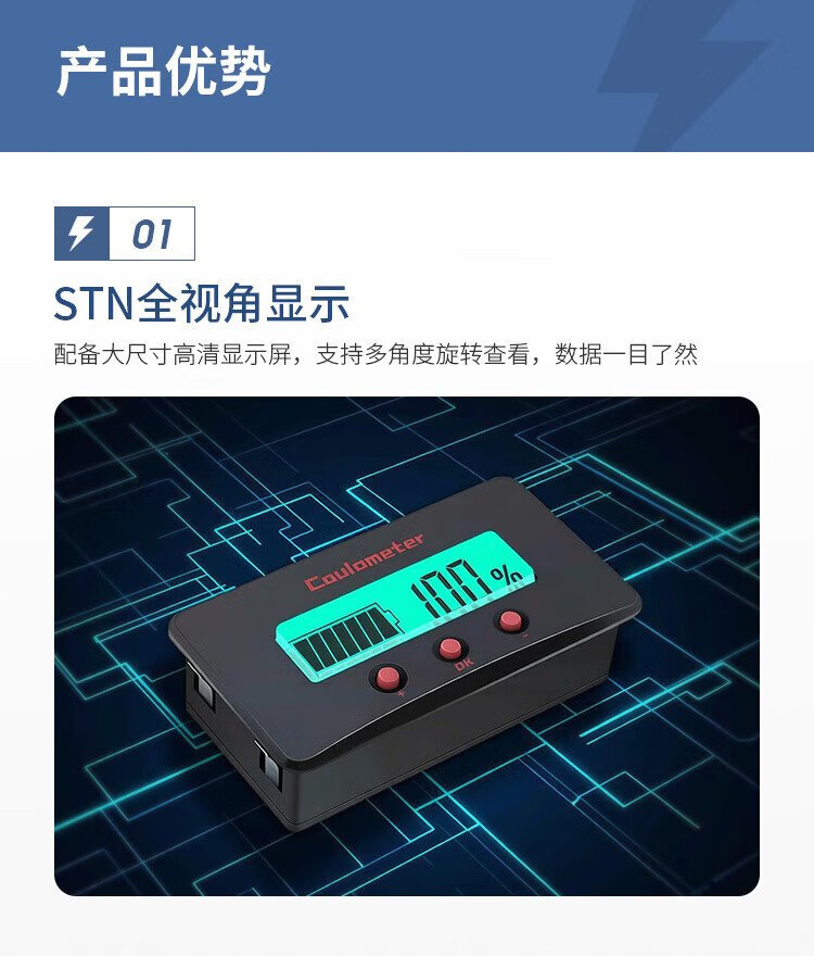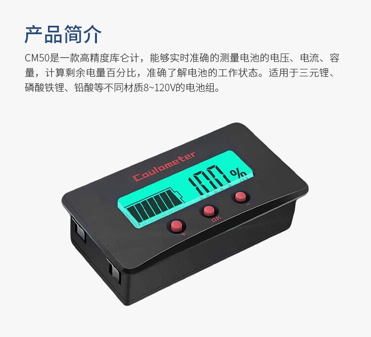Lunqu professional-grade accurate coulomb meter power meter display lithium iron phosphate battery 8-120V smart car voltage universal ammeter CM50 smart device smart accessories professional-grade accurate coulomb meter