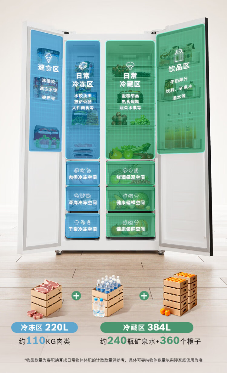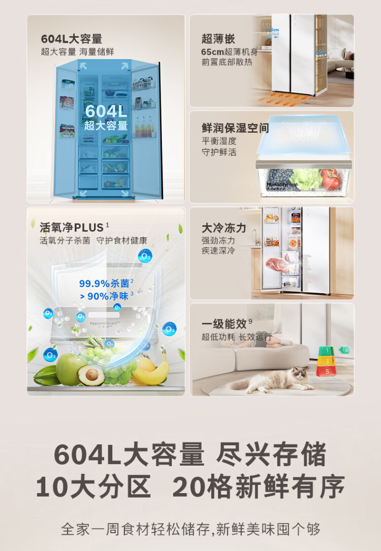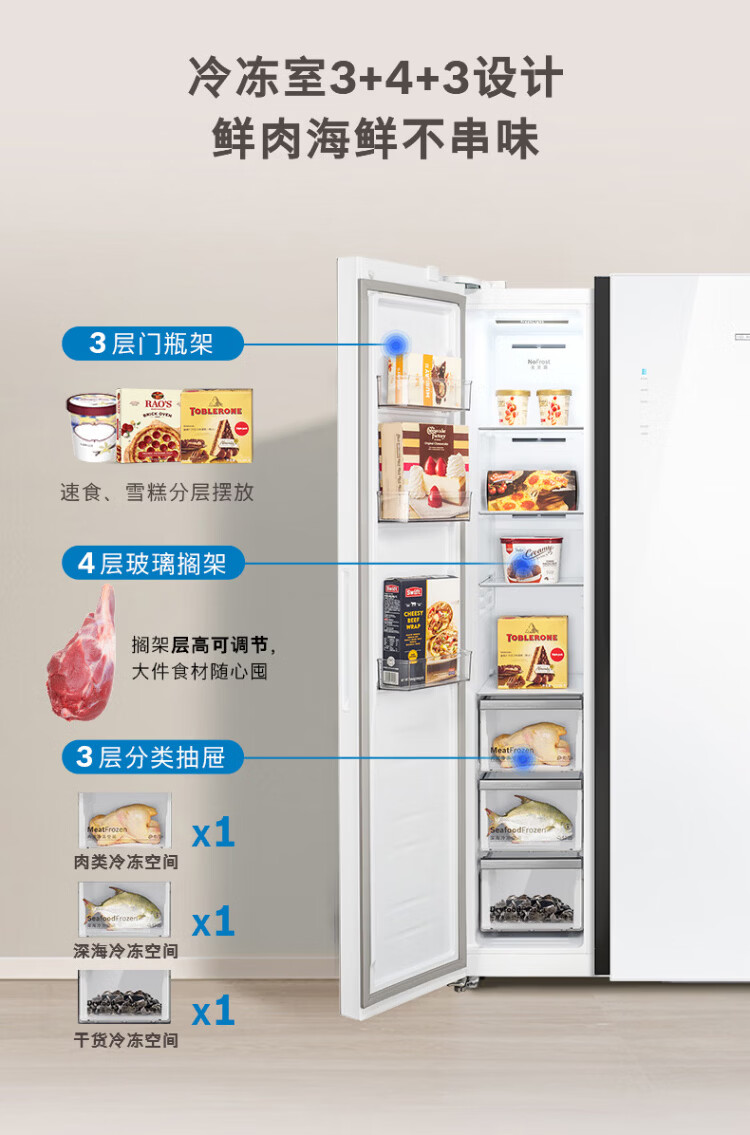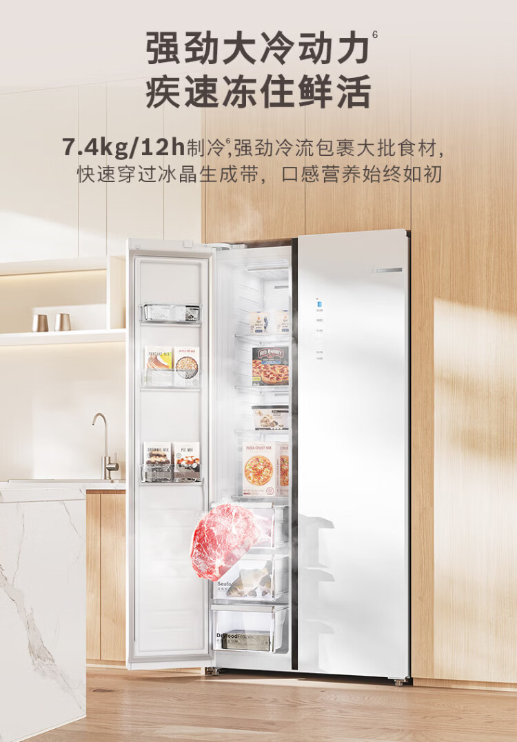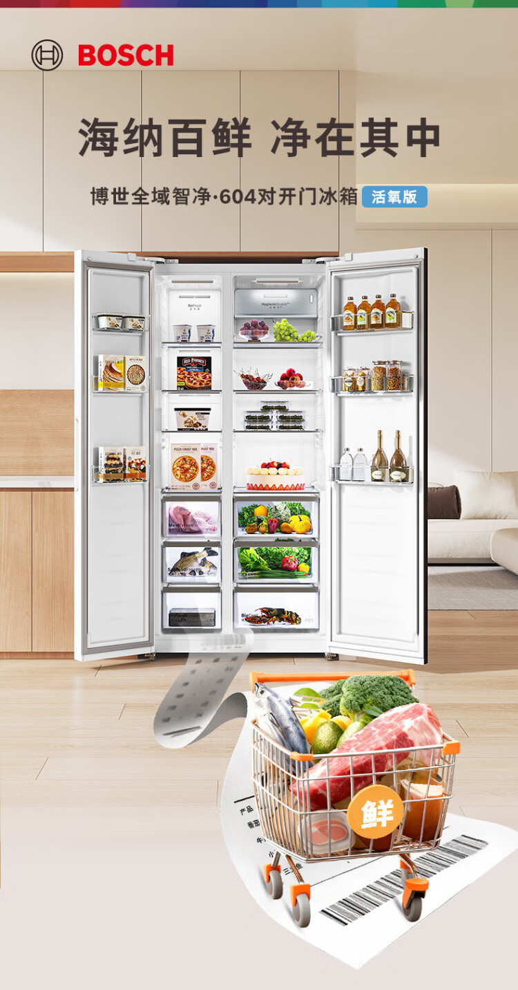 BOSCH refrigerator blockbuster new product household 604L large capacity double door frequency conversion active oxygen sterilization and odor purification ultra-thin embedded fresh and moisturizing space separate storage without odor KAC98EA20C