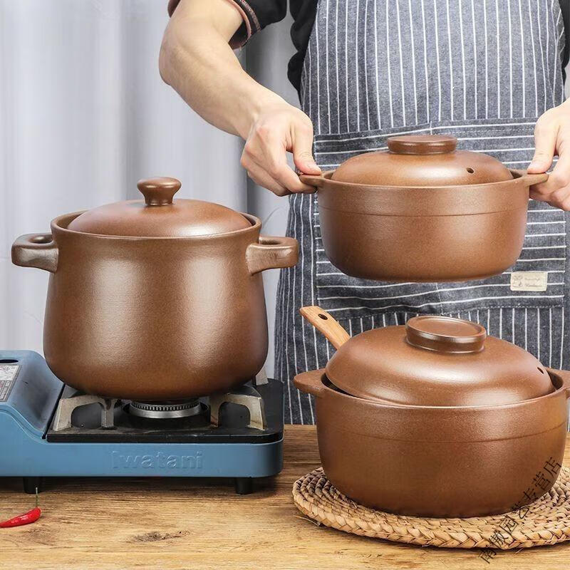 Runhua Nianping unglazed old-fashioned earthen clay pot stew pot ceramic soup household open flame gas high temperature resistant stew pot casserole pot liter (6-8 people) 6.2L