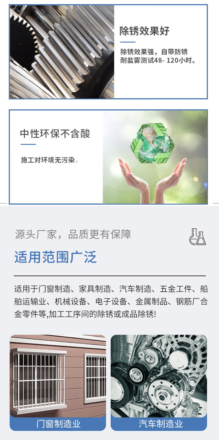 Industrial neutral rust remover universal construction site steel steel cast iron carbon steel rust removal agent rust removal and rust neutral rust removal and anti-rust agent neutral rust removal and anti-rust agent