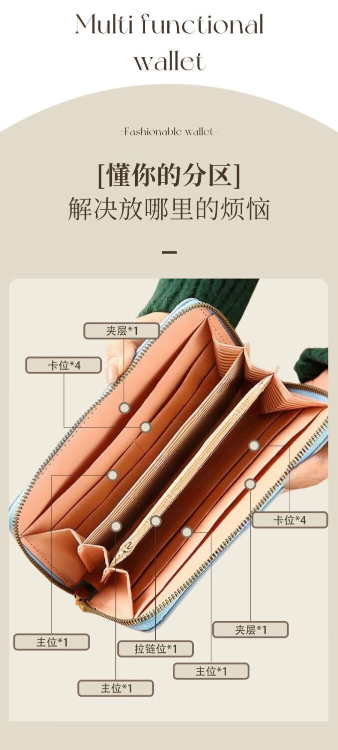 Ye Yu 25 New Hand Wallet Women's Long Zipper Multifunctional Versatile Wallet Large Capacity Mobile Phone Wallet Women's Wallet 001 Brown