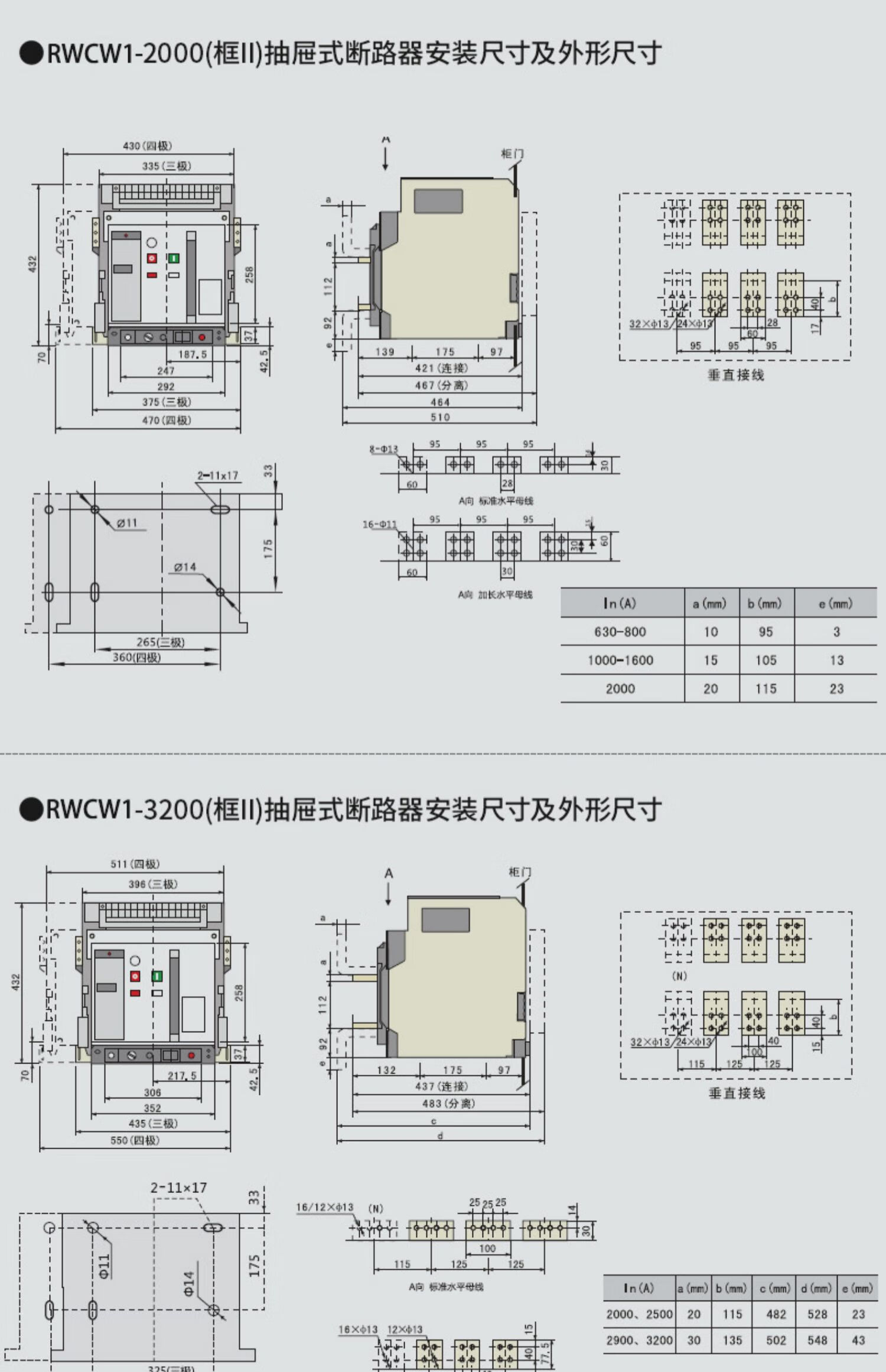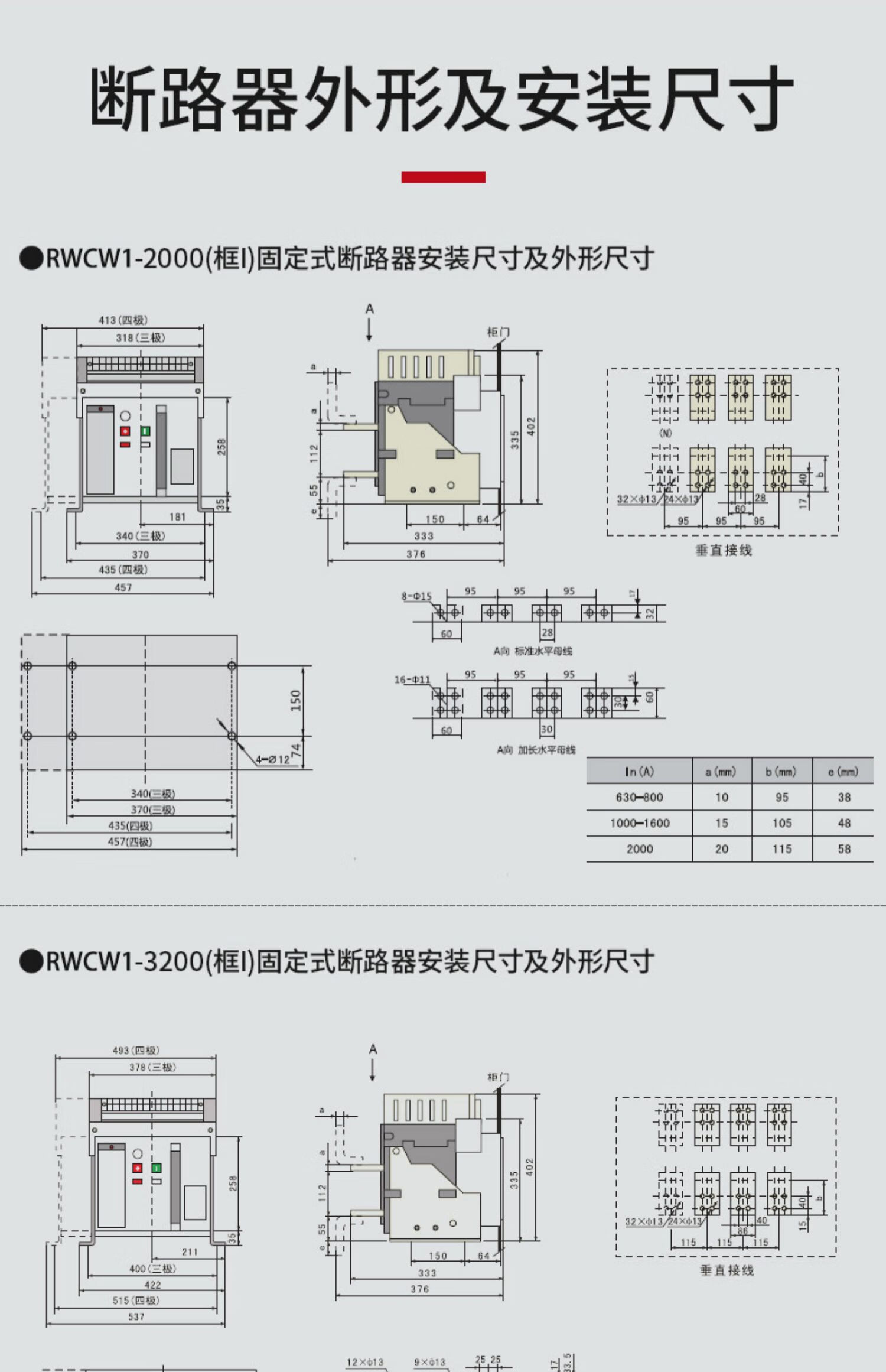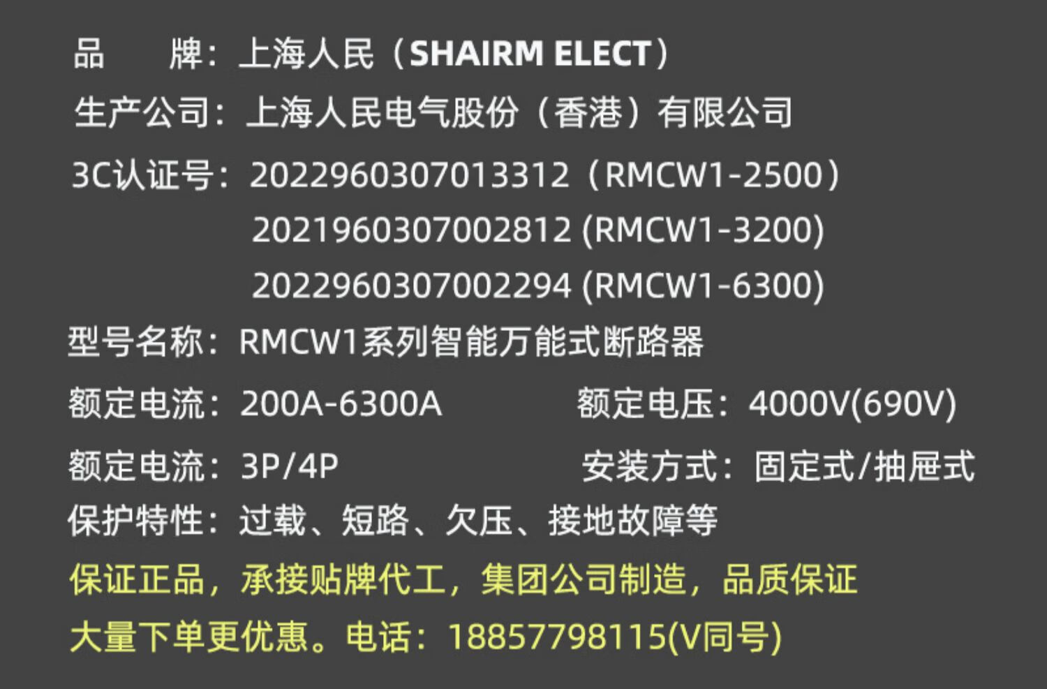 Shanghai People's RMCW1-2000 frame circuit breaker 1600a 3200A switch 1000A 630A fixed 3P 1600A