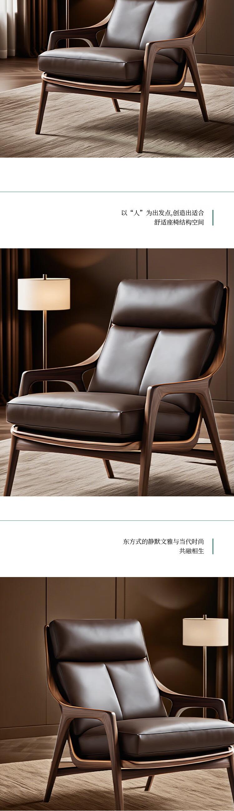 Zemujia designer living room balcony sofa chair leisure sofa chair single chair simple solid wood sofa chair customization North American black walnut + high quality ultra-thousand leather