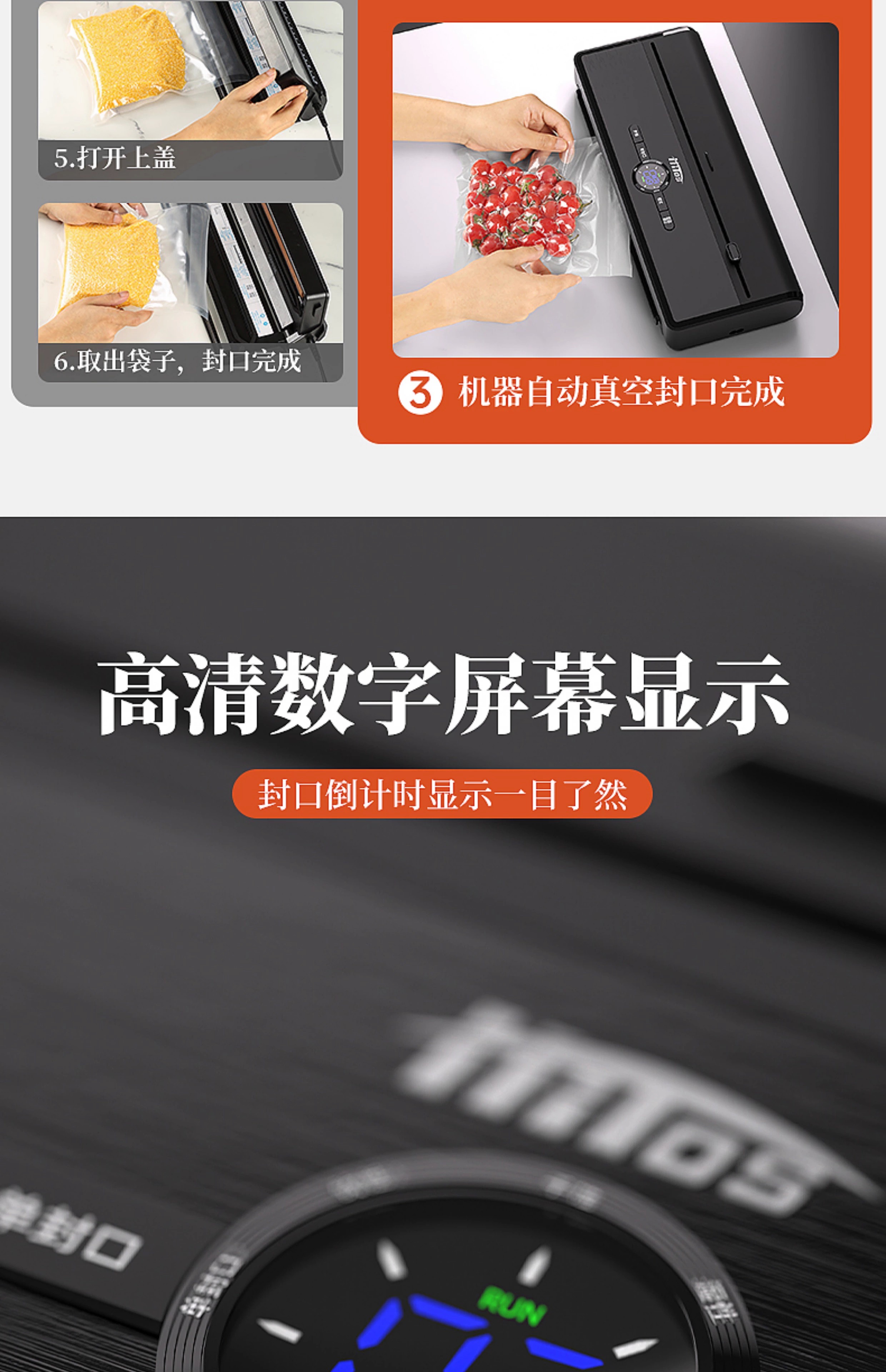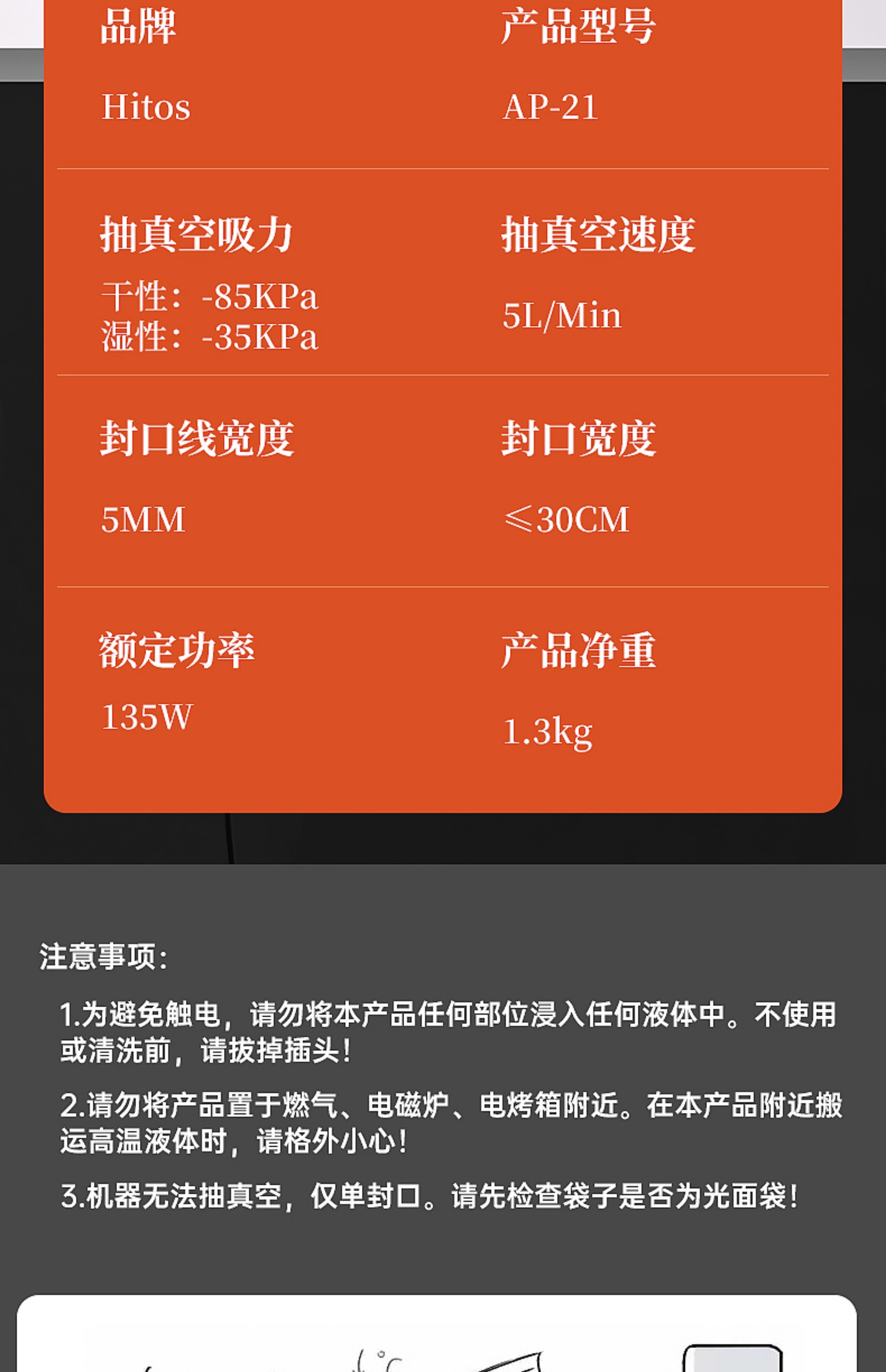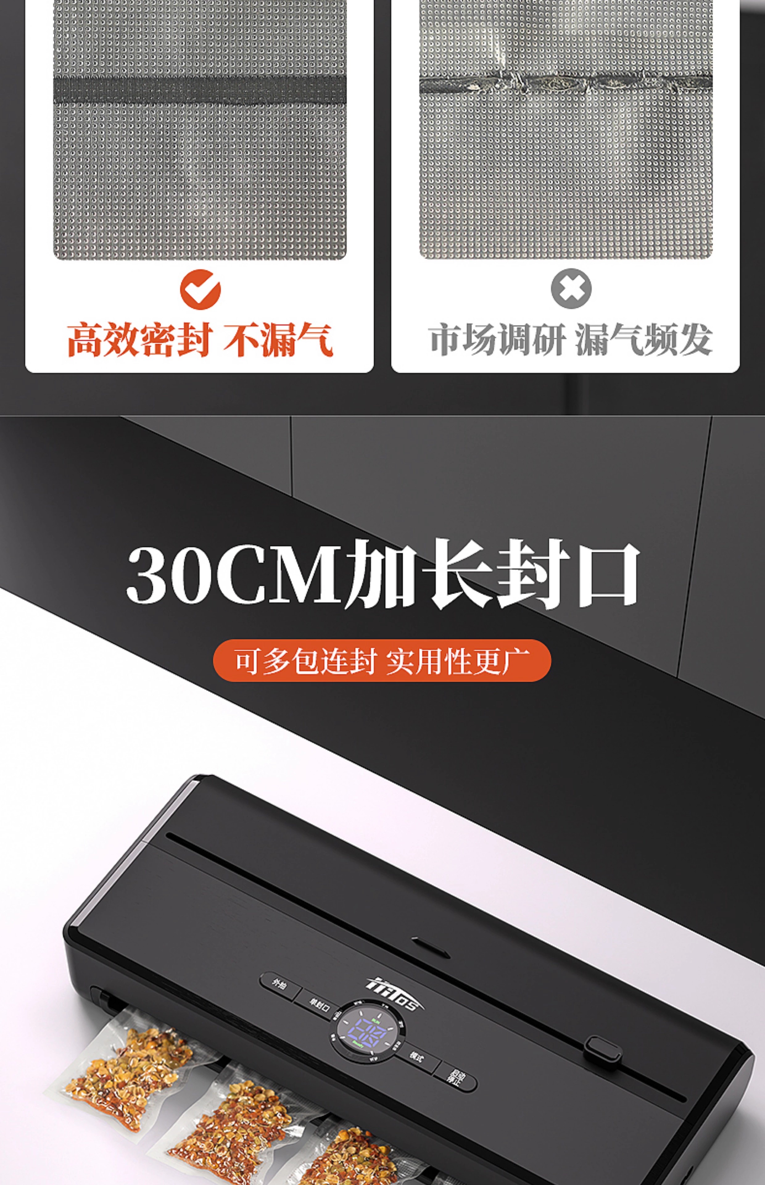 HITOS German quality fully automatic vacuum sealing machine small household commercial large suction bacon sausage vacuum fully automatic pressure-free dual pump + 1 roll + 100 vacuums