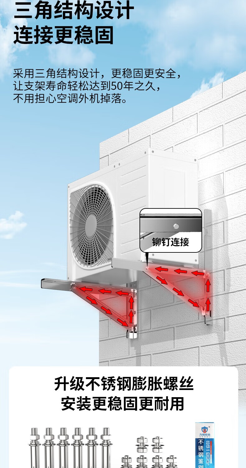 Mei Kung Fu air conditioner bracket thickened stainless steel air conditioner outdoor unit bracket air conditioner hanger reinforced air conditioner outdoor shelf suitable for Midea Gree Haier Oaks and other 1-1.5P air conditioner bracket 1-1.5P upgraded thickened stainless steel