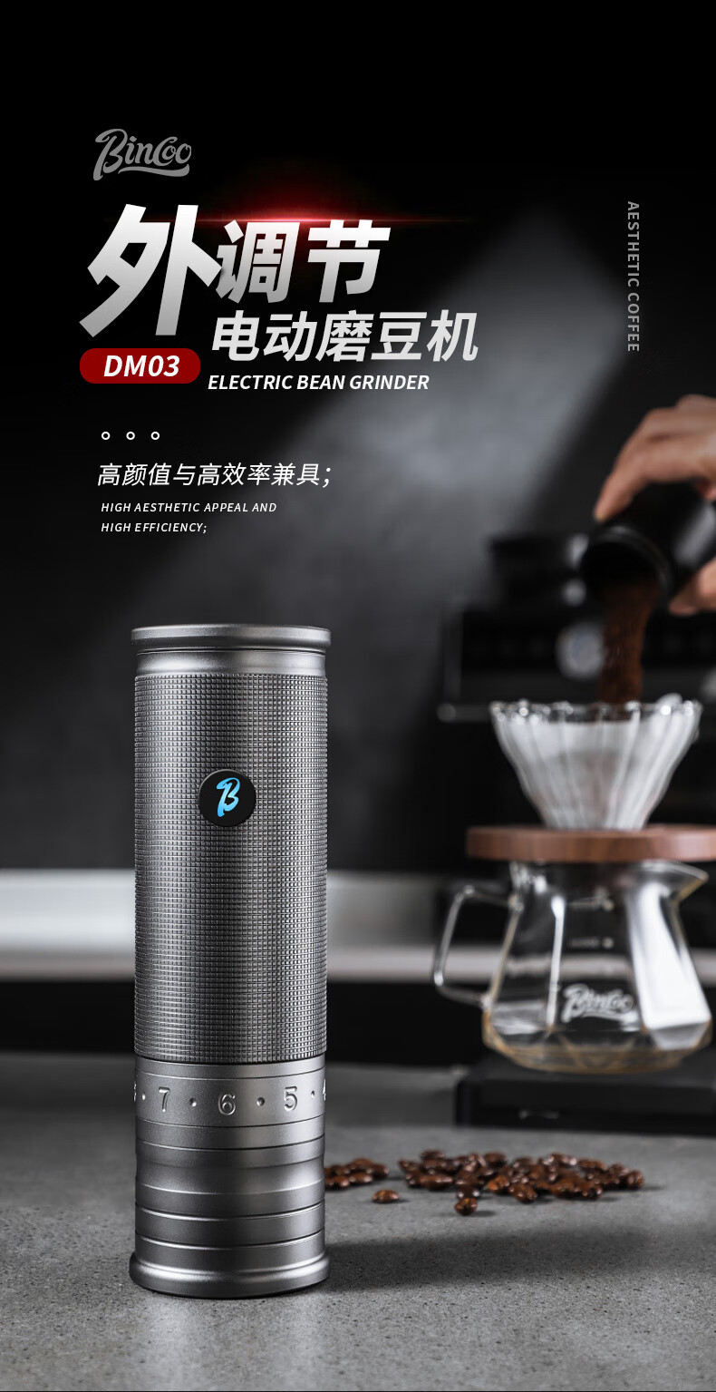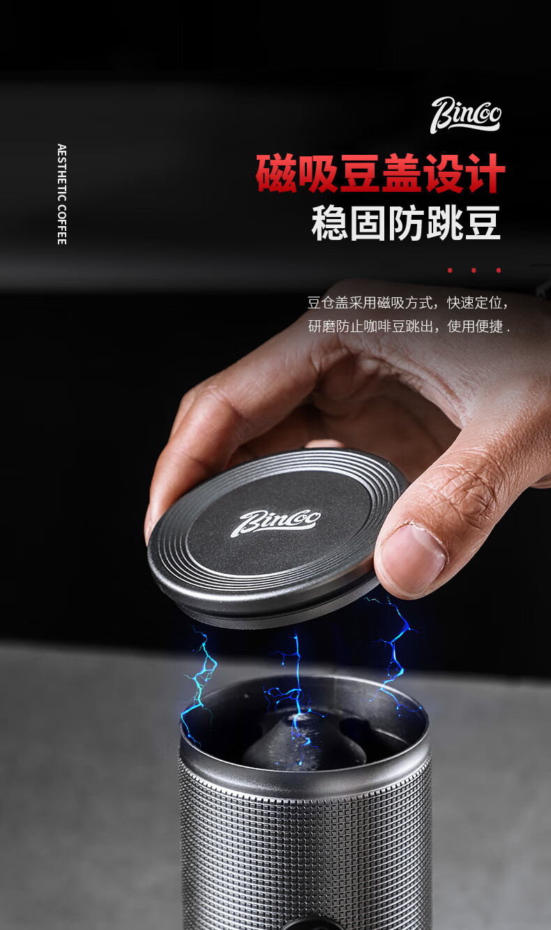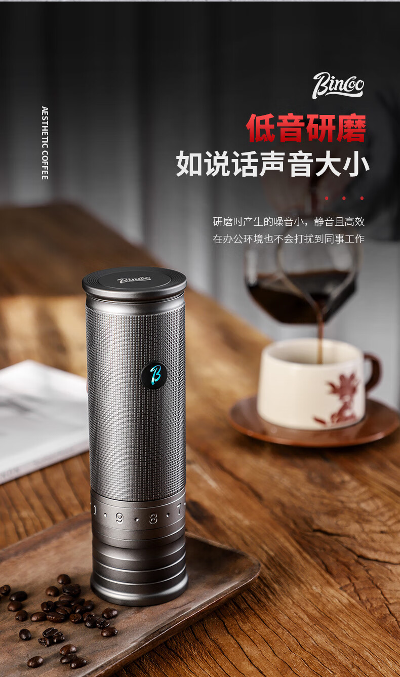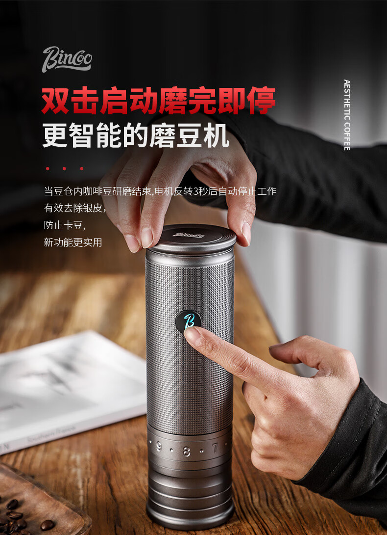 Bincoo electric bean grinder steel core portable coffee bean grinder small household external Italian grinder Starlight Silver