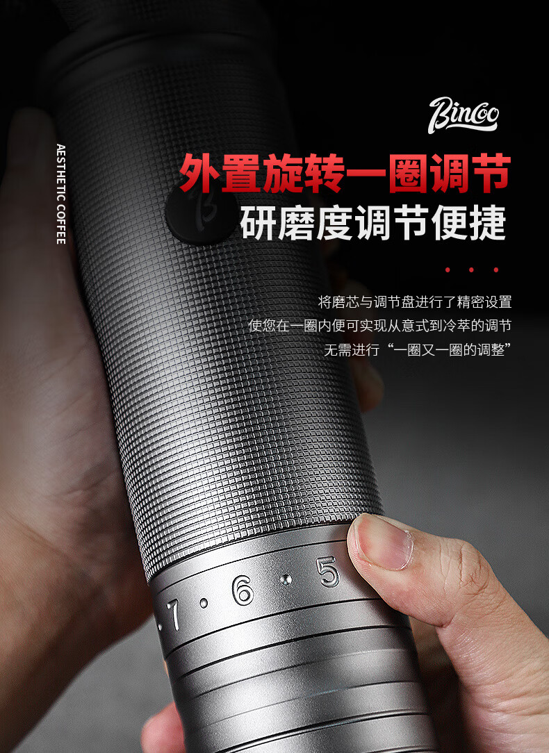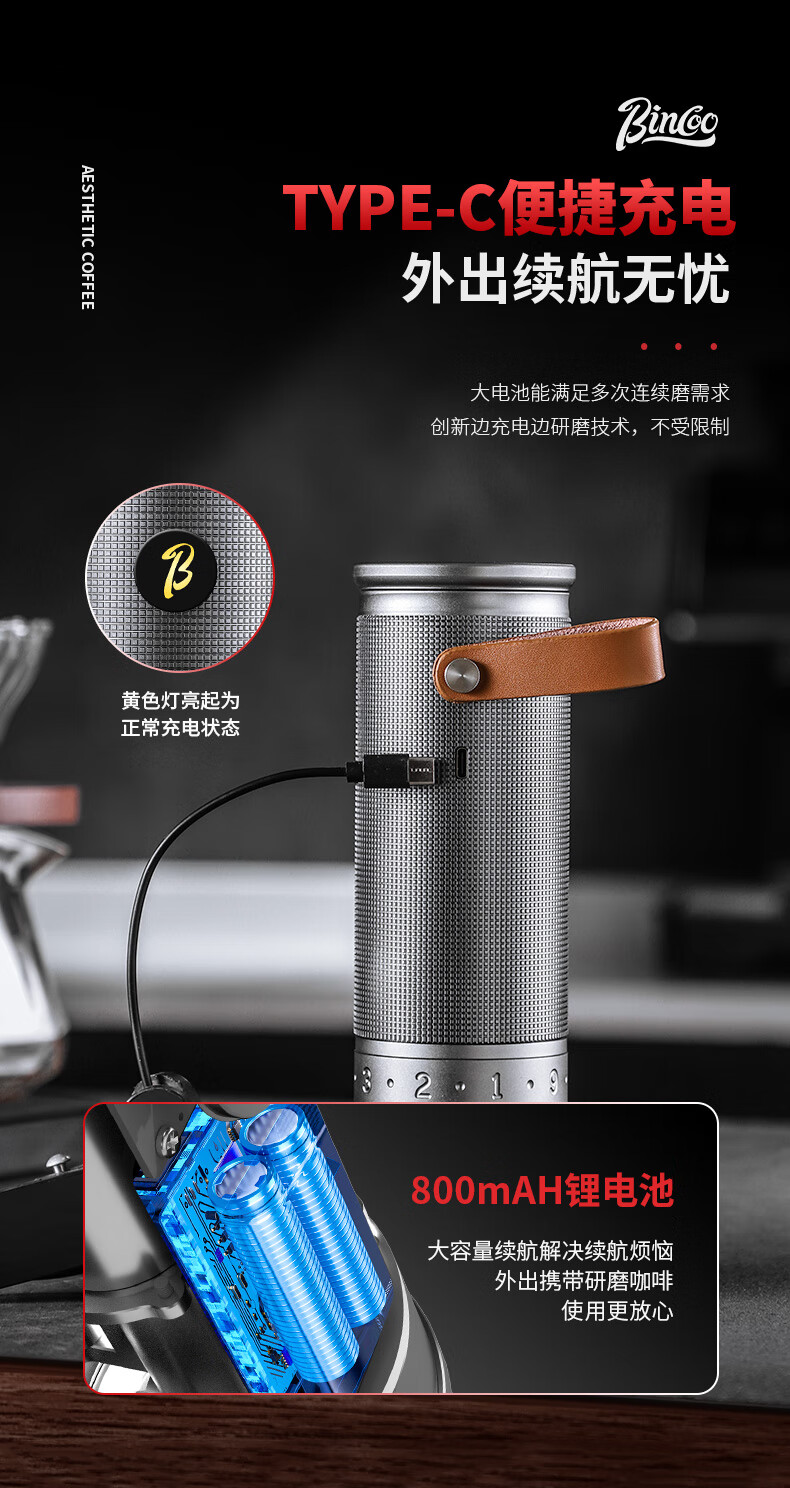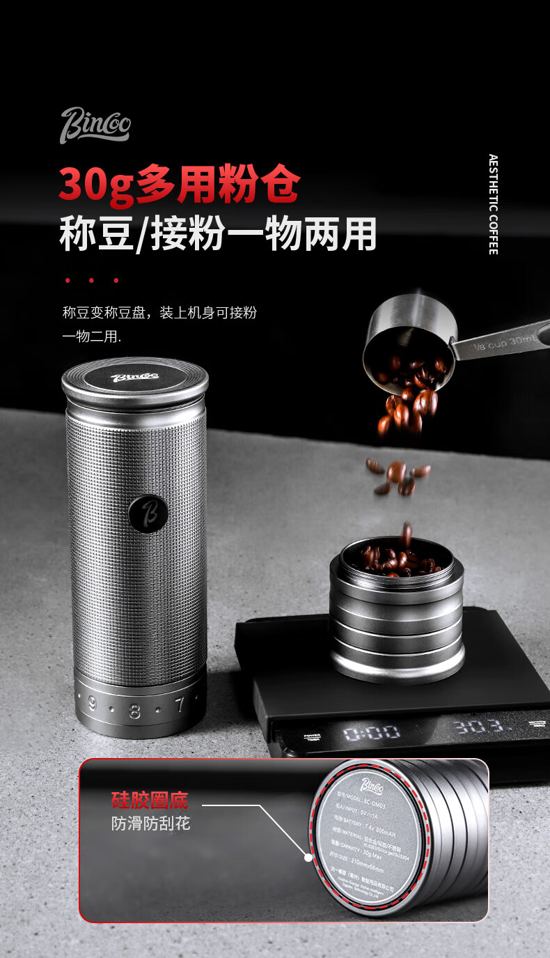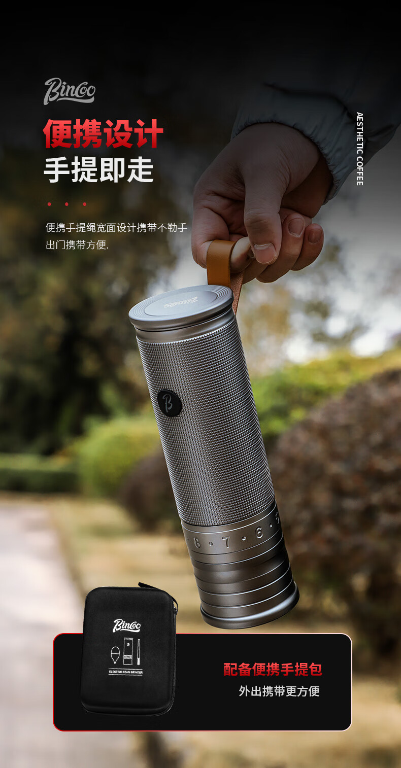 Bincoo electric bean grinder steel core portable coffee bean grinder small household external Italian grinder Starlight Silver