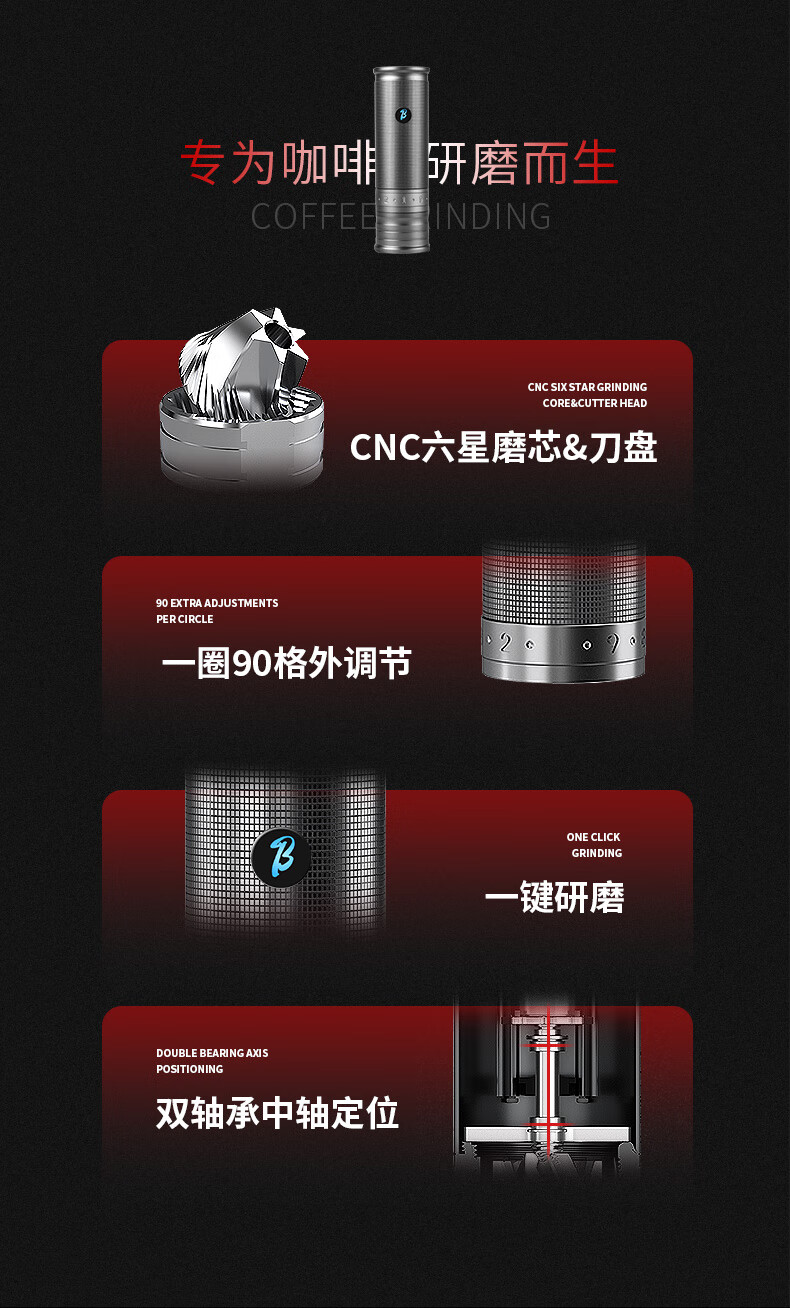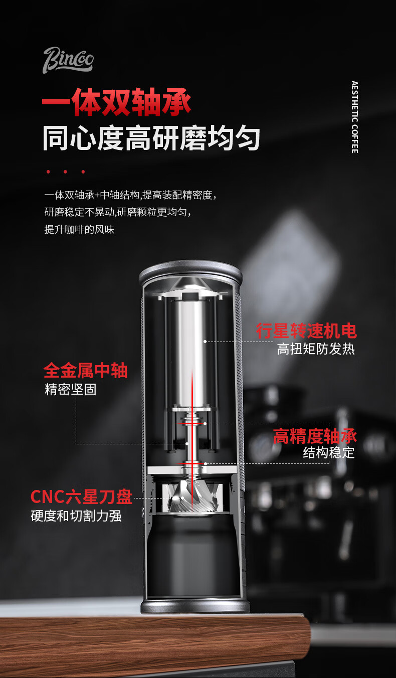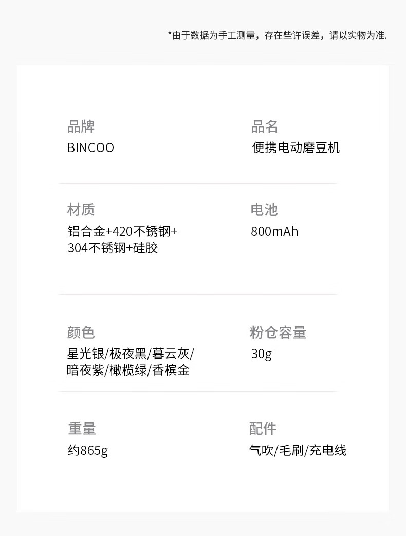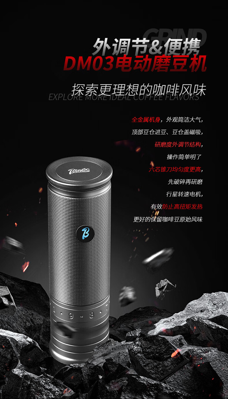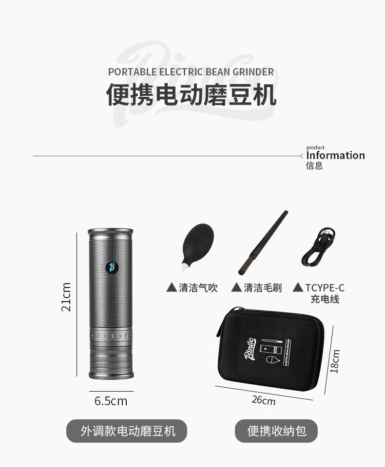 Bincoo electric bean grinder steel core portable coffee bean grinder small household external Italian grinder Starlight Silver
