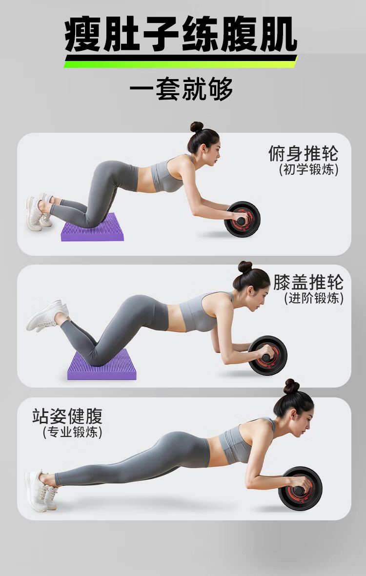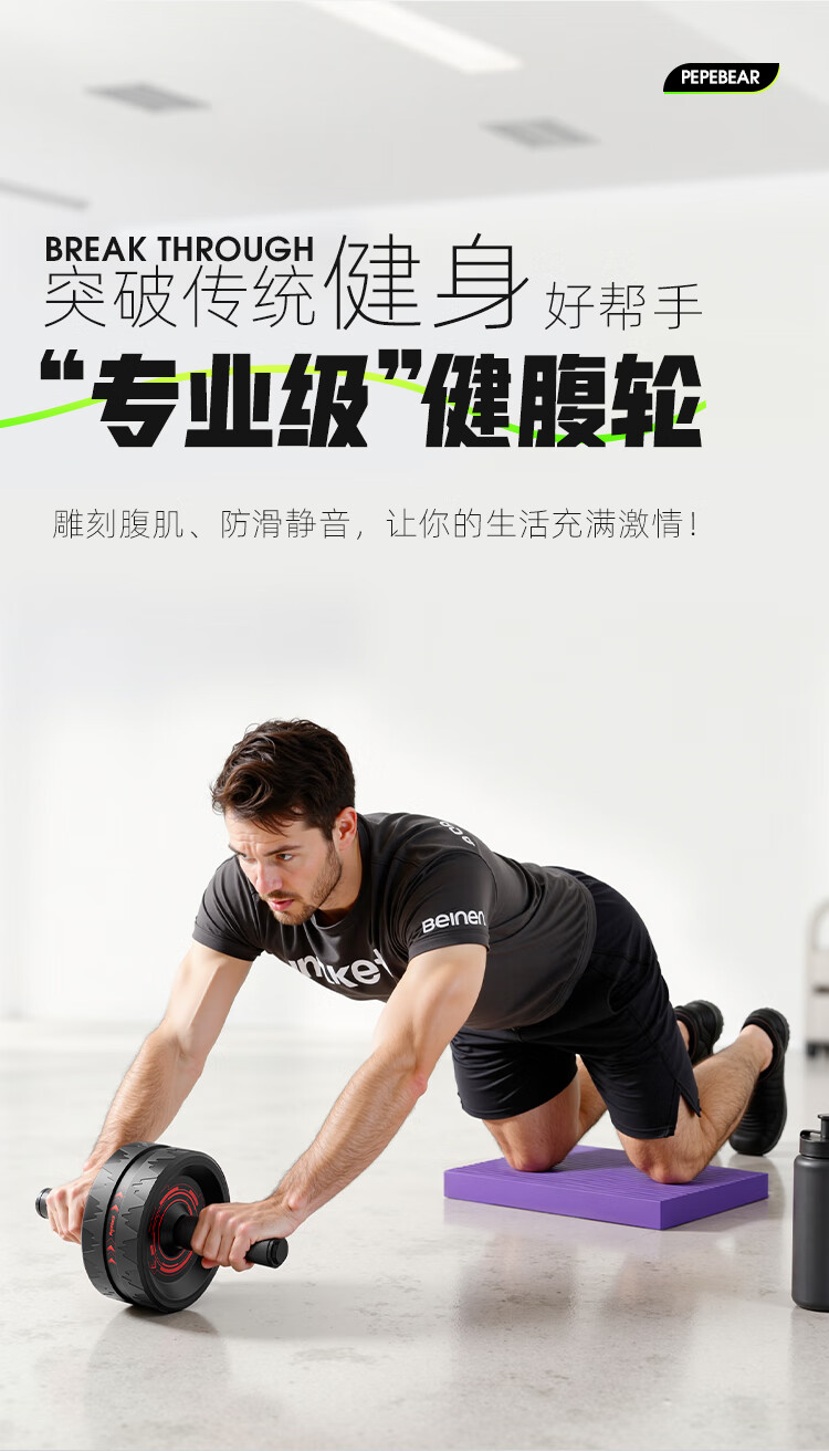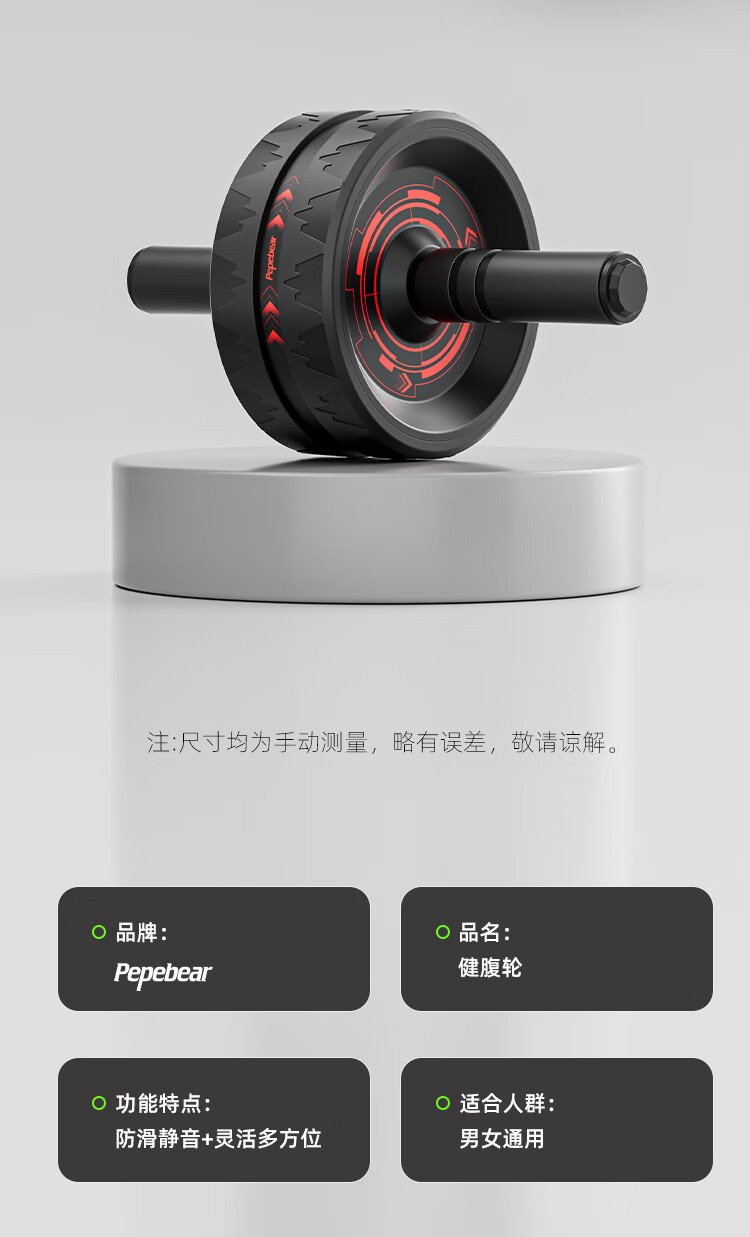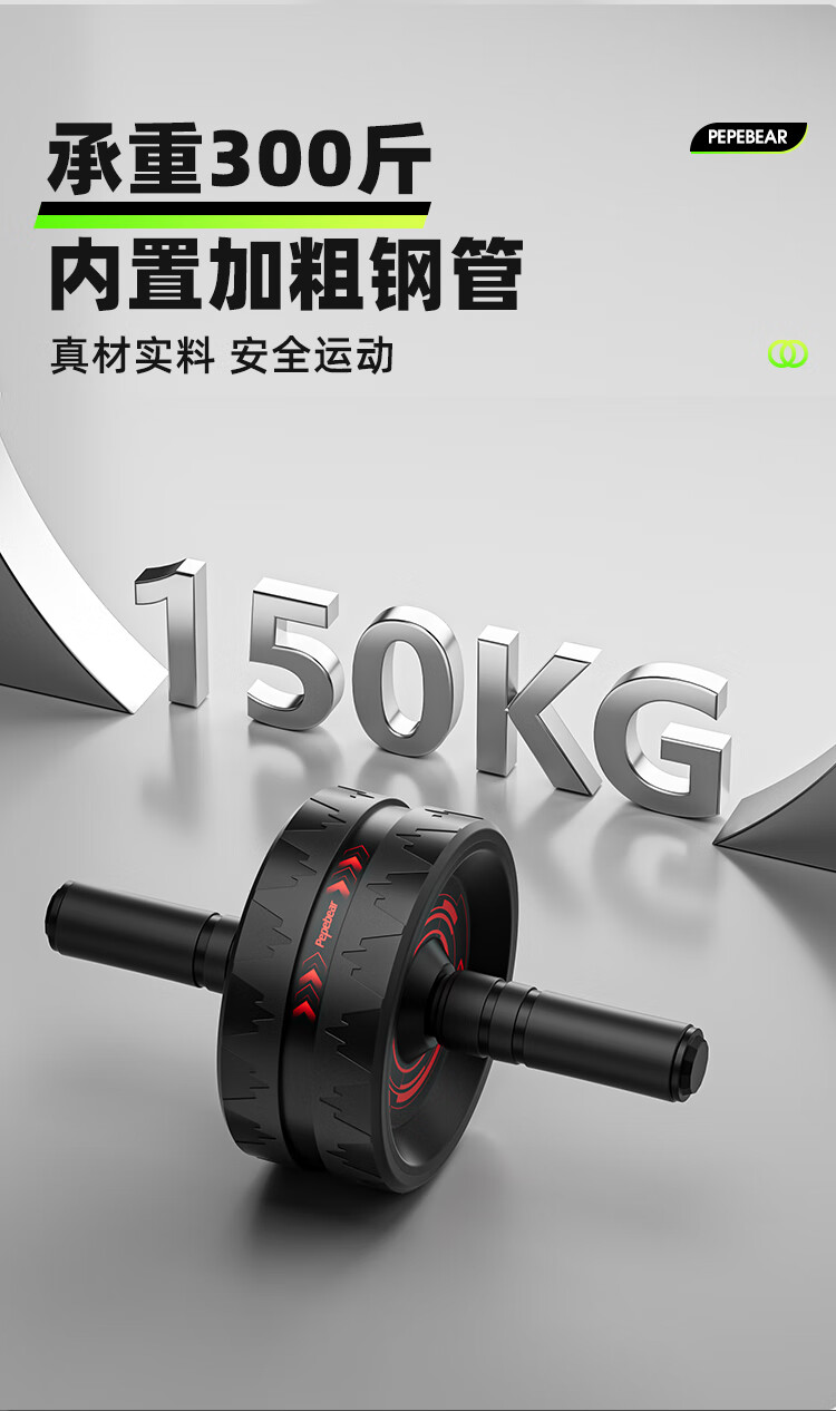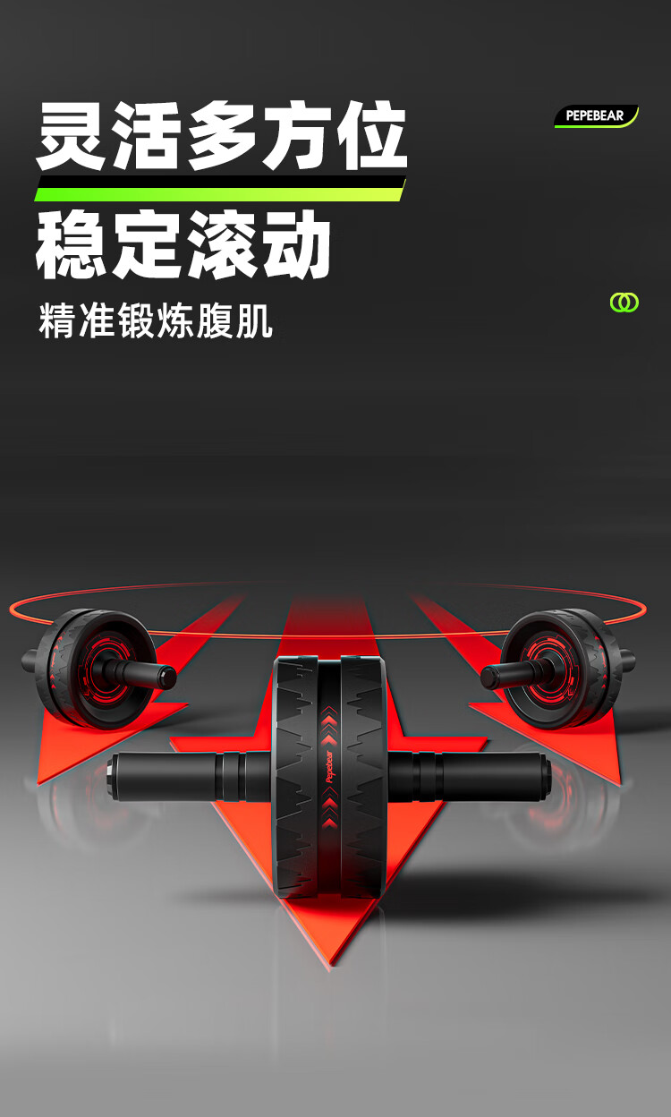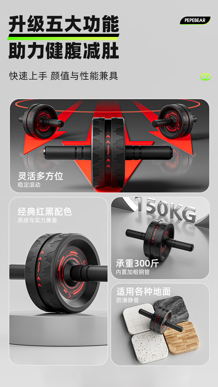 PEPEBEAR Abdominal Wheel Fitness Equipment Home Men and Women Abdominal Machine Exercise Abdominal Exercise Roller Abdominal Chest Muscle Training Professional Grade Abdominal Wheel Black and Red Model-Single Wheel丨Loading 300 Jin丨Free Kneeling Mat