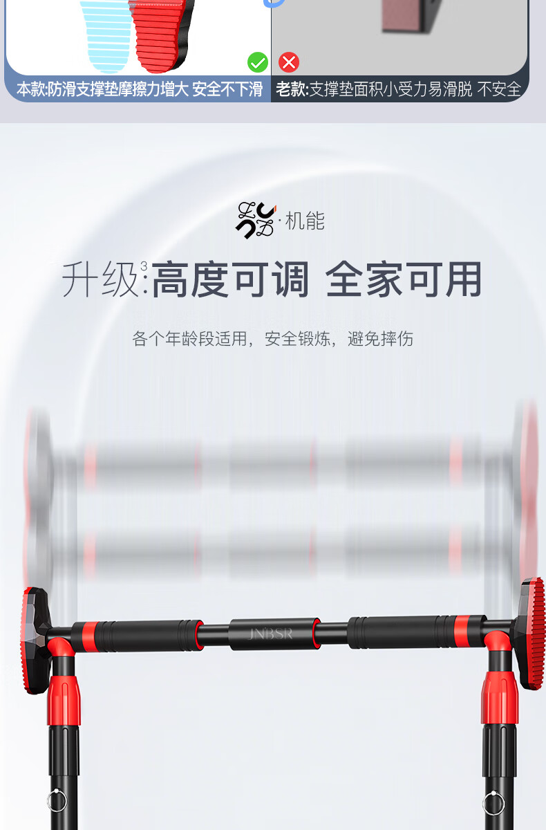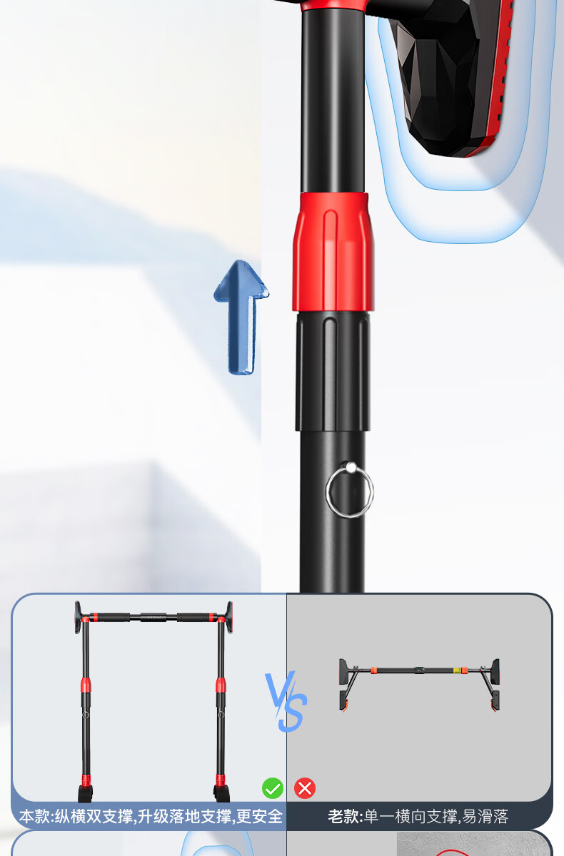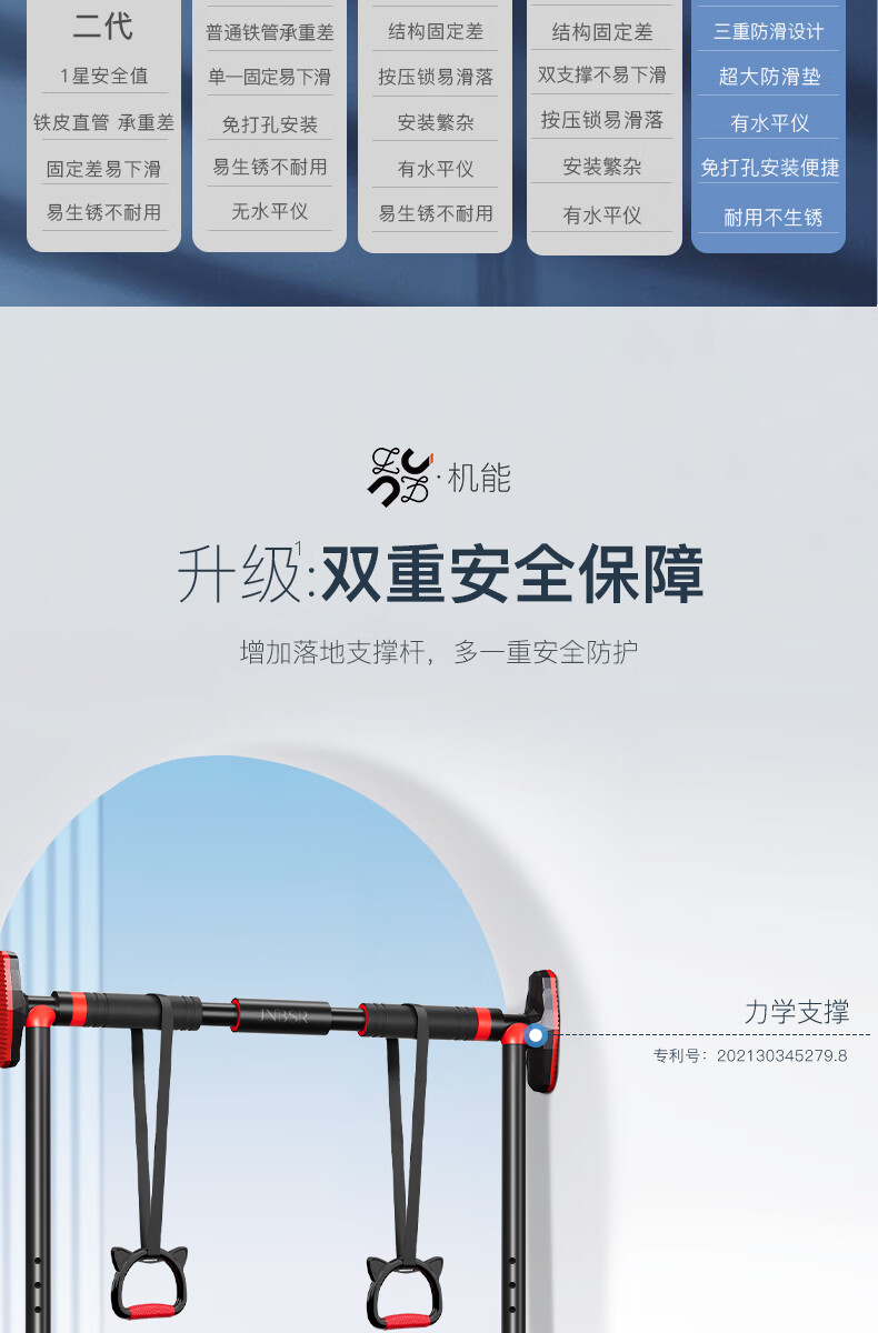 Functional horizontal bar for junior high school students and children, indoor household pull-up hanging bar, no need to punch holes in the wall, fixed on the floor, special horizontal bar for teenagers + hanging ring, adjustable 140cm-180cm