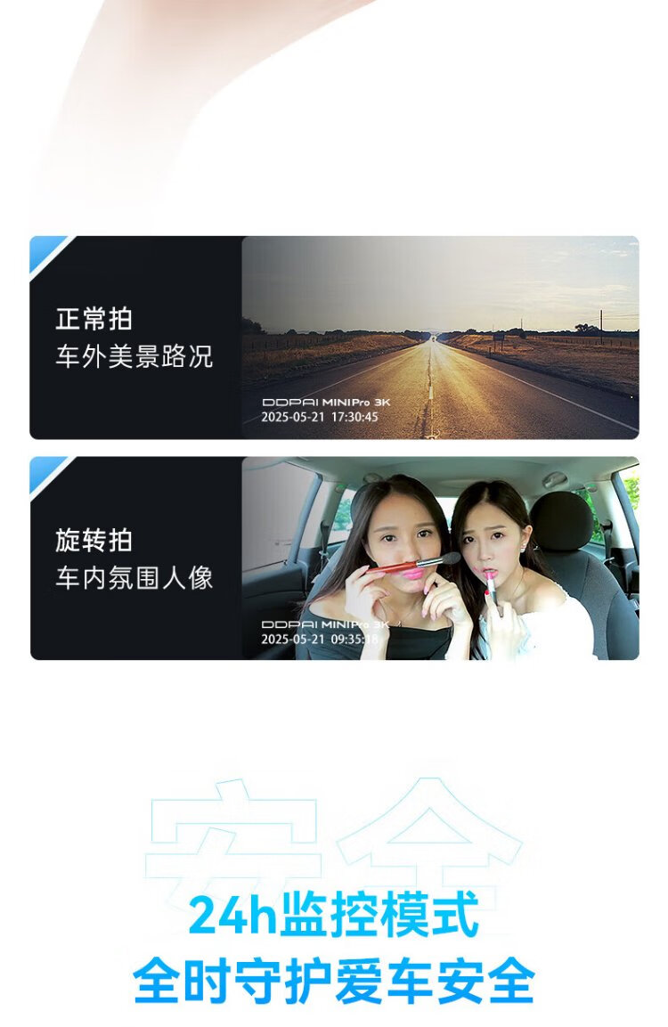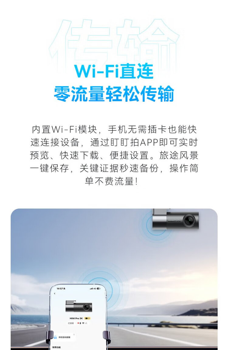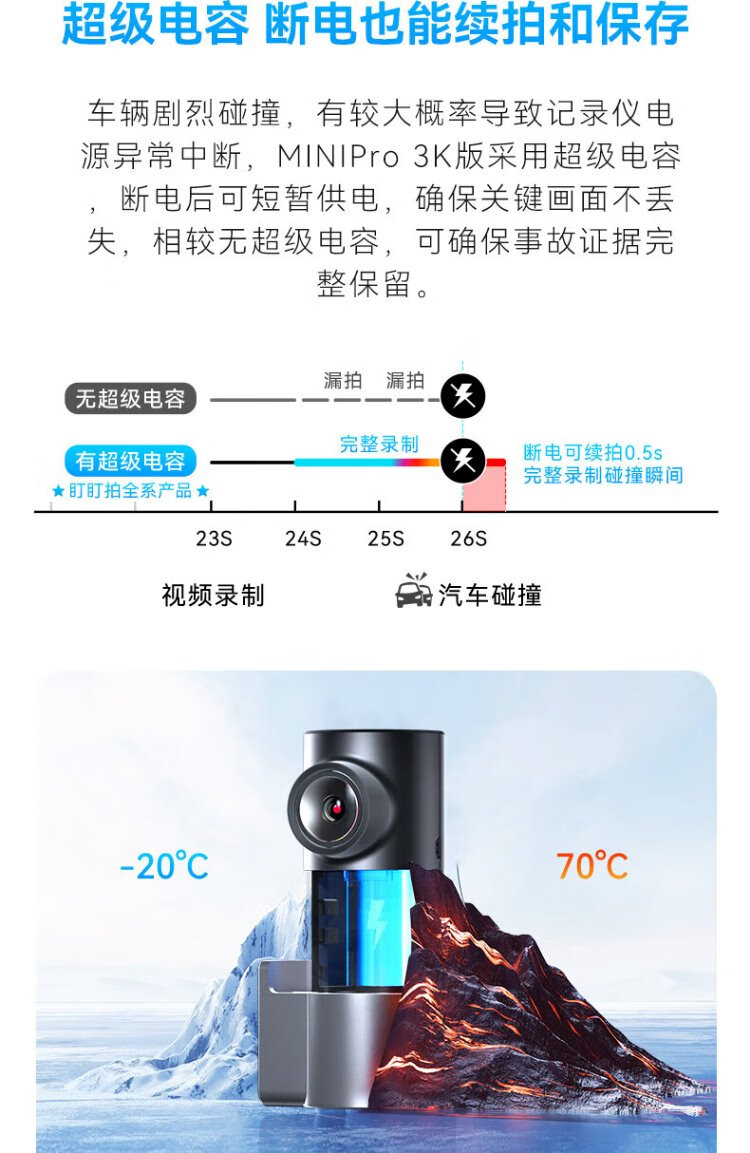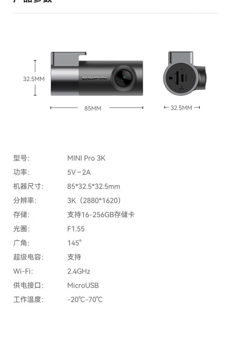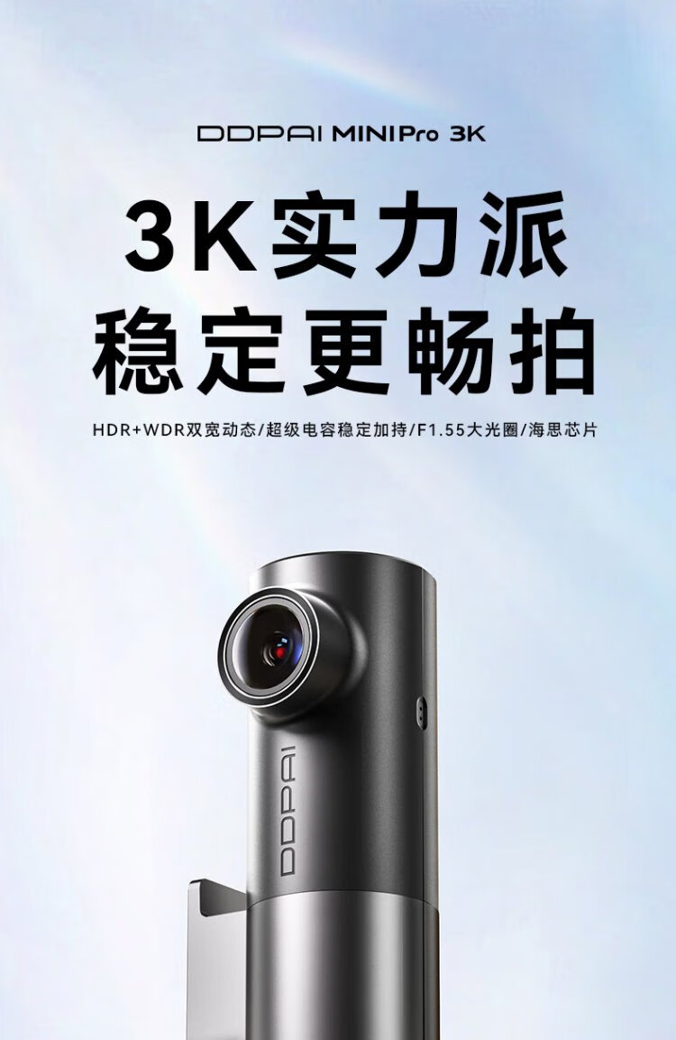 Dandaipai driving recorder MINI Pro 3K ultra-clear night vision, super capacitor, F1.55 aperture, 360-degree rotation, standard configuration (no card), USB power supply version