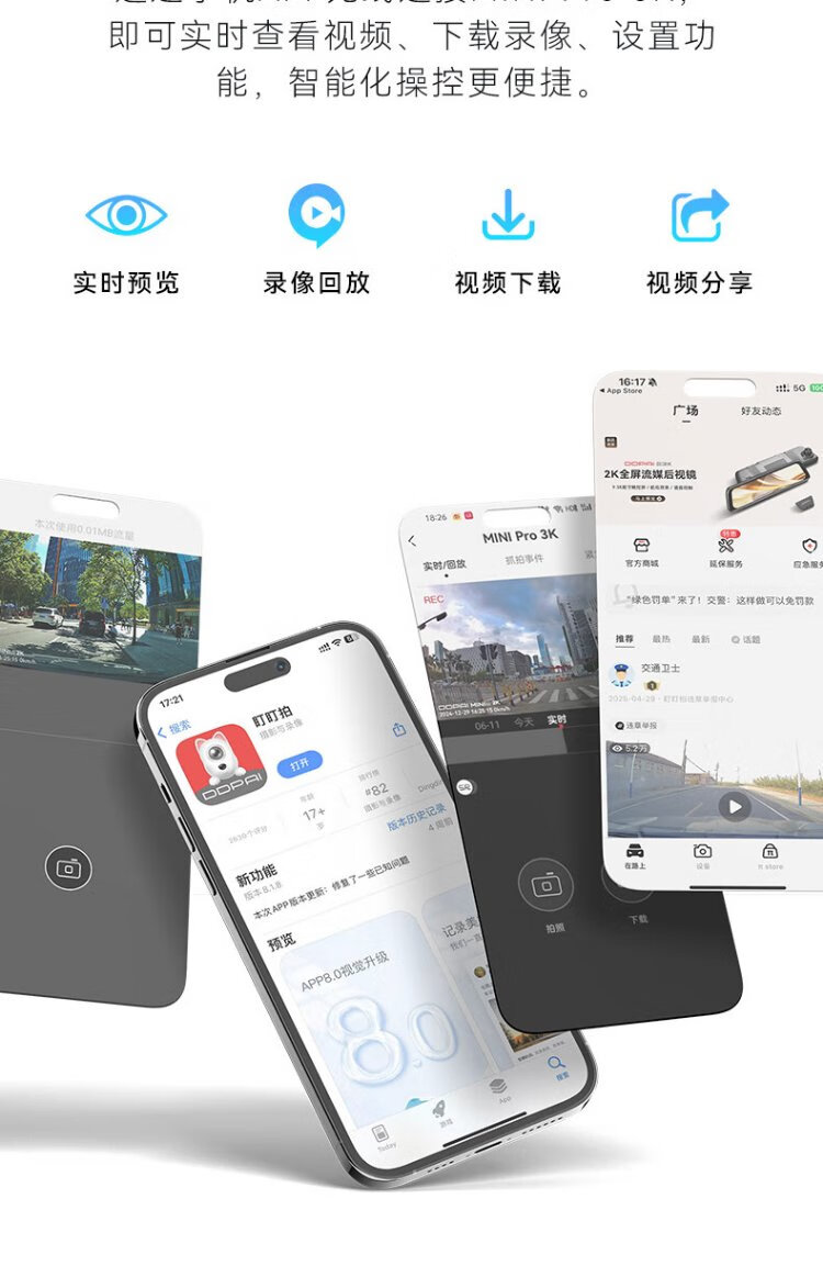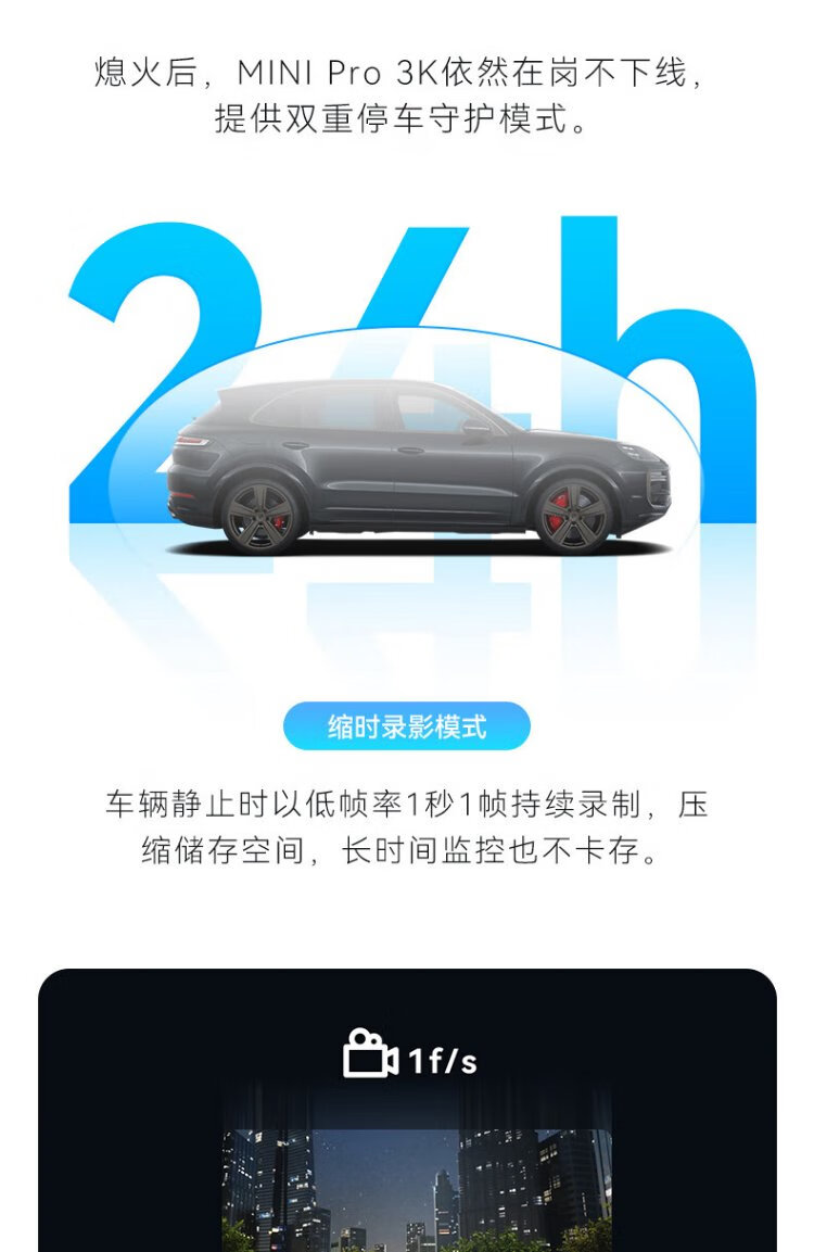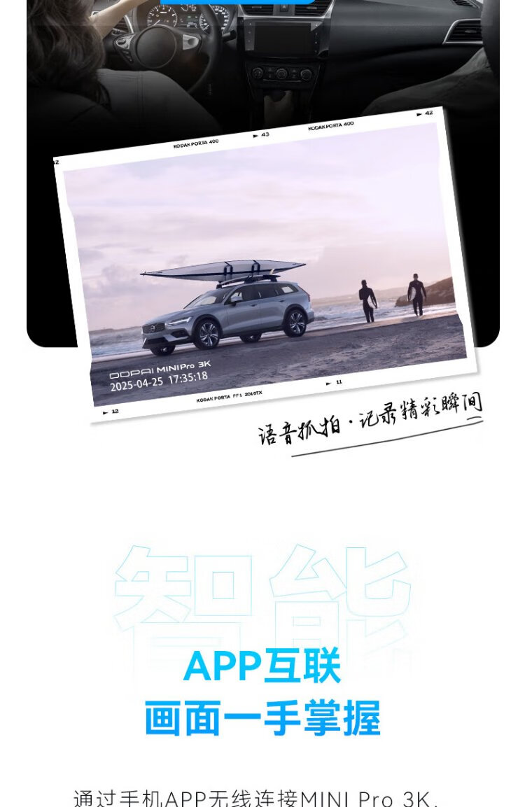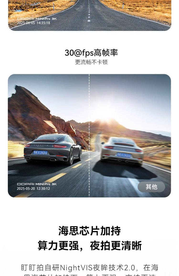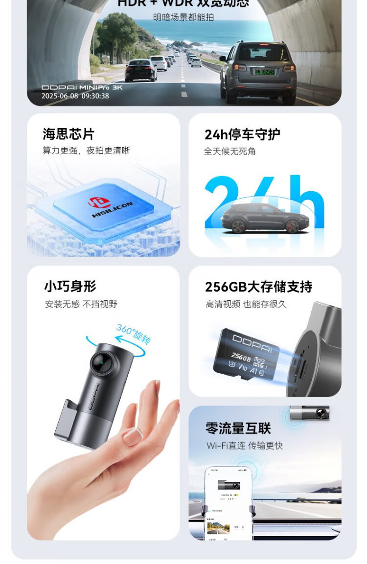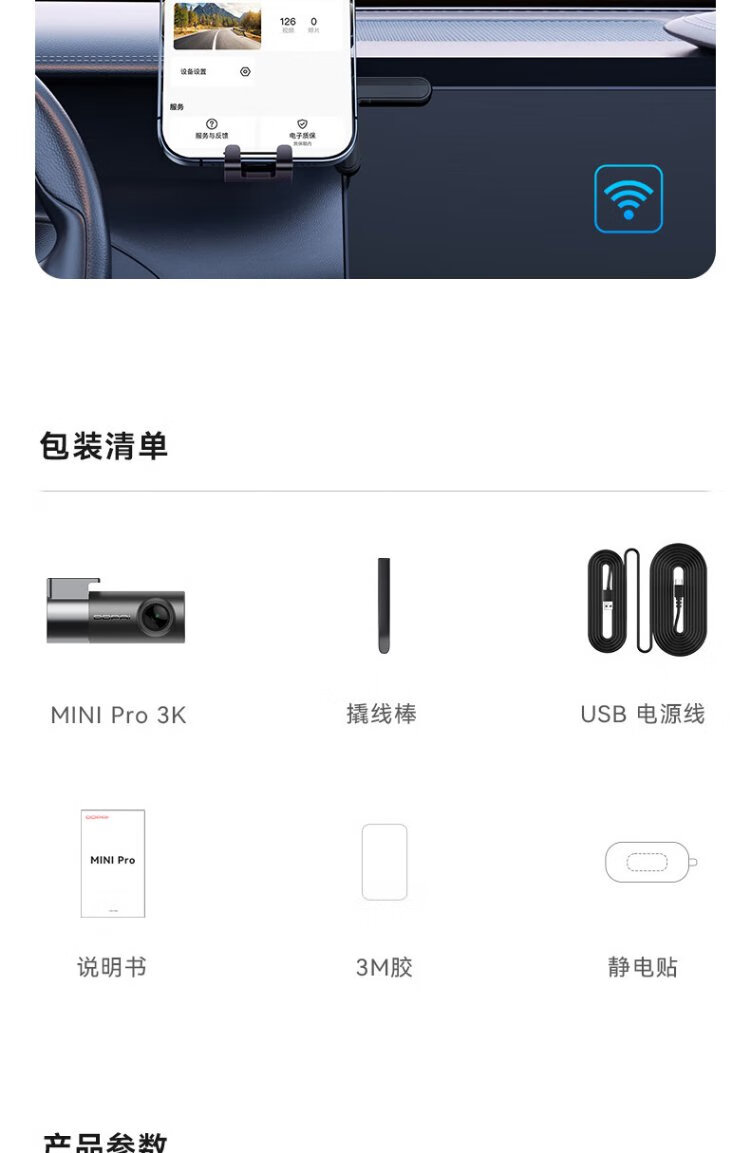Dandaipai driving recorder MINI Pro 3K ultra-clear night vision, super capacitor, F1.55 aperture, 360-degree rotation, standard configuration (no card), USB power supply version