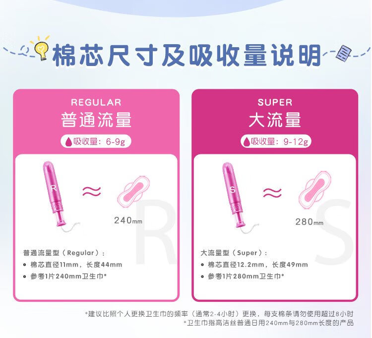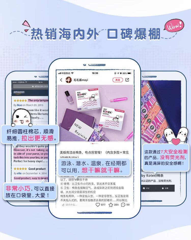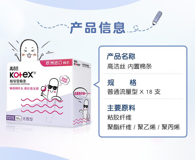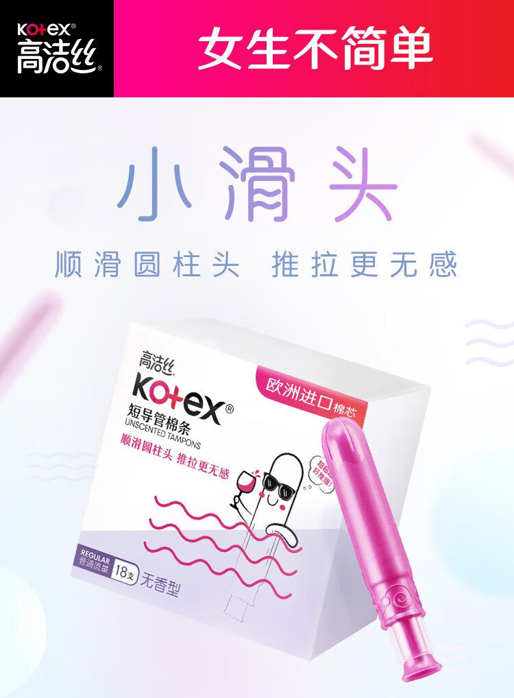 Kotex catheter-type tampons, imported cotton core, easy to use and smooth for novices, swimming sports sanitary napkins, normal flow rate, 18 pcs*6 boxes