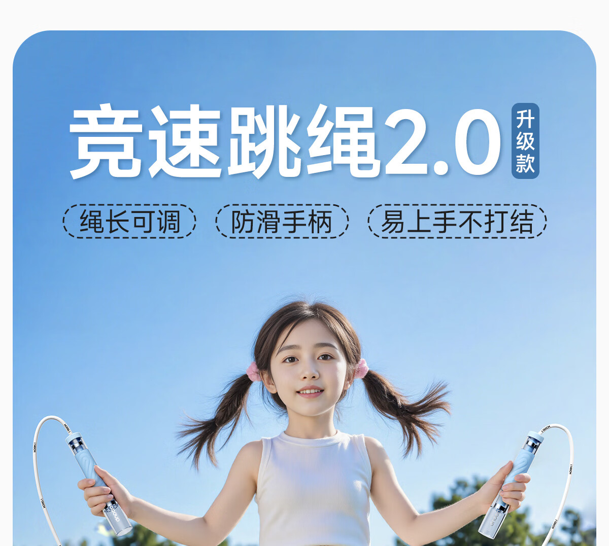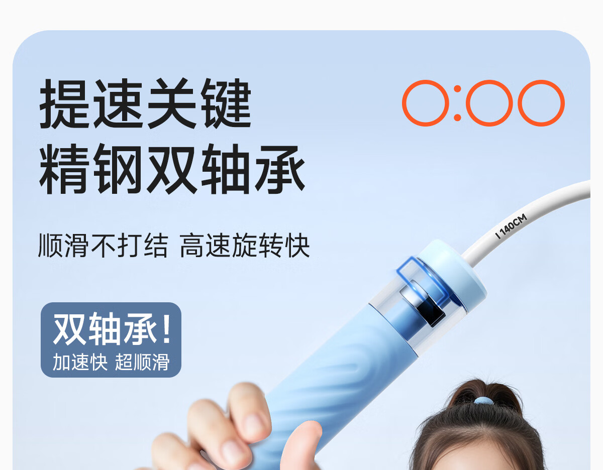 Sino-European racing double-bearing skipping rope for children and primary school students, non-knotted sports rope for junior high school students, Aurora Blue, extremely smooth double bearing, anti-slip rubber/segmented design, free storage bag