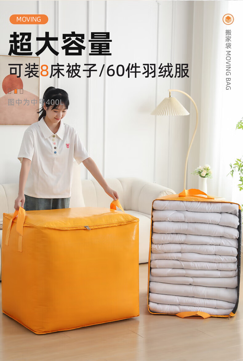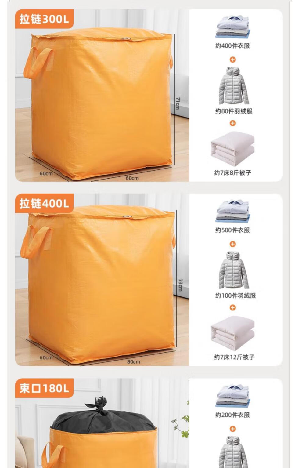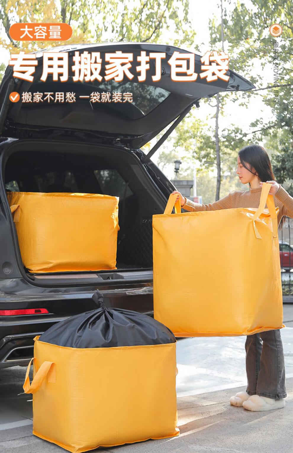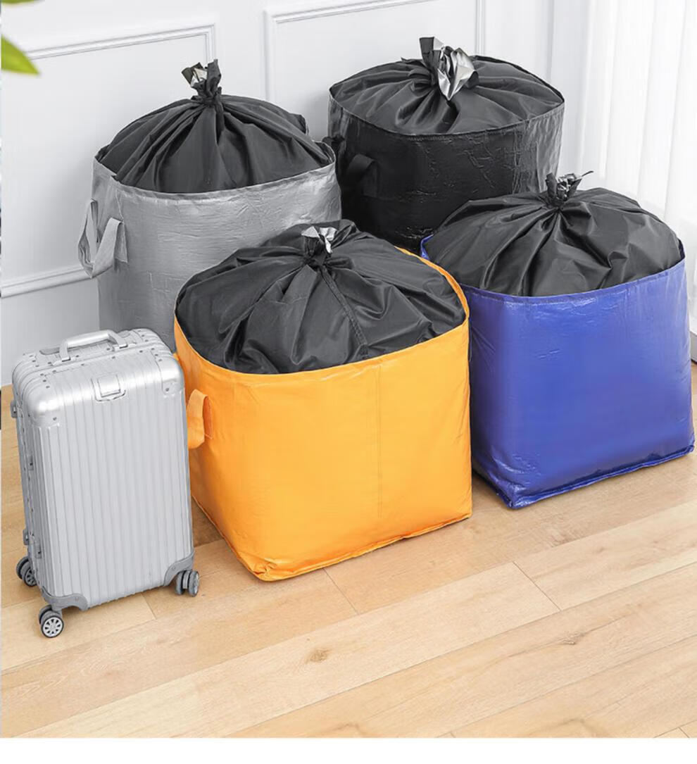 Large-capacity moving packing bag artifact storage bag organizing box carton woven snakeskin luggage express sorting yellow-medium 180L zipper style-damage compensation included
