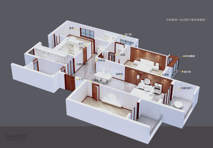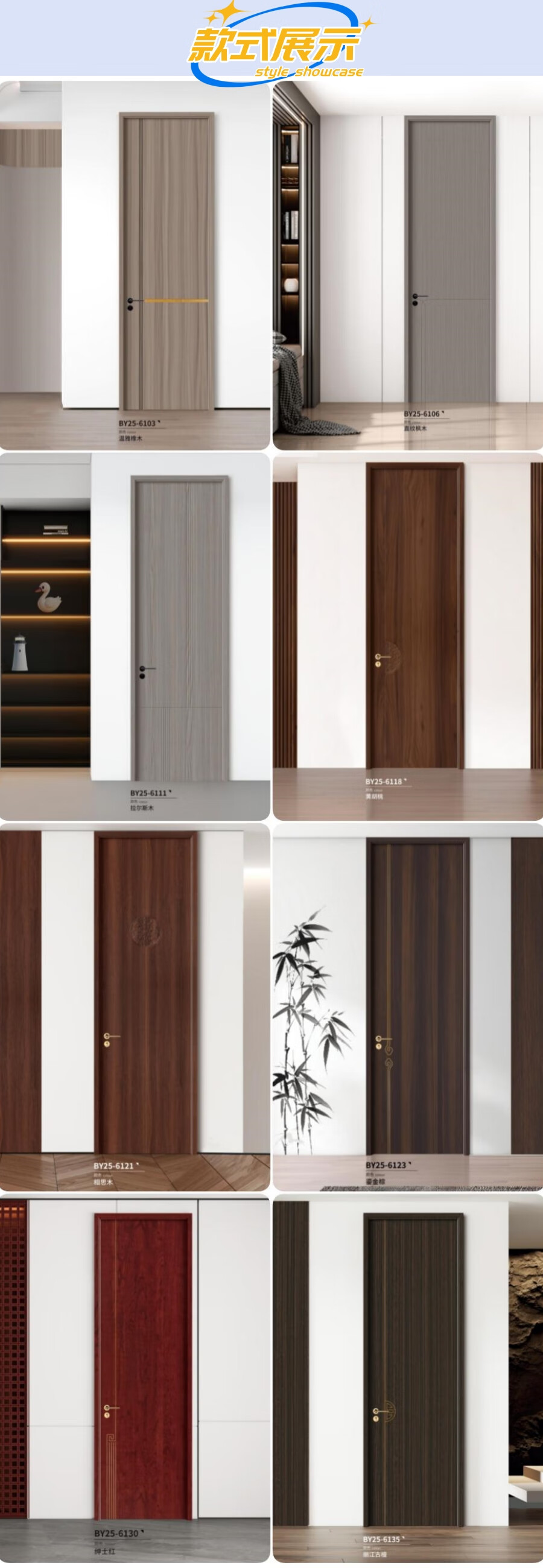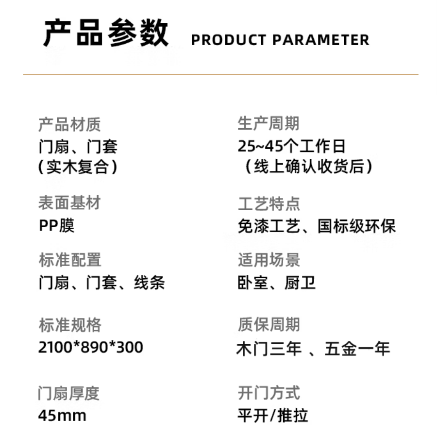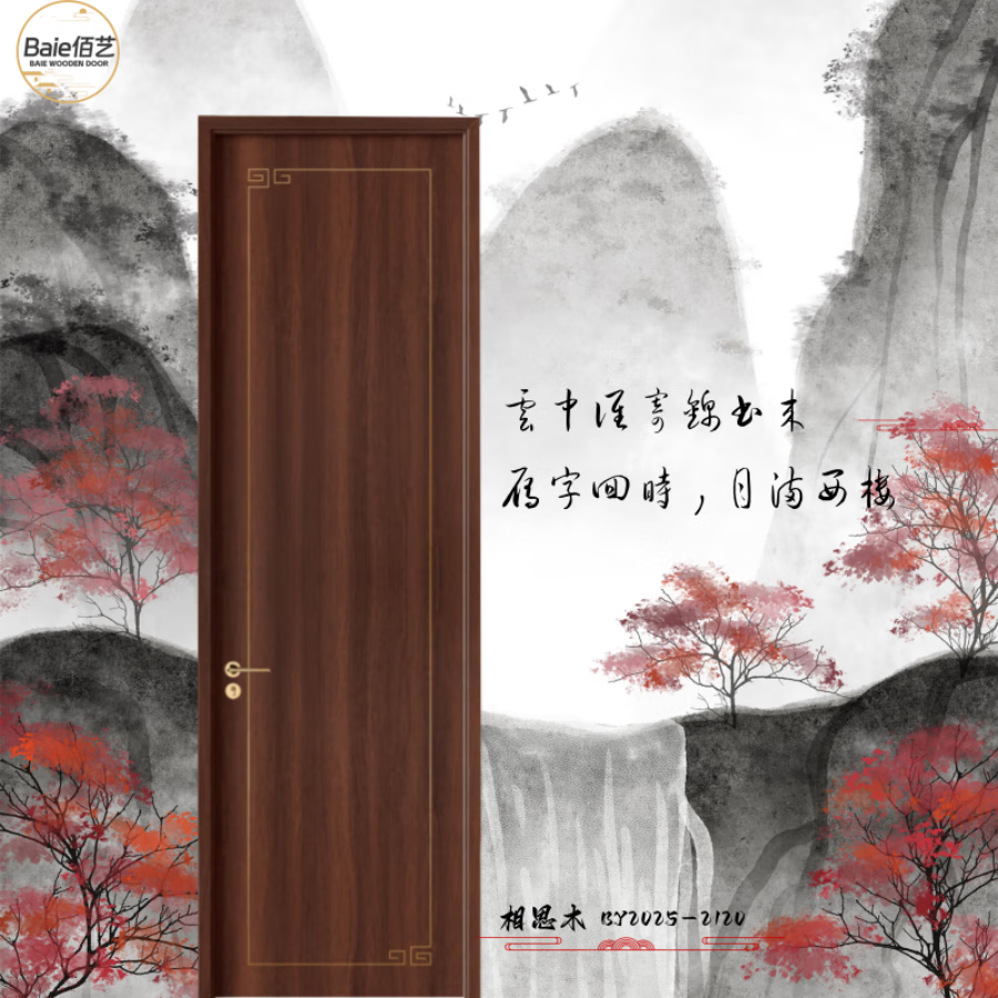 Baiyi Wooden Doors Solid Wood Composite Paintless Doors Bedroom Doors Interior Doors Yellow Walnut Line Drawing