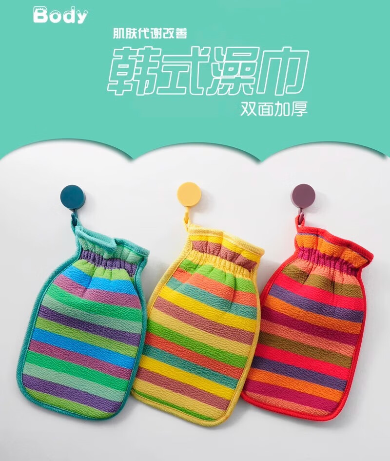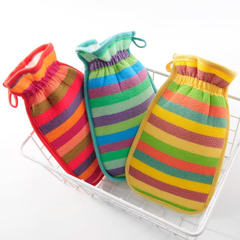Double-sided coarse sand bath towel, household bath towel, powerful adult mud rub without hurting the skin, rainbow strip bath towel, blue