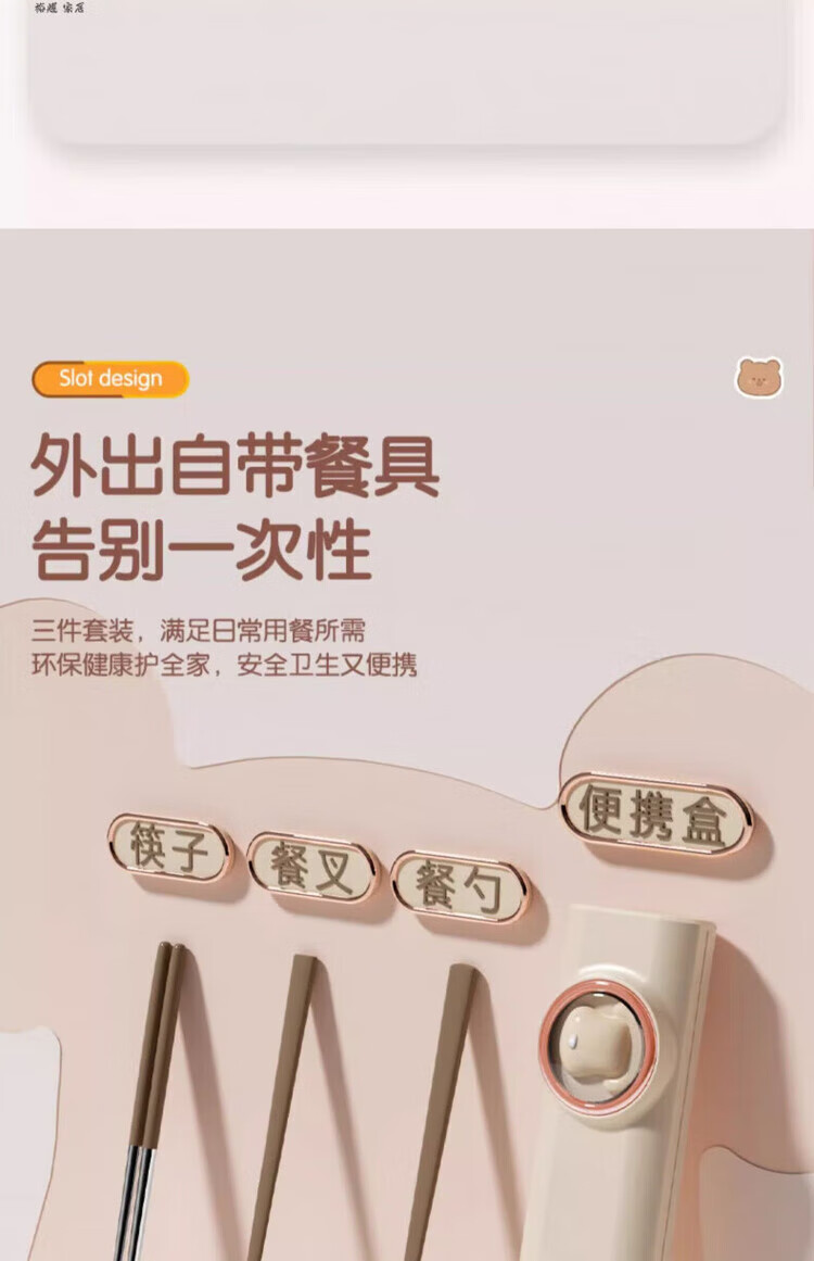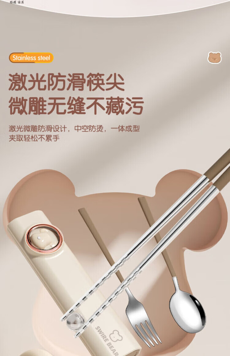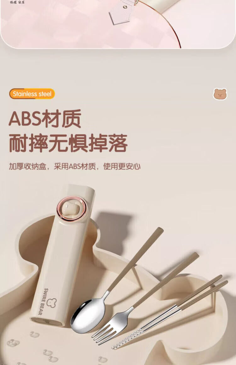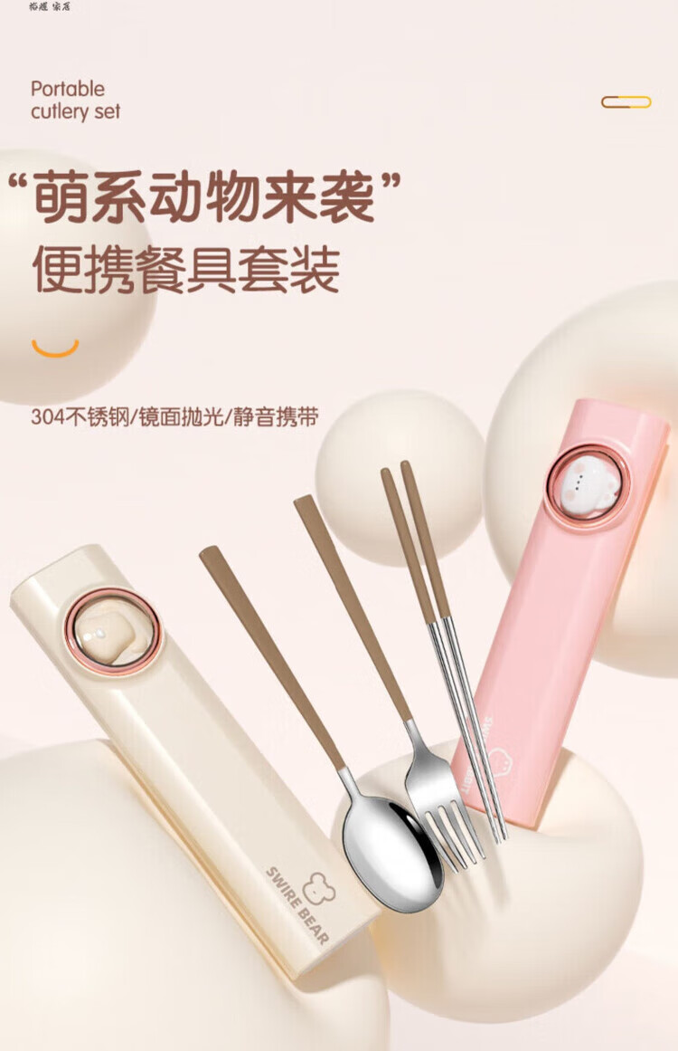 Wild Pigeon brand chopsticks and spoon set, portable tableware for primary school students, one person, one chopstick, children's special 316 stainless steel 304 Pink Rabbit (chopsticks and spoon box)