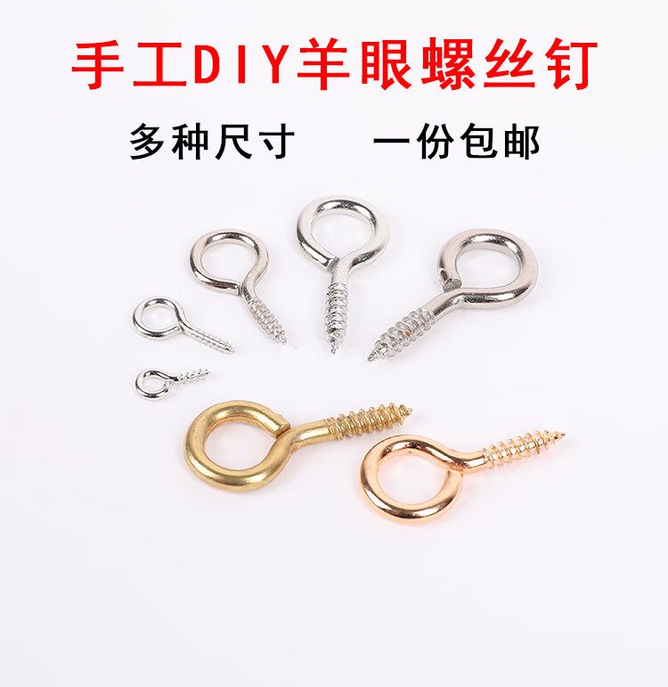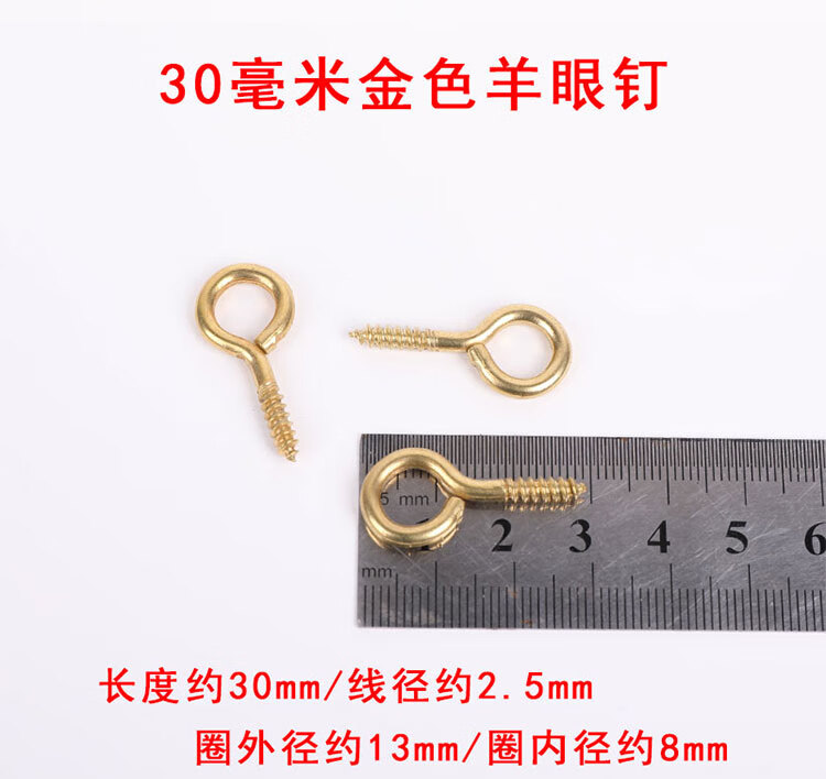 Moli sheep eye nails self-tapping screws with ring rings hook pendant diy key toy bodhi metal accessories 8 mm sheep eye nails gold 100 pcs
