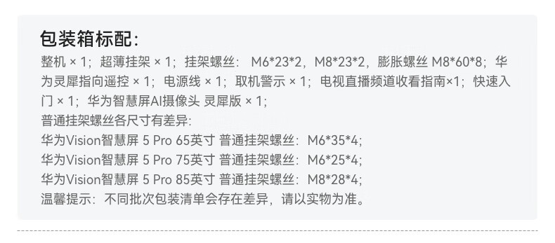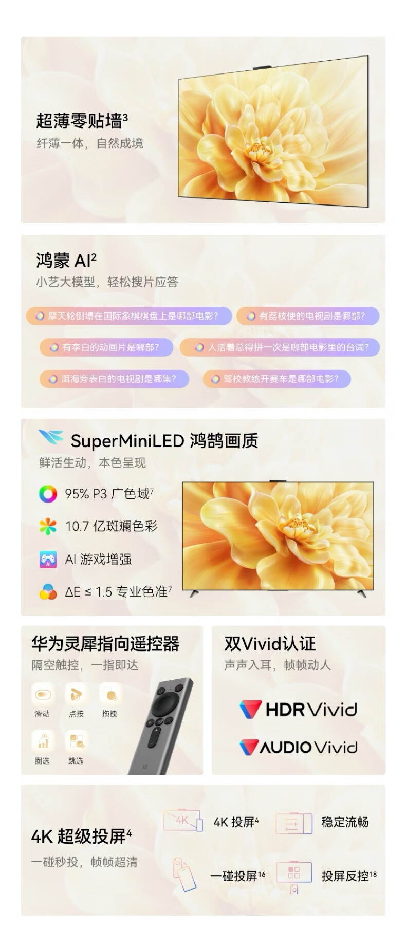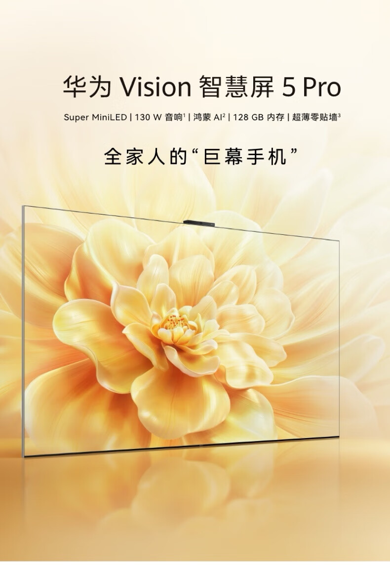 Huawei Vision Smart Screen 5 Pro 65-inch ultra-thin full-screen 288Hz SuperMiniLED Honghu picture quality remote control 4K super projection LCD flat-panel TV 65-inch including mobile hanger + free door-to-door installation