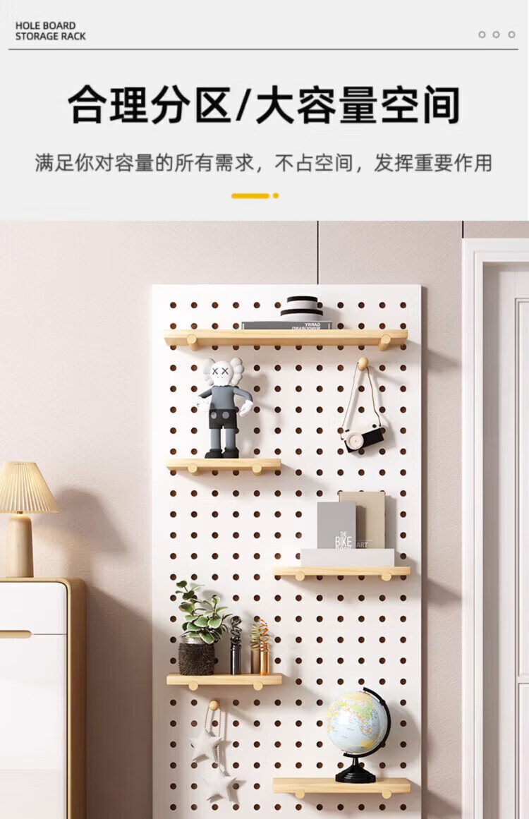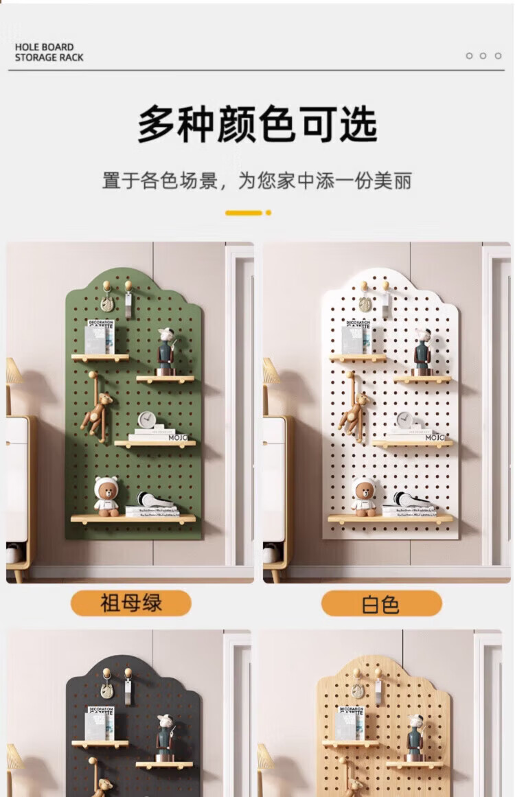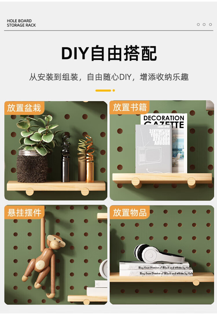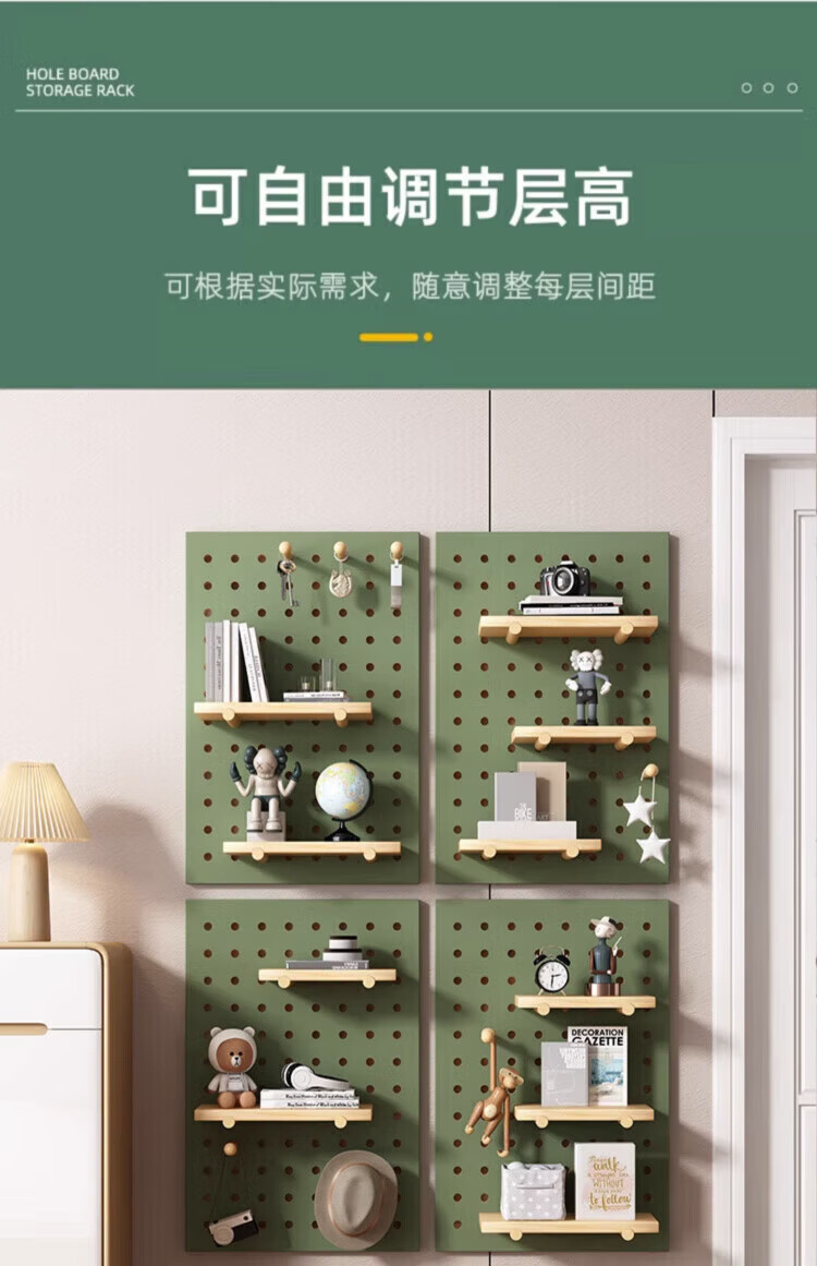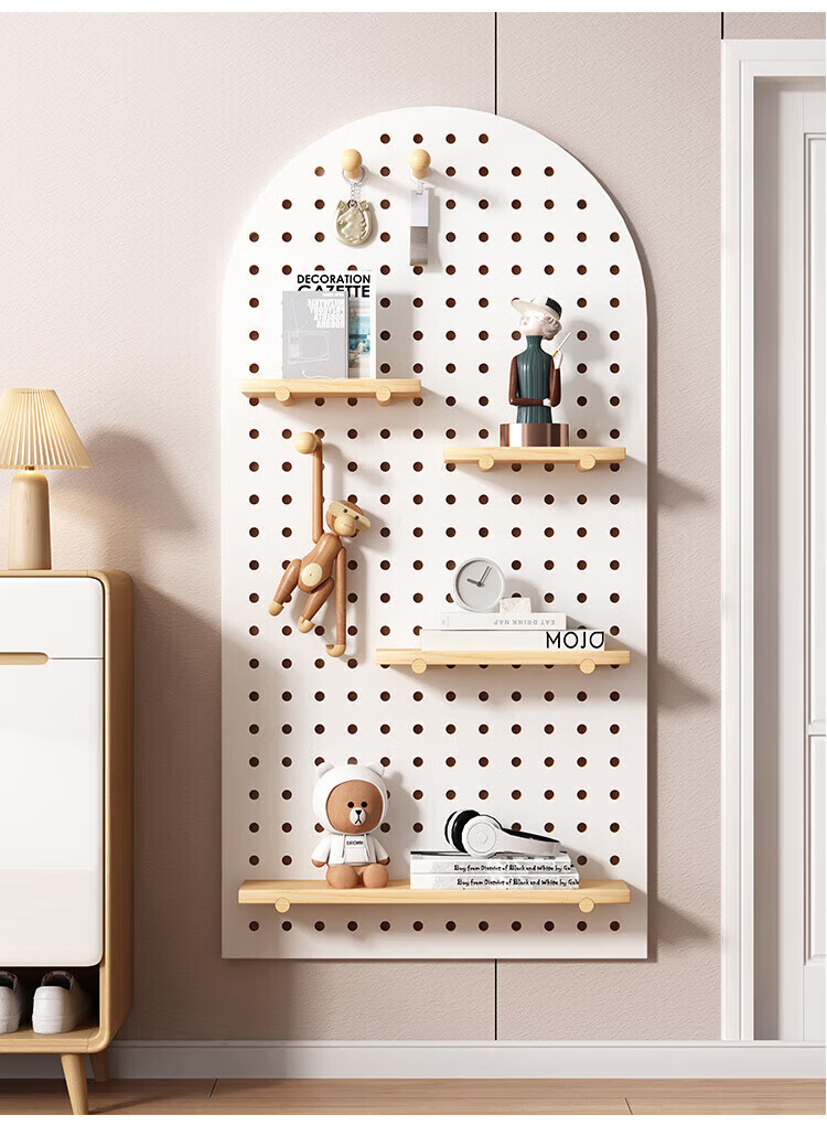 MPPMCK hole board custom entrance wall storage rack wall solid wood hanging board entry partition storage rack wall display rack square complete set of combination wood color 40X60CM