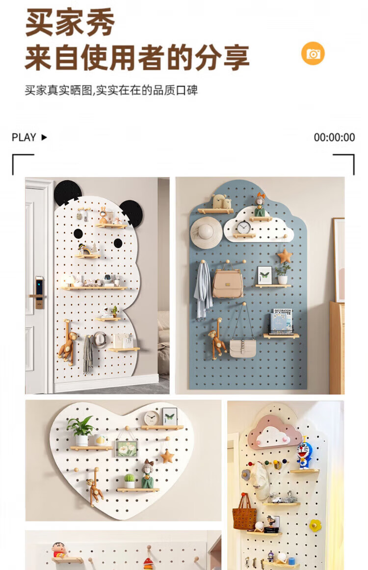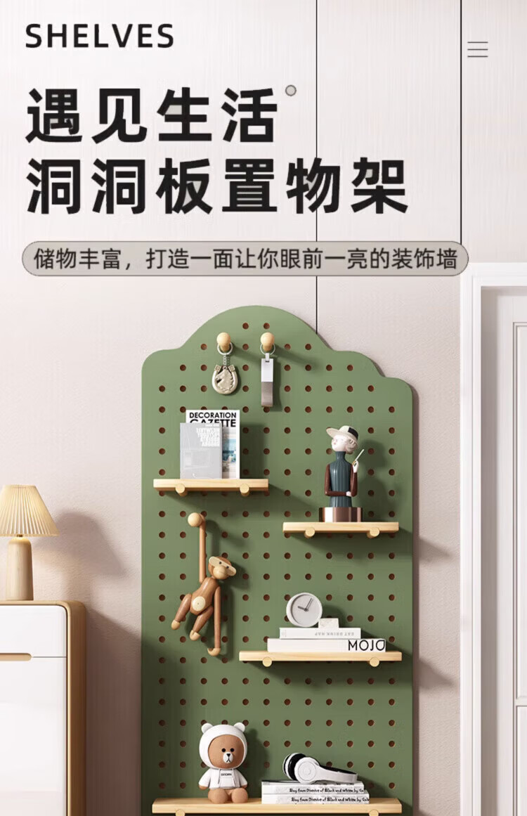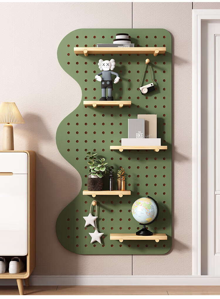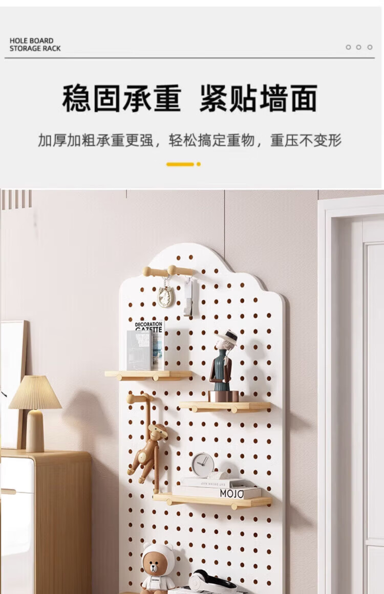MPPMCK hole board custom entrance wall storage rack wall solid wood hanging board entry partition storage rack wall display rack square complete set of combination wood color 40X60CM
