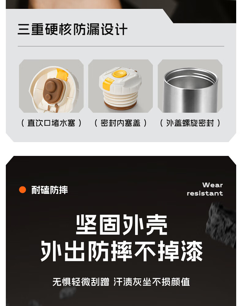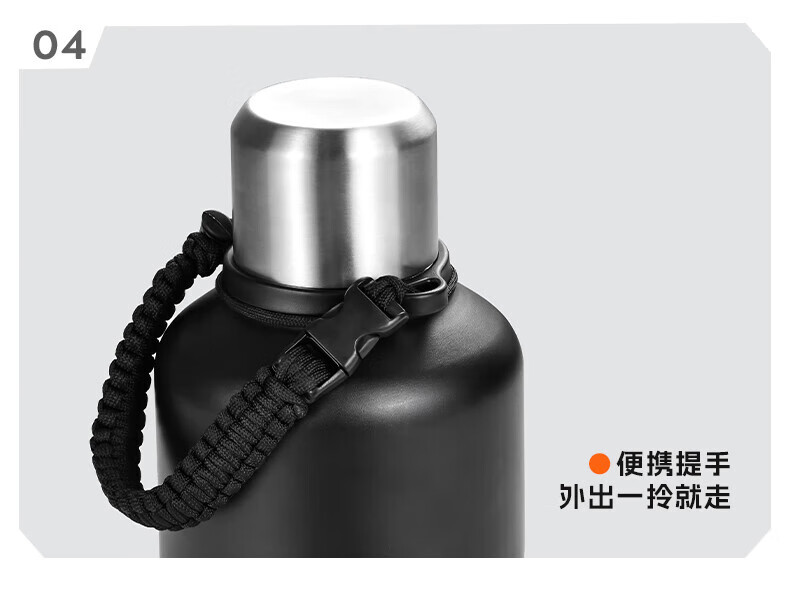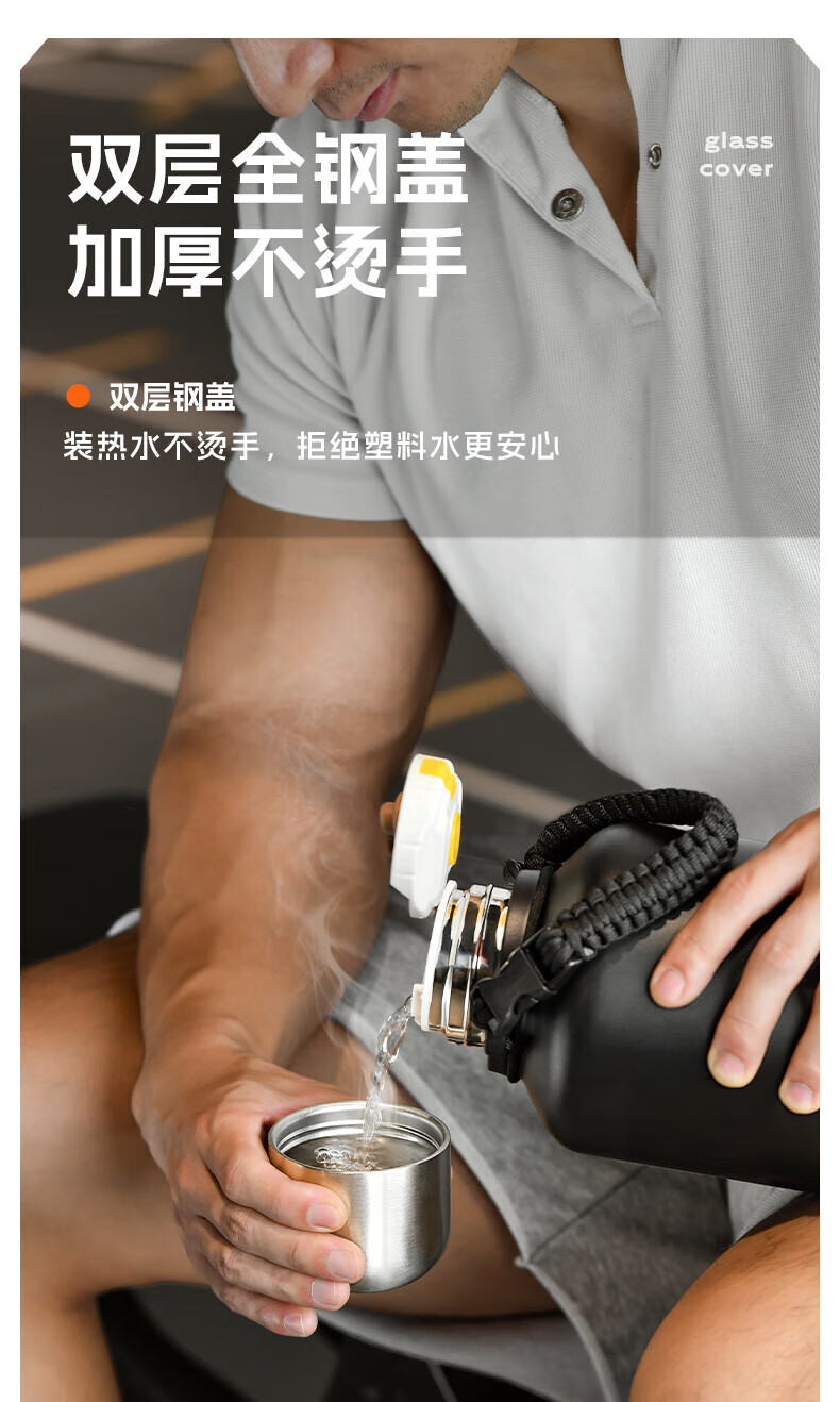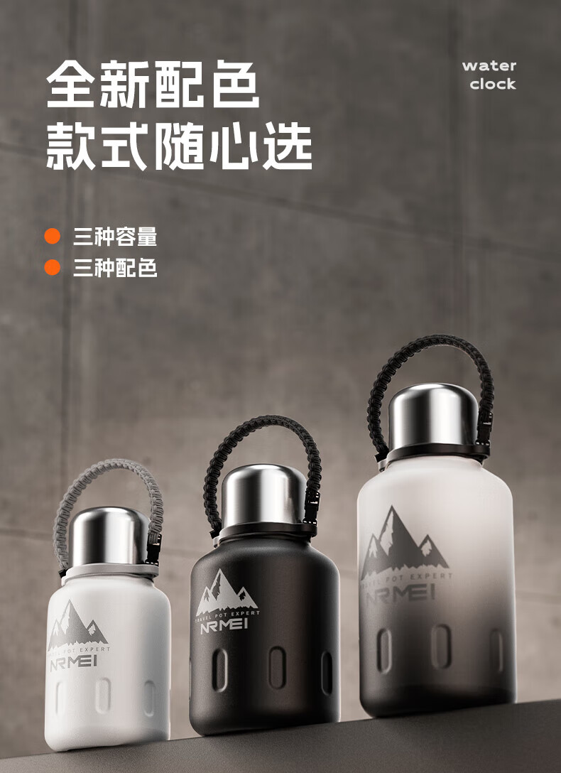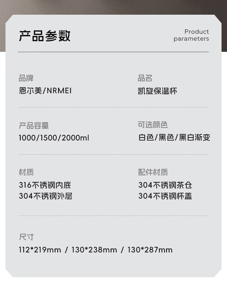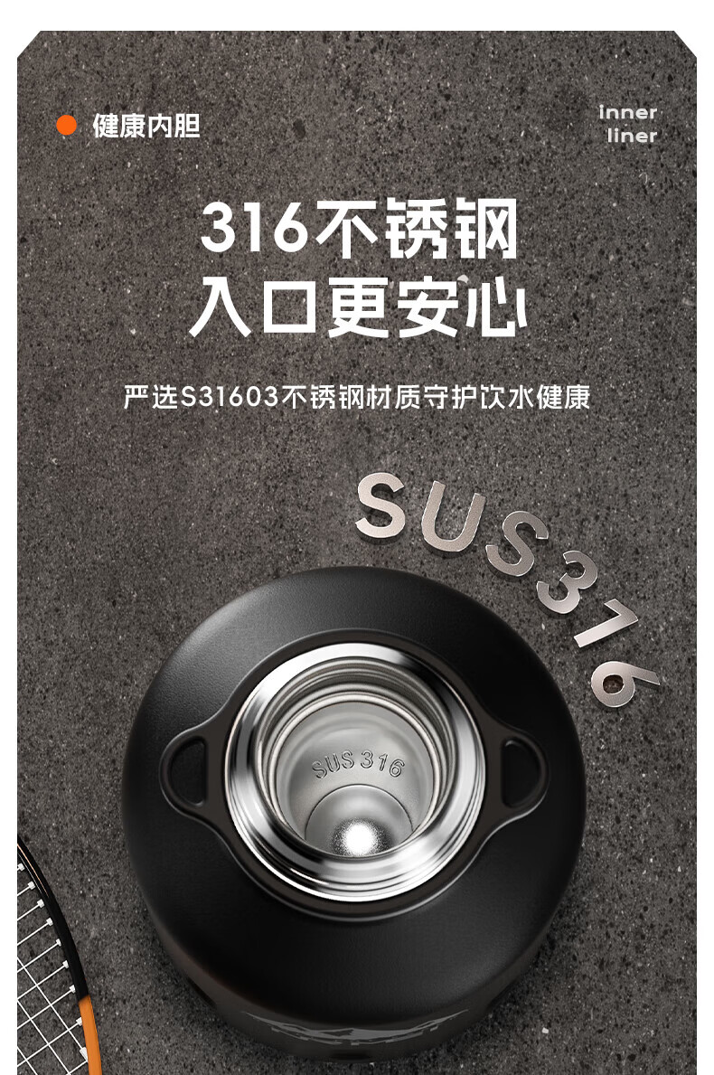 NRMEi thermos cup large capacity men's 316 stainless steel ton barrel student sports fitness portable cold storage black 2000ml antibacterial 316+ direct drinking lid