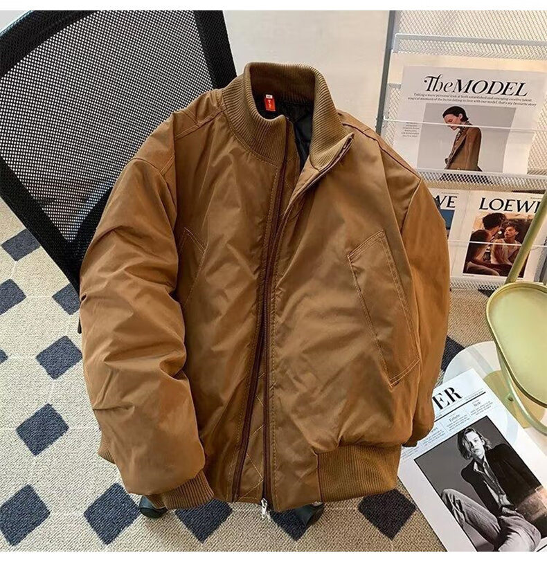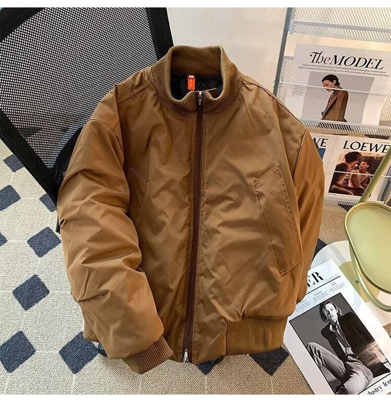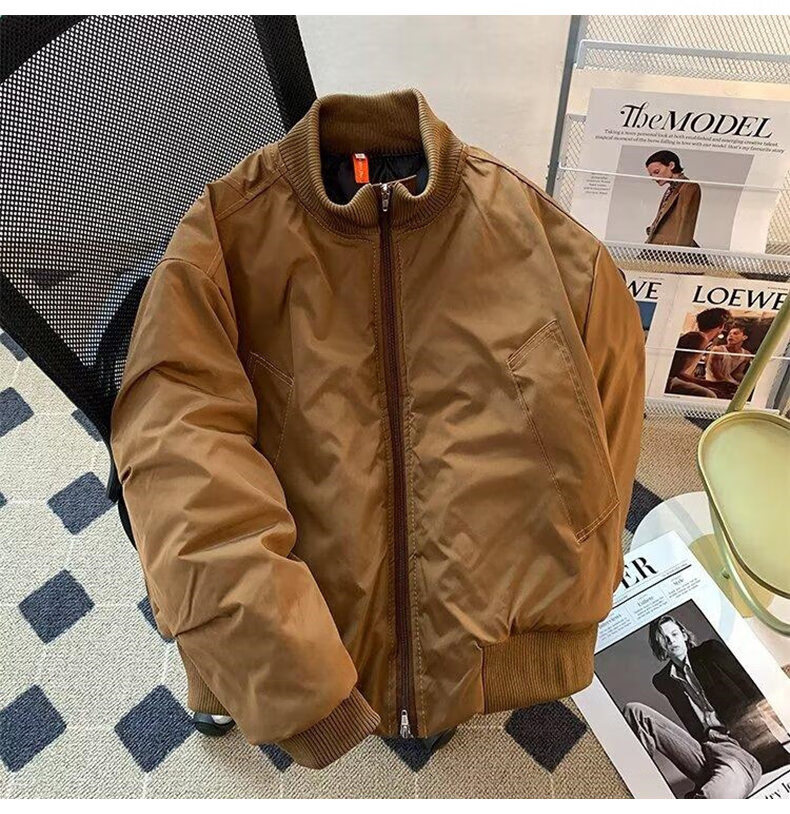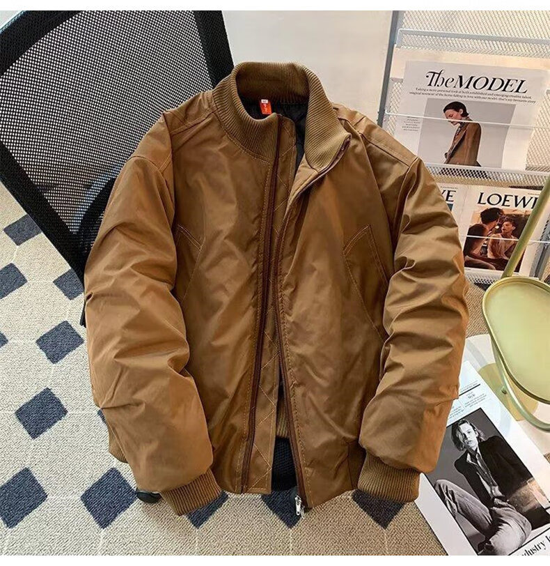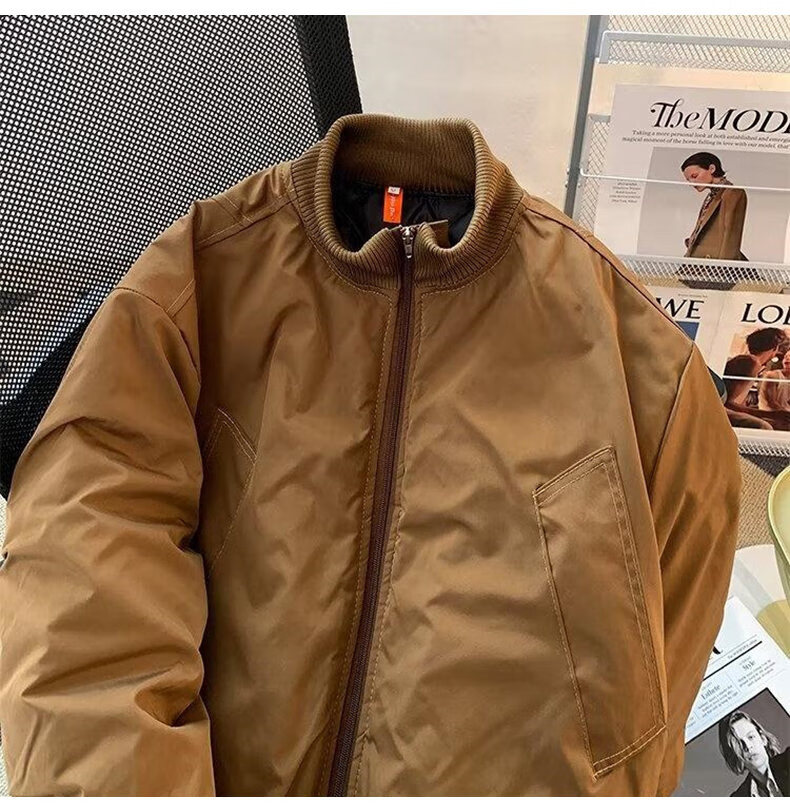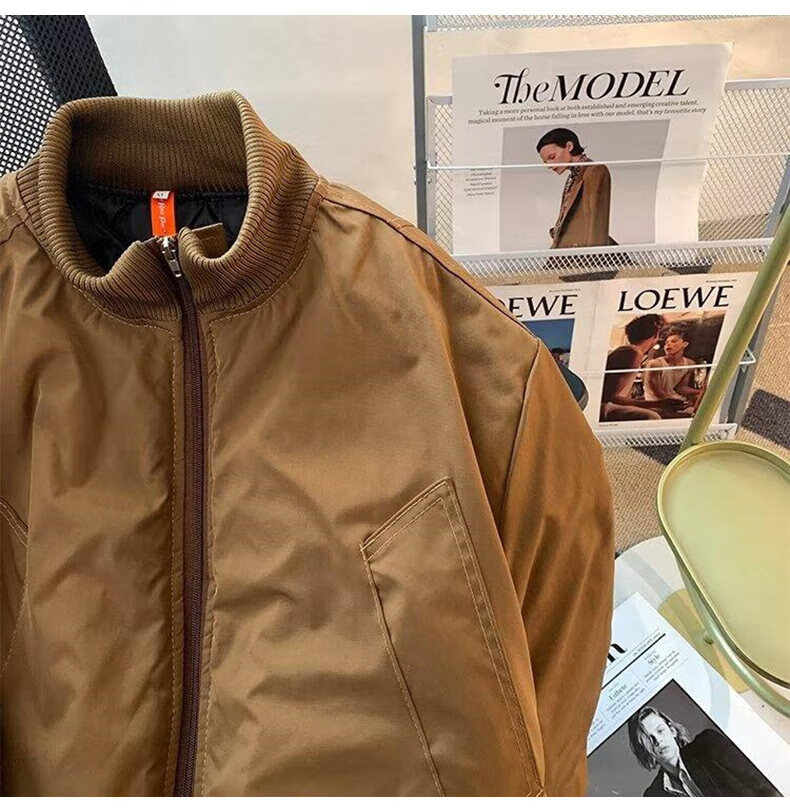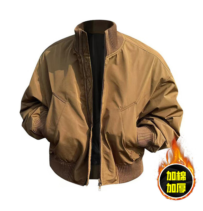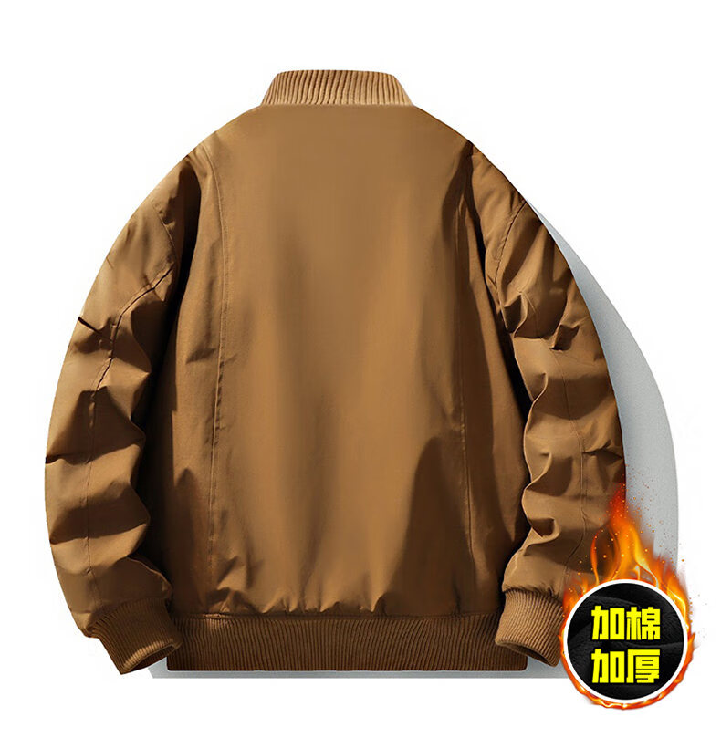 Jacket men's three-proof flight autumn and winter plus velvet and thickened complete set of stand-up collar baseball uniform jacket short workwear jacket trendy khaki (upgraded version with cotton) thickened XL