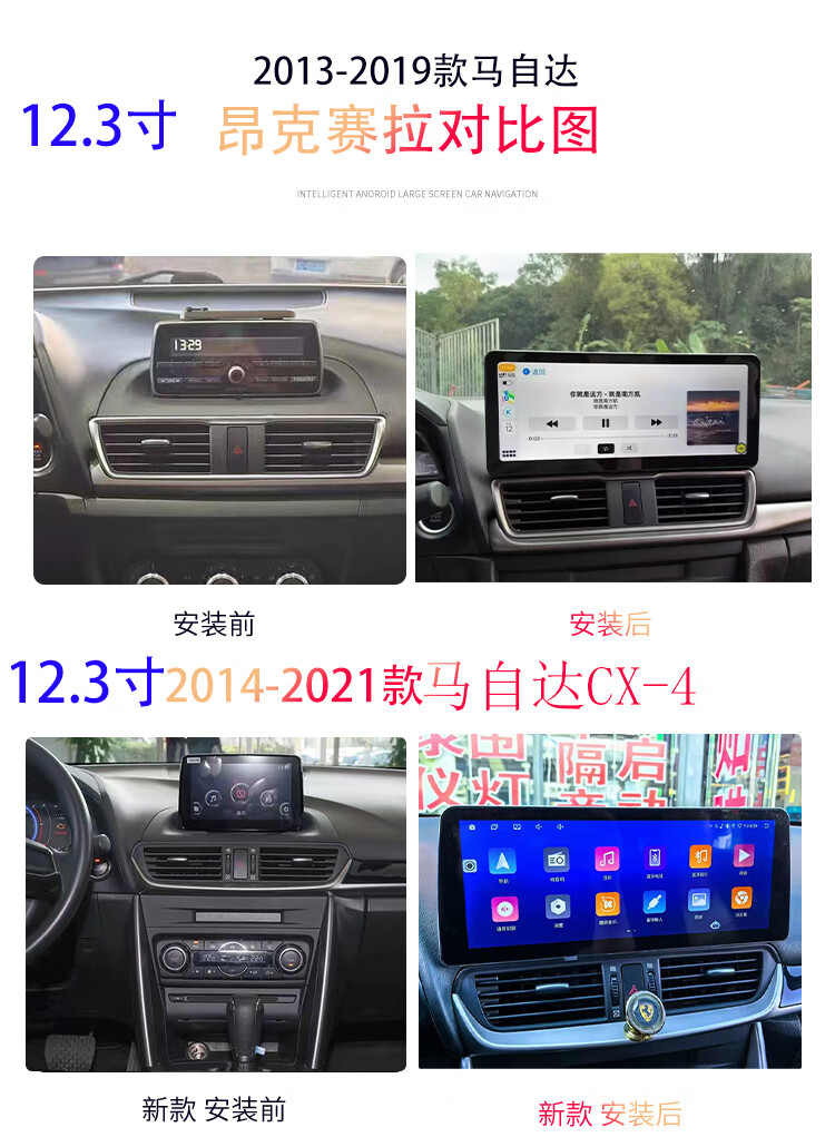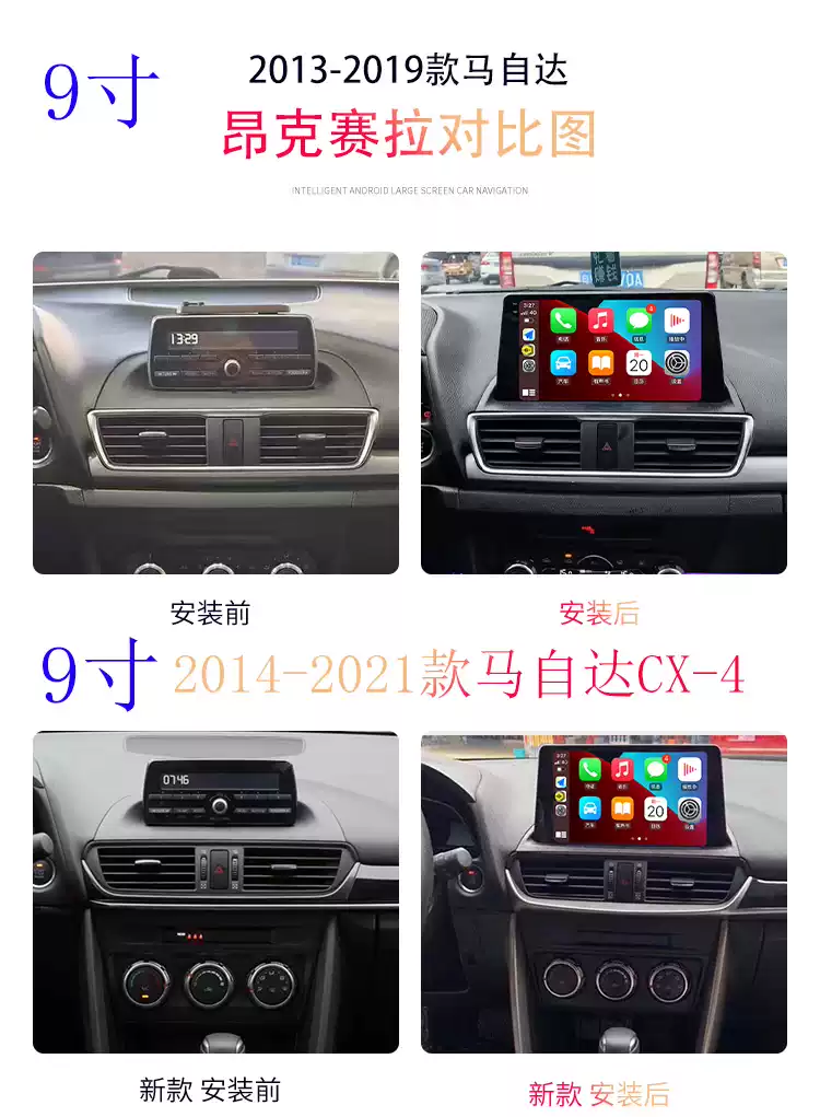 Mazda3 Angkesela Mazdacx4 central control large screen display high-definition navigation reversing image All 9-inch large screen 8-core full network communication 4G4+64G+Carplay+hicarIPS high-definition screen+B button official standard + recorder MazdaMazda3/201
