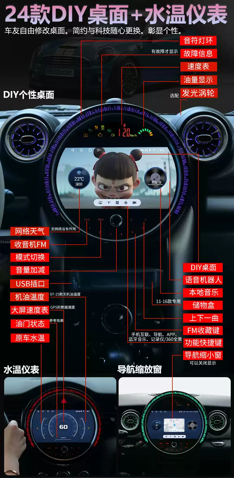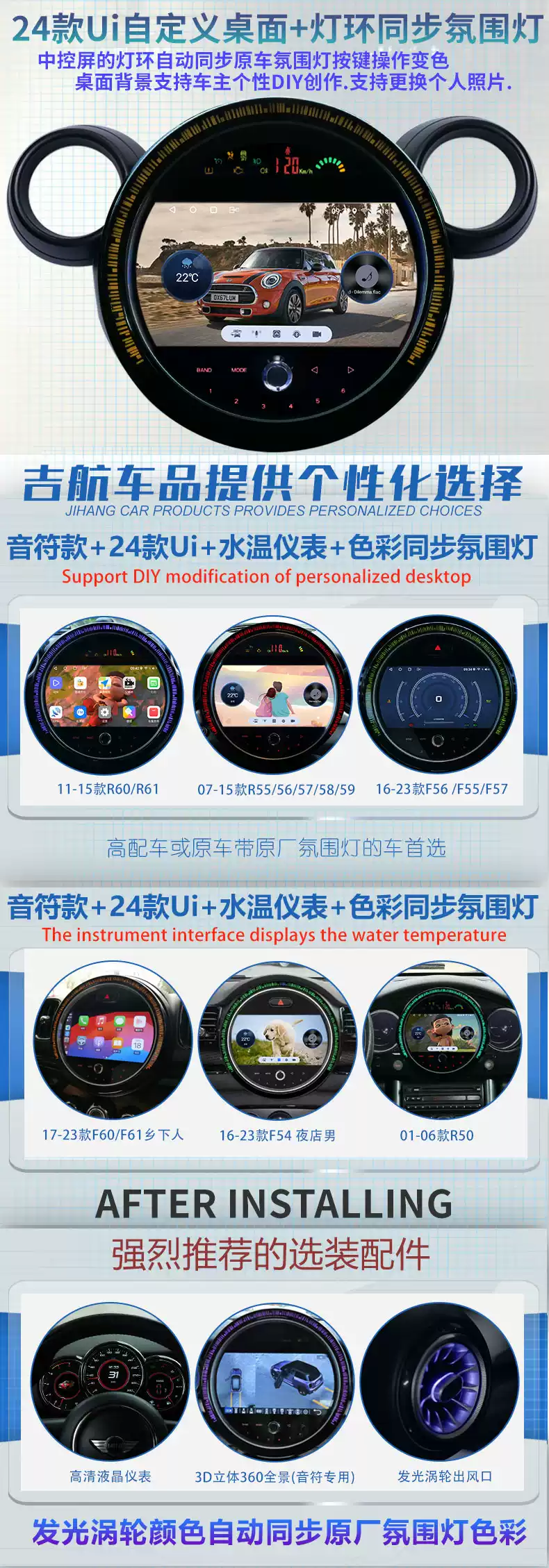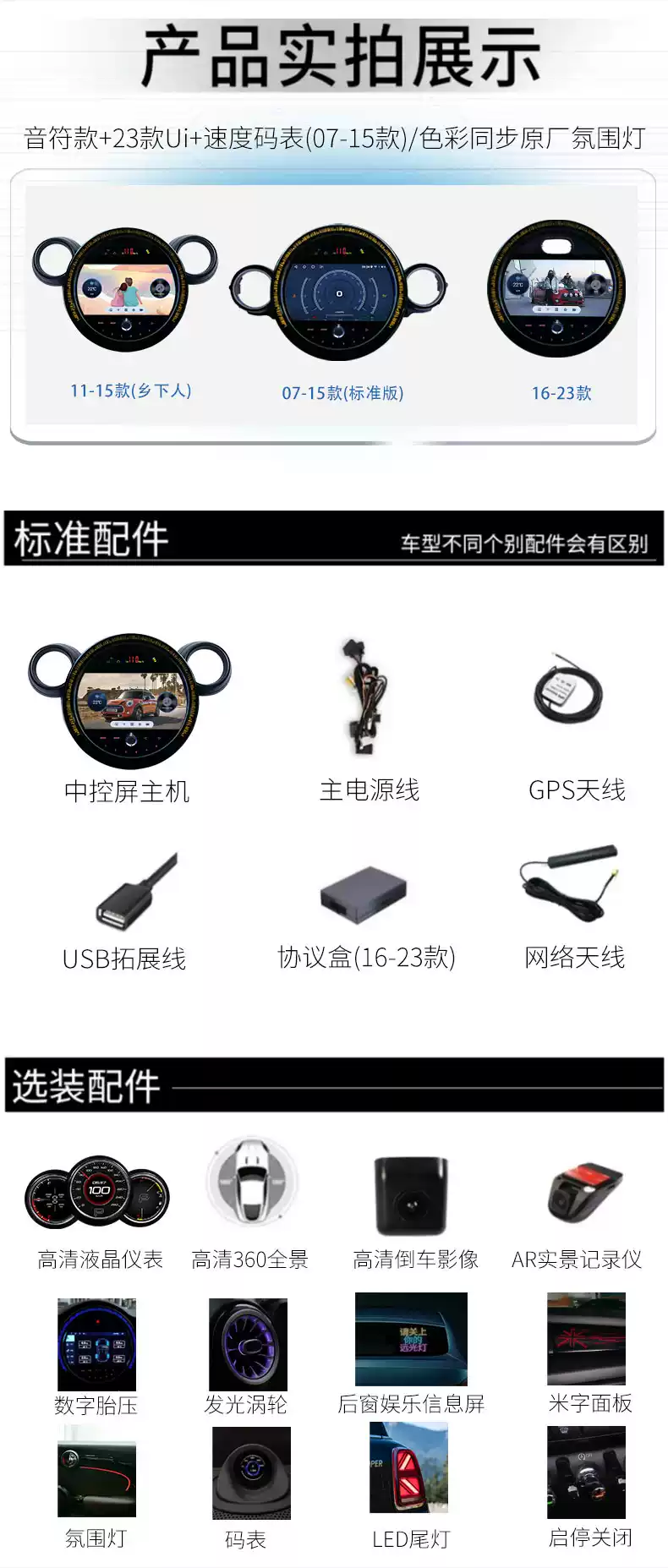 Suitable for BMW mini central control large screen navigation hicar HD 360 panoramic wireless carplay installed screen optional touch/voice control HD 360 panoramic + driving video + 32G storage official standard