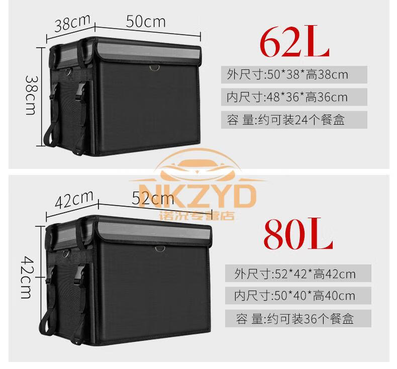 Beijing takeaway rider meal box magnetic strip insulated food delivery box black thermal insulation waterproof anti-theft durable large capacity magnetic 62 liter delivery bracket + pad + partition